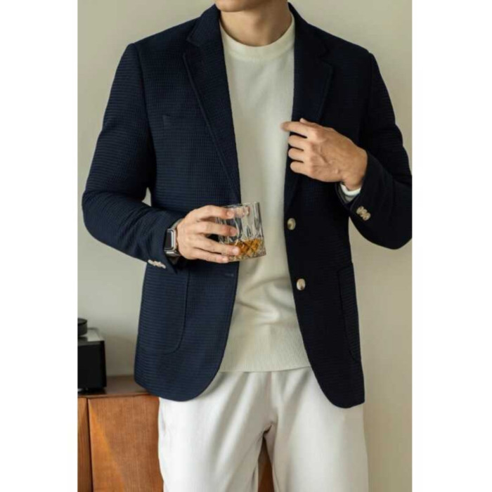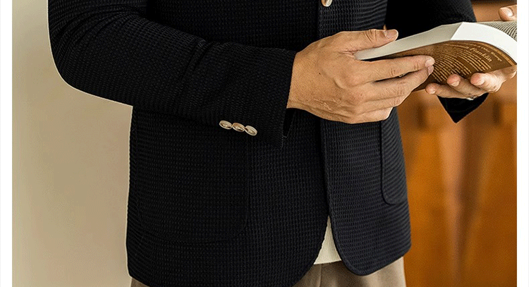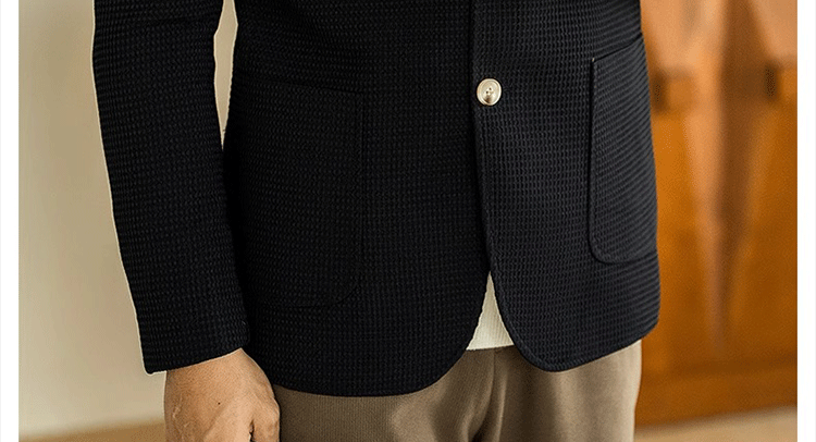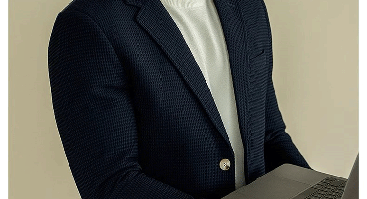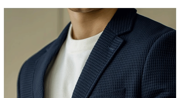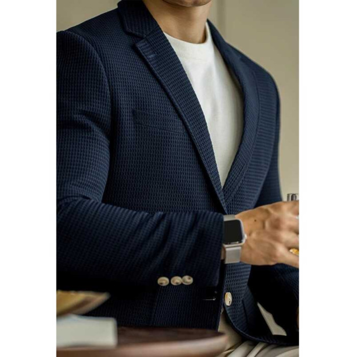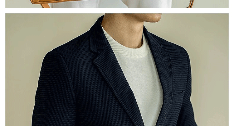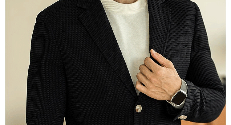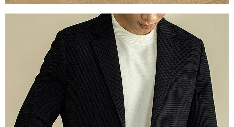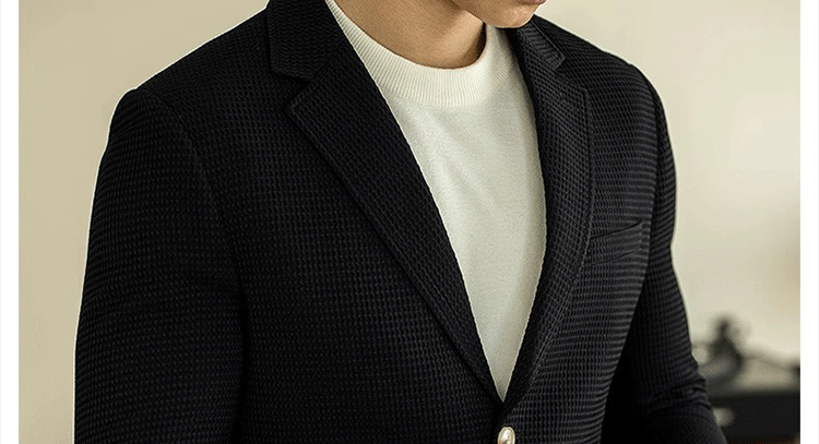 肌理感華夫格長袖西裝外套男士秋季新款休閒雙排釦通勤商務正裝潮