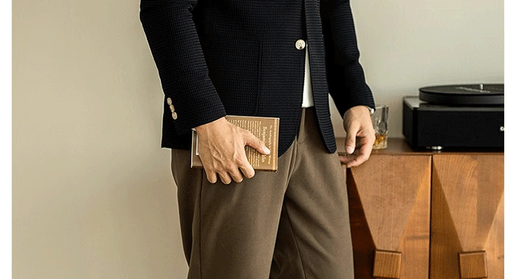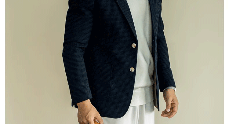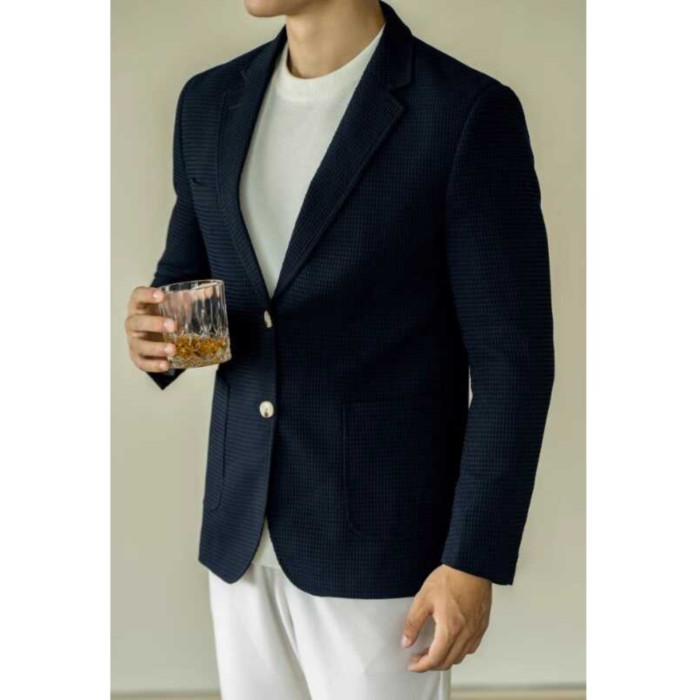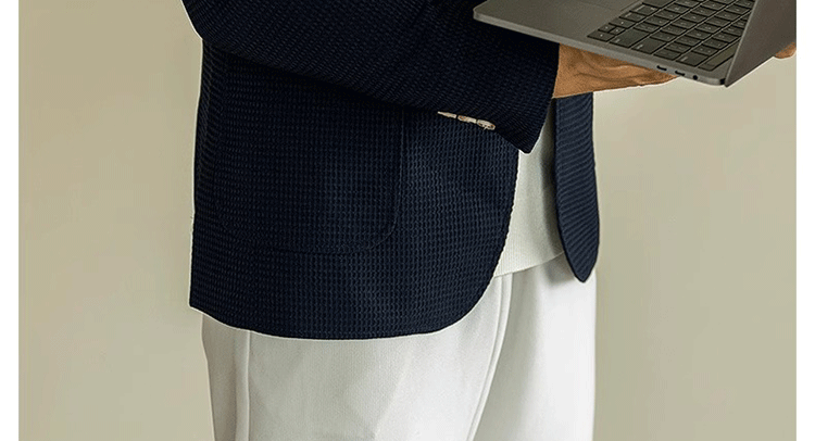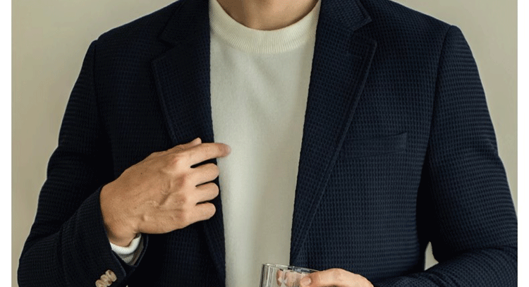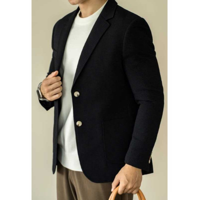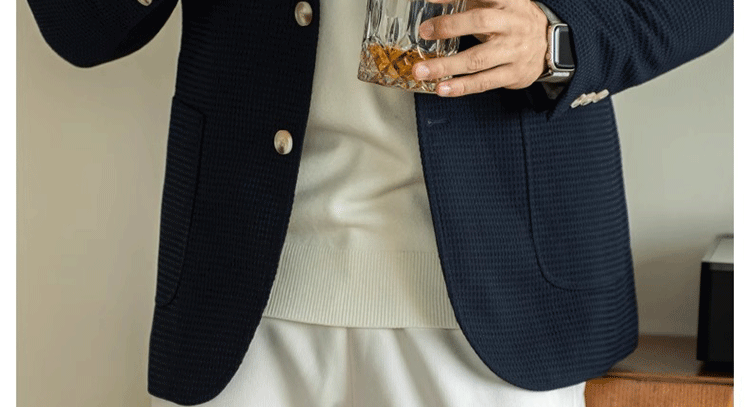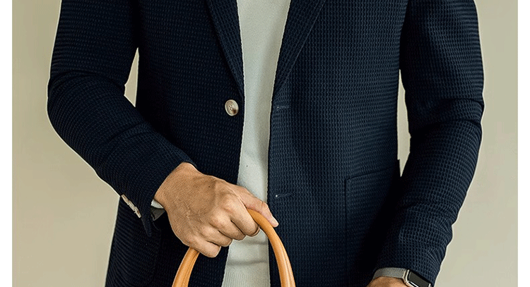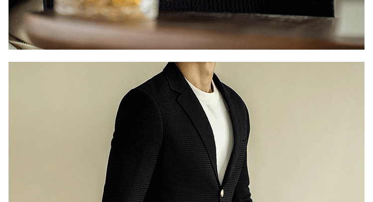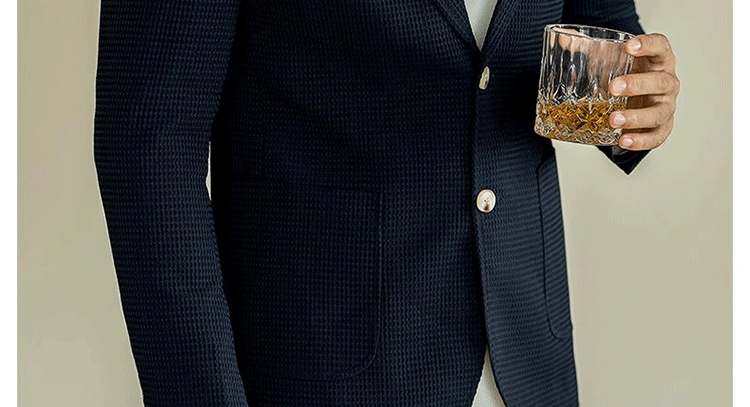 肌理感華夫格長袖西裝外套男士秋季新款休閒雙排釦通勤商務正裝潮
