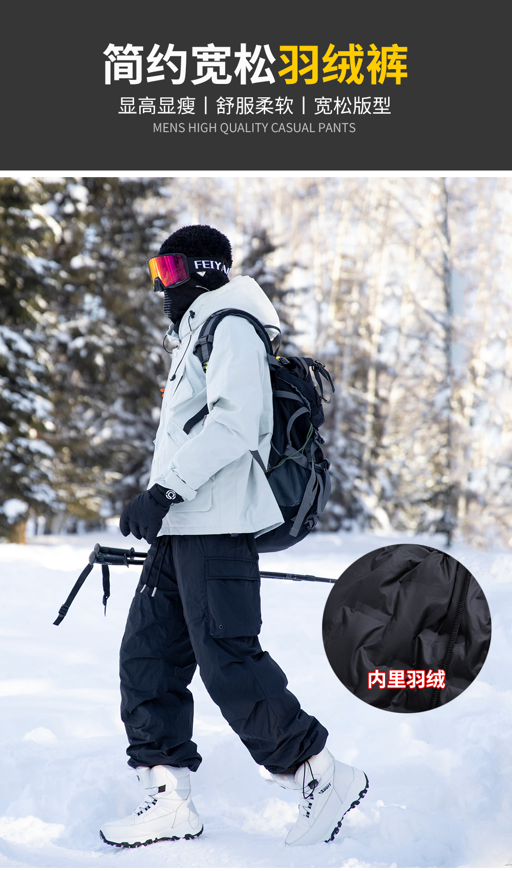 東北零下40度羽絨褲男冬季戶外雪地滑雪褲漠河防寒防水防風工裝褲