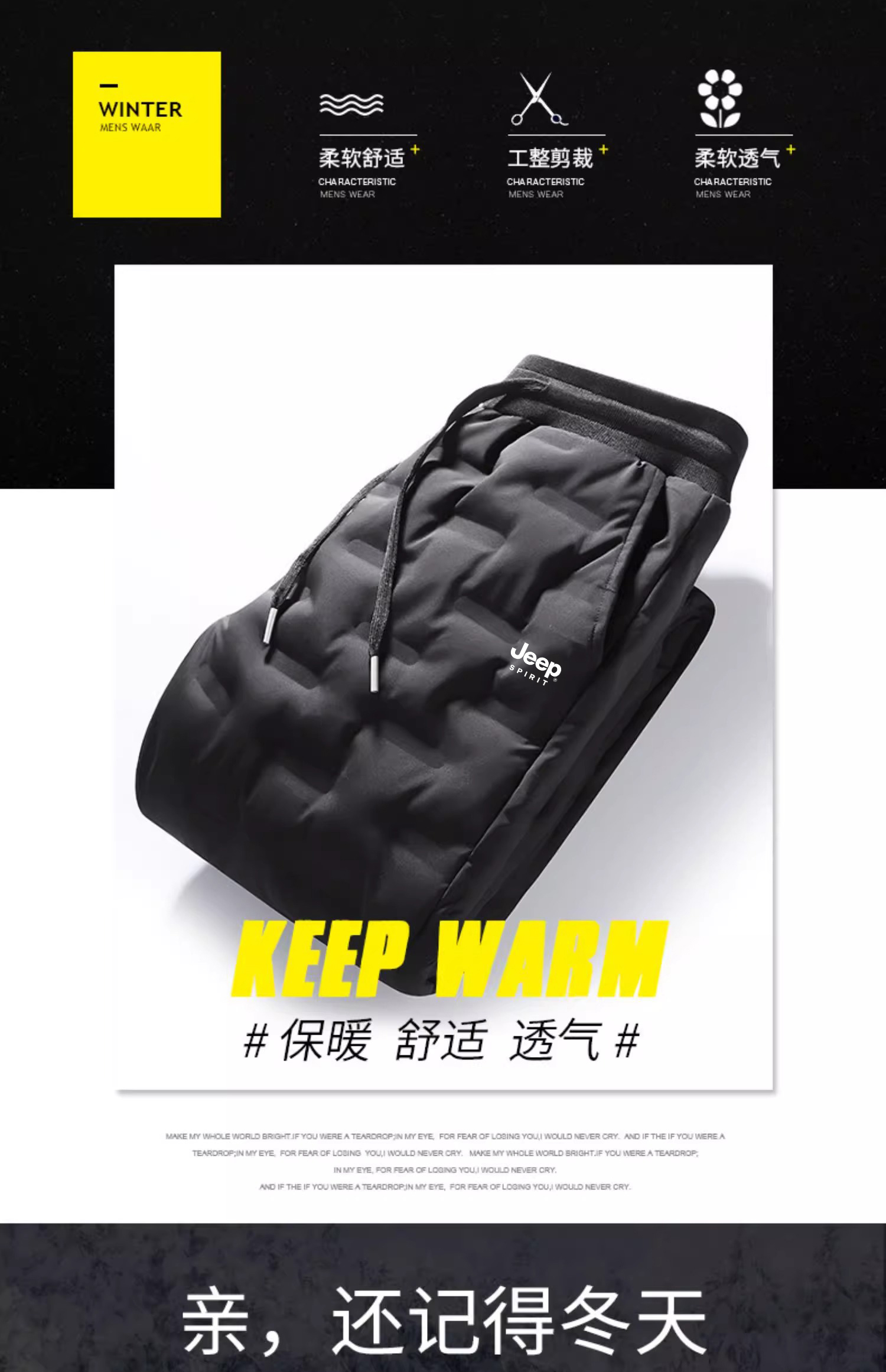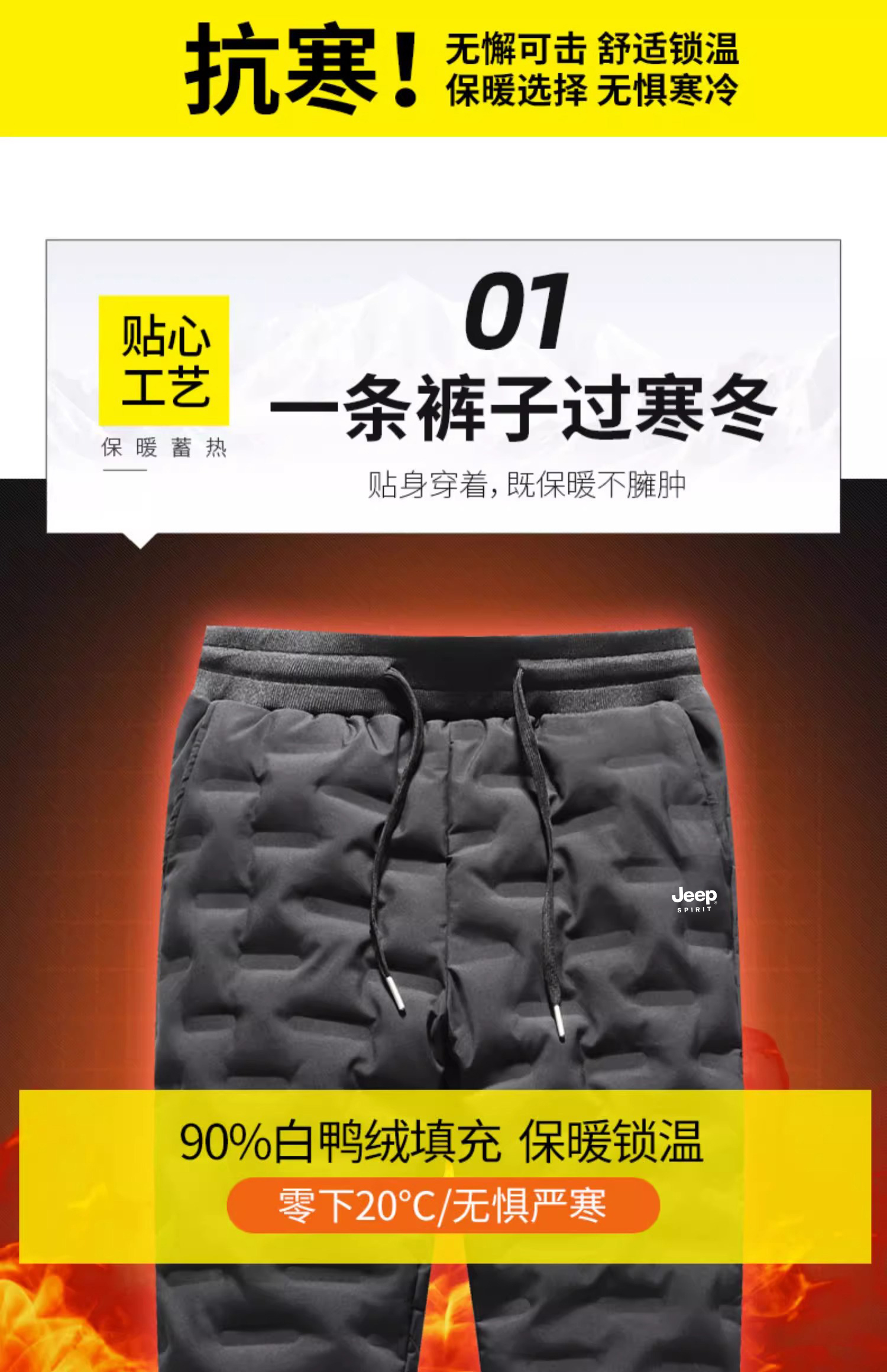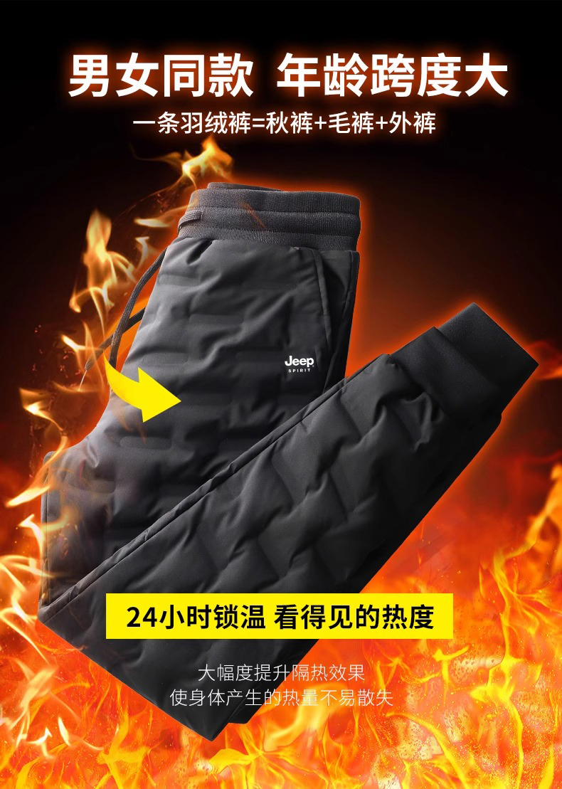 JEEP吉普羽絨褲男冬季2025新款戶外東北褲子加厚保暖外穿鴨絨棉褲