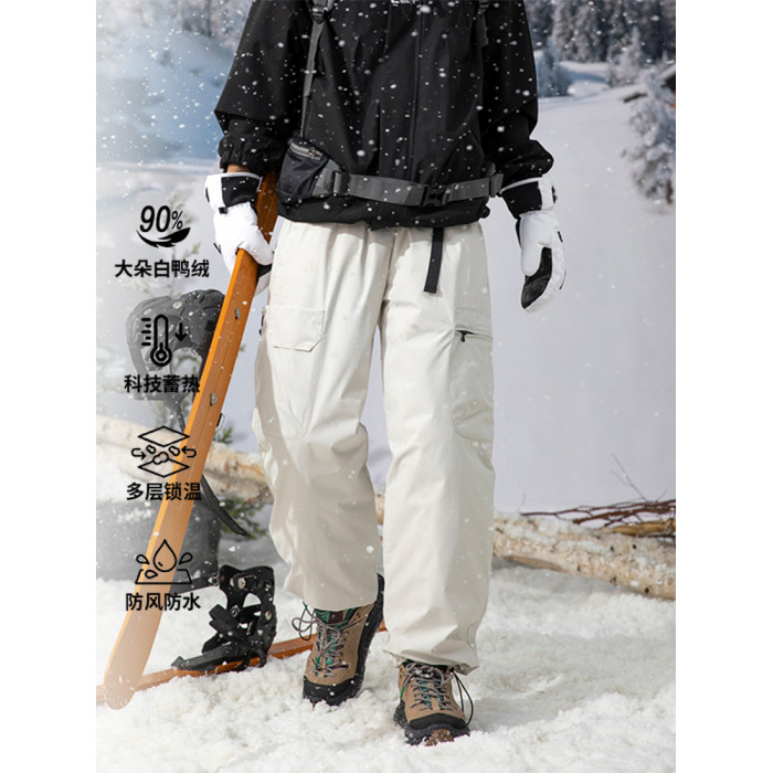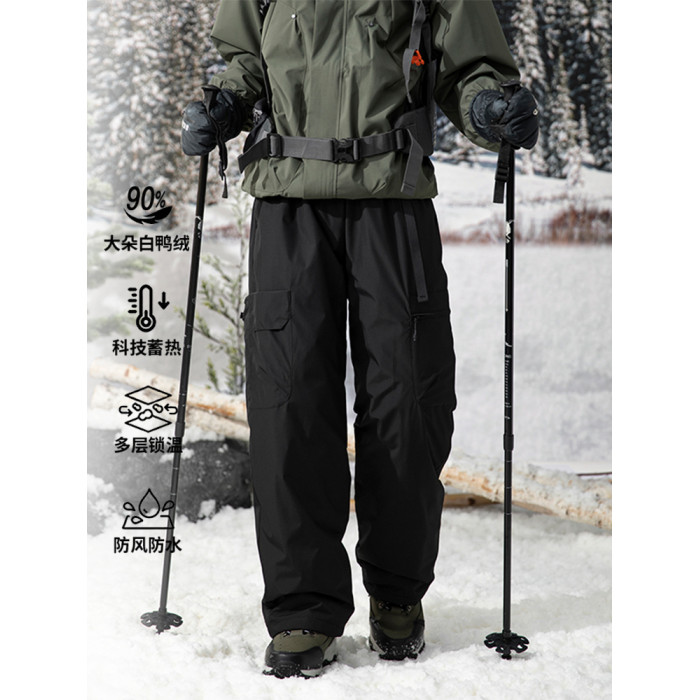 白鴨絨軟殼沖鋒羽絨褲男女冬季零下40度極寒東北過冬工裝滑雪褲子
