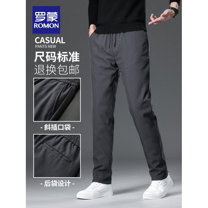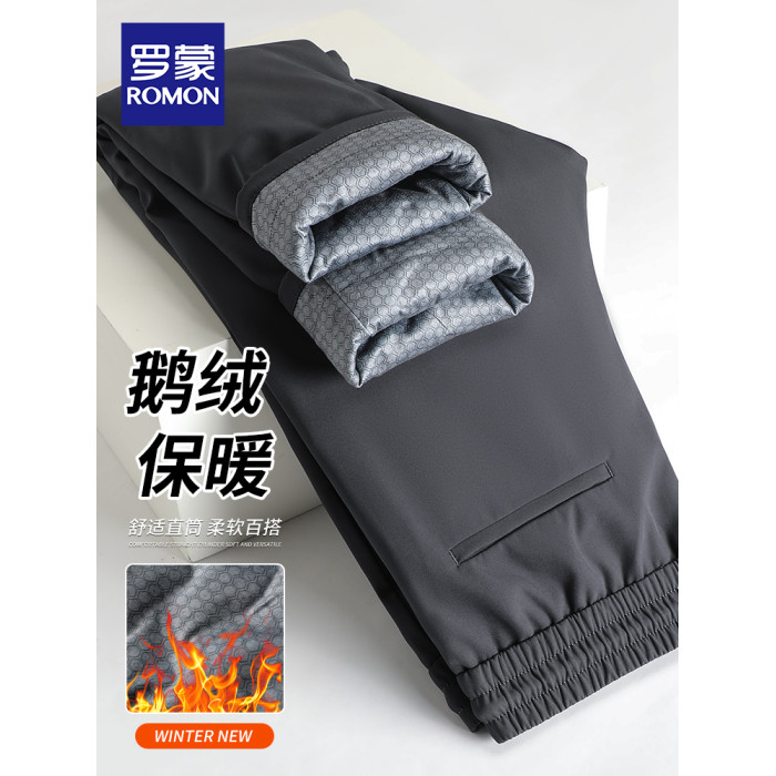 羅矇男士休閒褲2025新款鵞絨長褲秋冬季保暖中年爸爸裝直筒羽絨褲