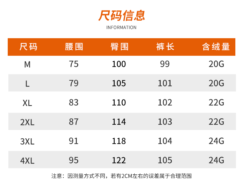 | 褲長 | 長褲 |