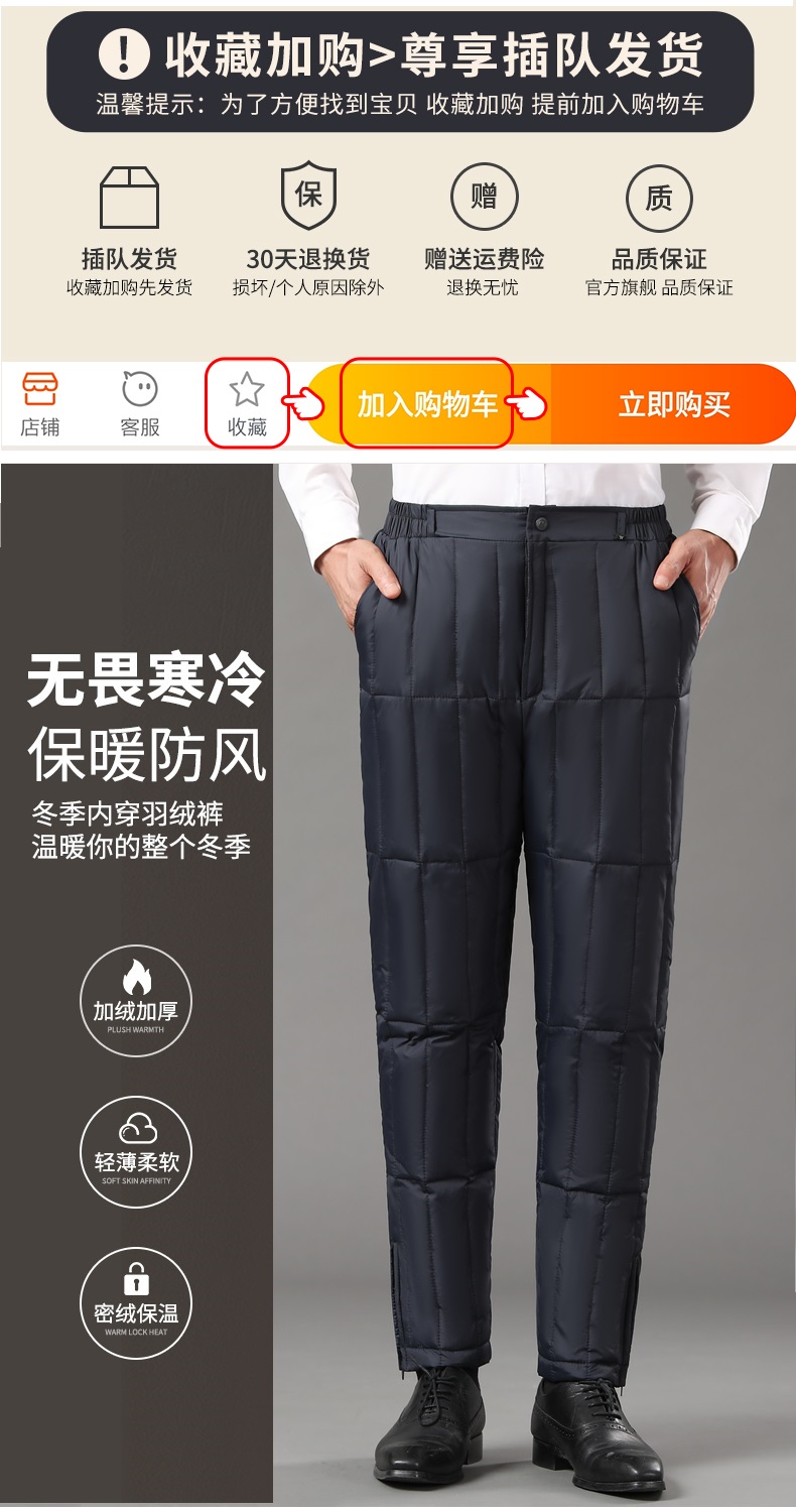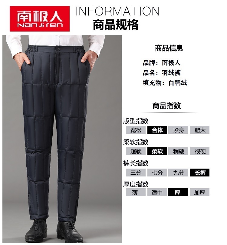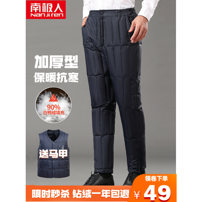 南極人羽絨褲男內外穿中老年高腰冬季加厚保暖內膽男老人羽絨棉褲