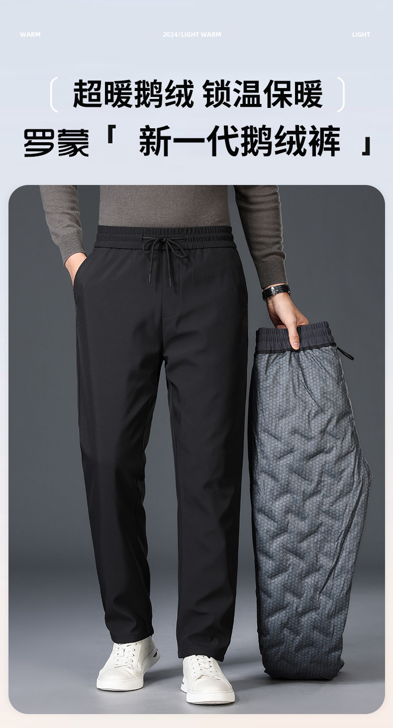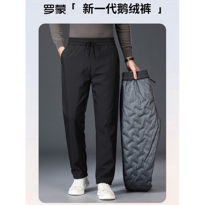 【鵞絨】羅矇男士保暖羽絨褲2025季新款加厚松緊腰外穿直筒褲男