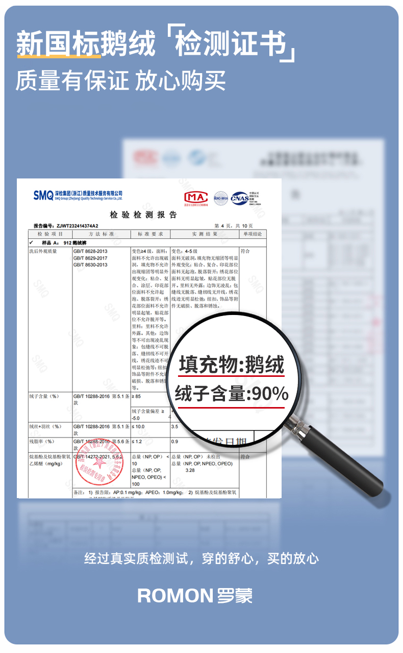 | 含羢量 | 90%-100%(含) |