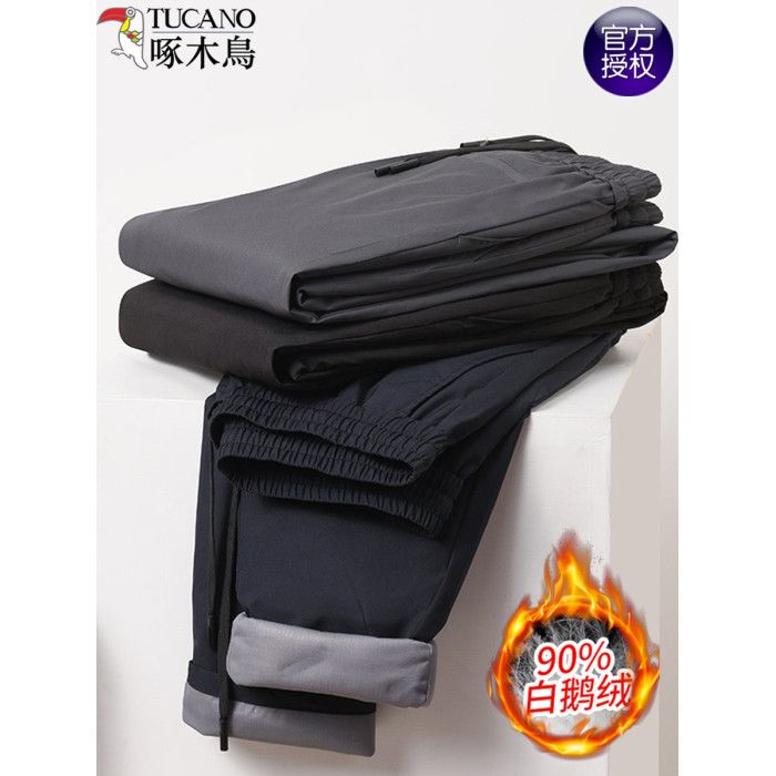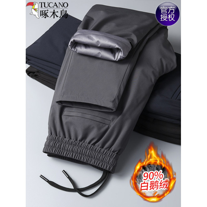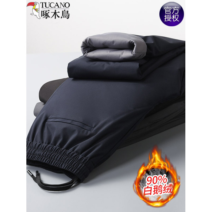 啄木鳥男士羽絨褲冬季防風防寒加絨保暖外穿寬松大碼直筒休閒褲子