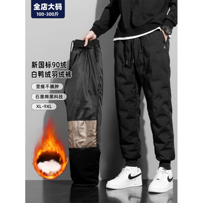 大碼羽絨褲男外穿冬季新款加絨加厚抗寒保暖寬松男士胖子加肥加大