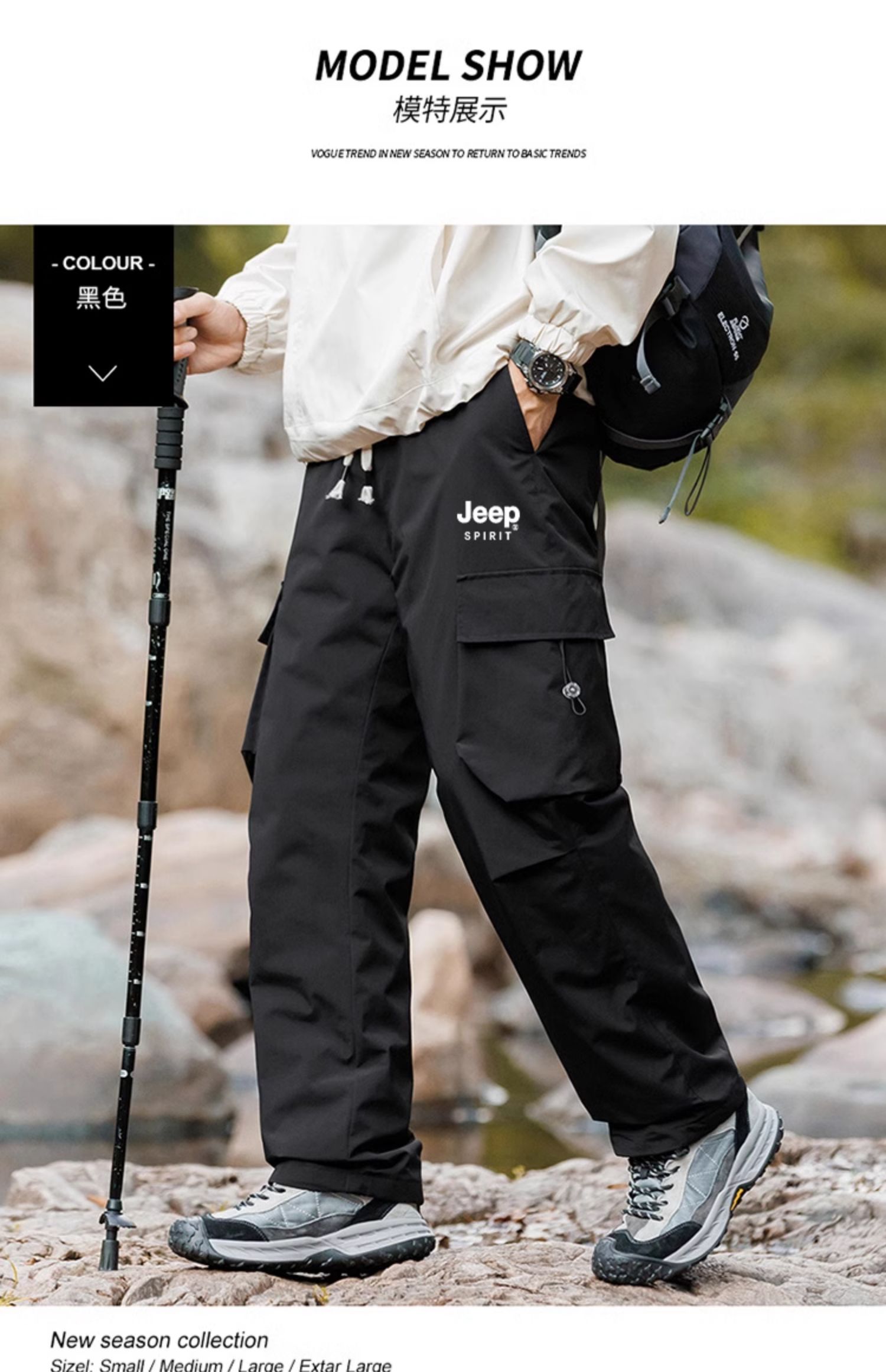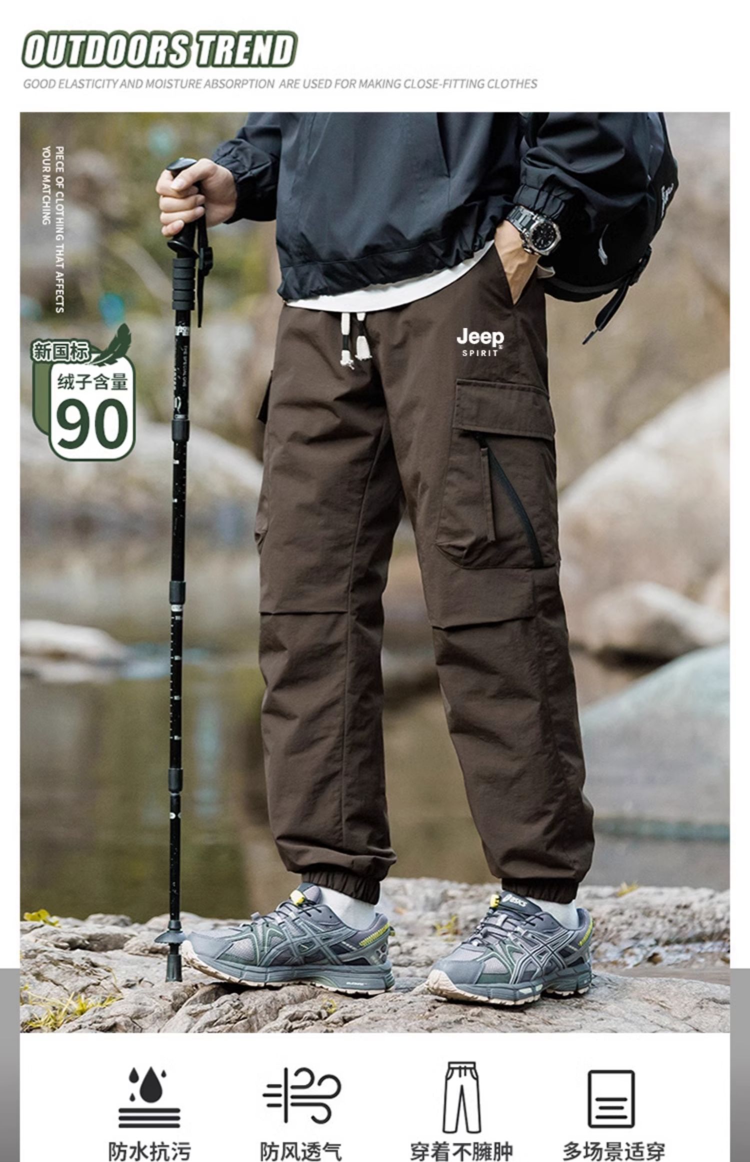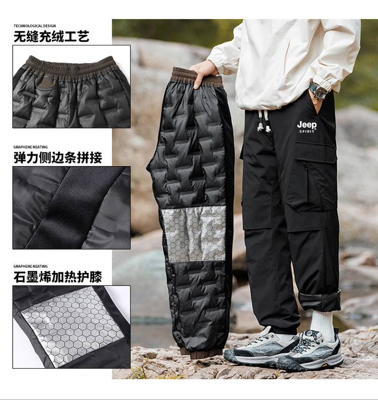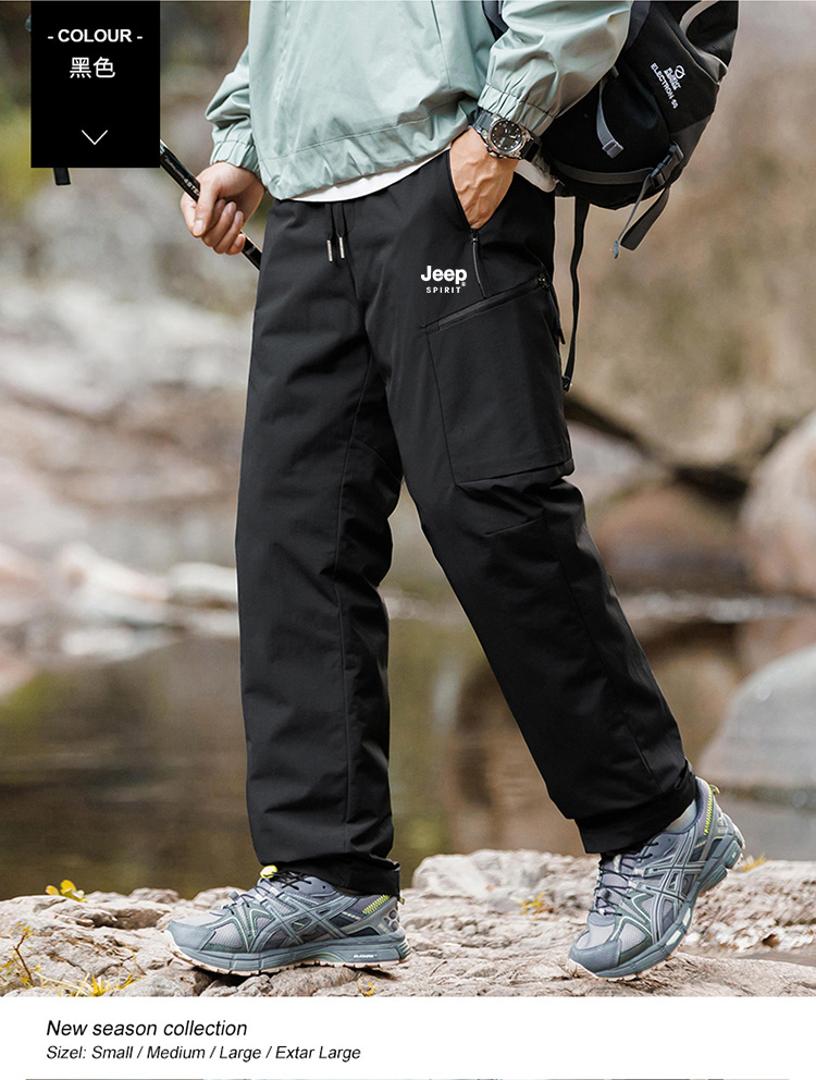 JEEP沖鋒羽絨褲男款登山長褲2025新款冬季戶外三防耐磨防寒工裝褲