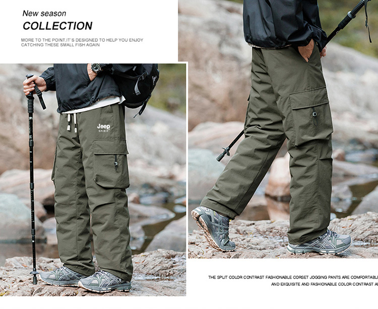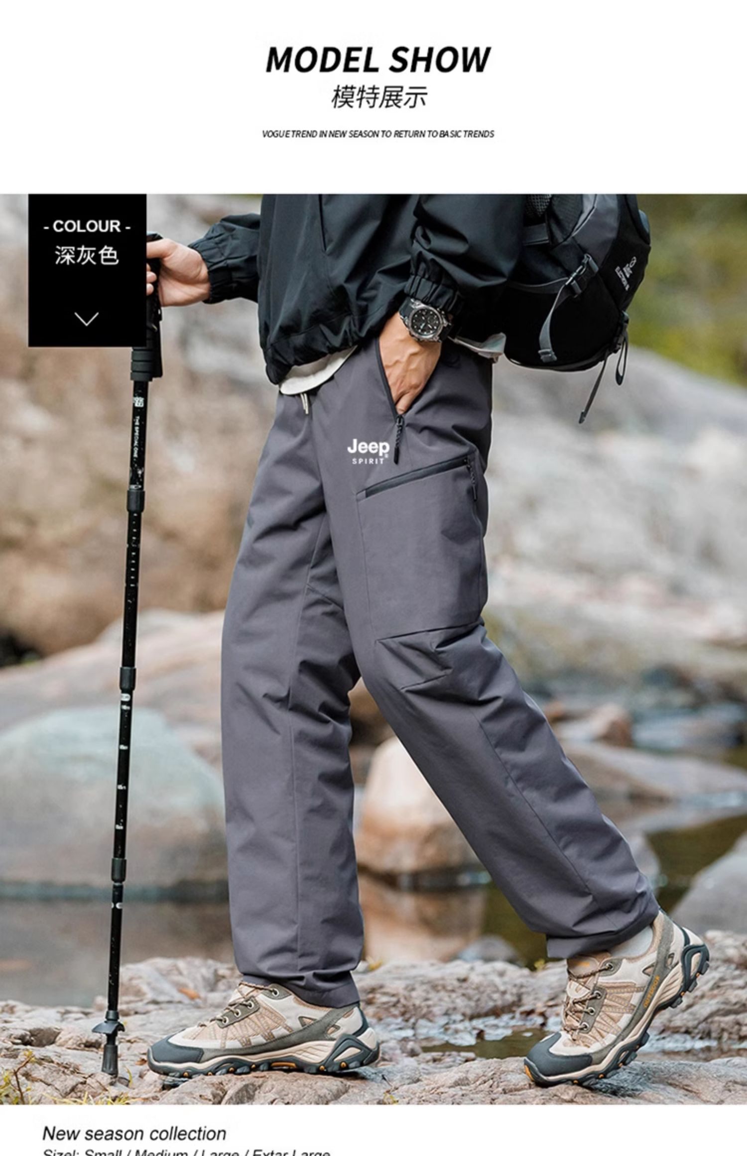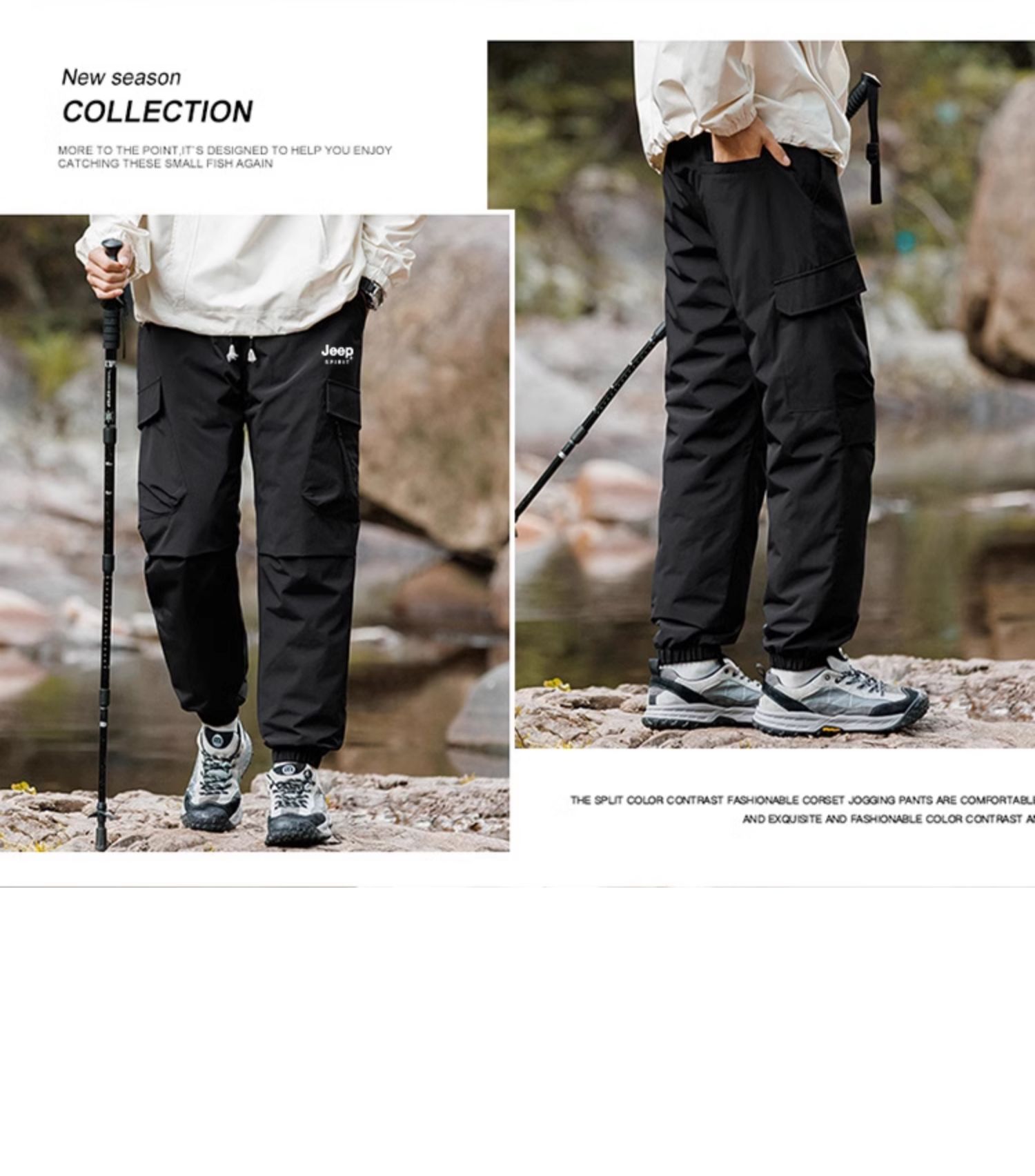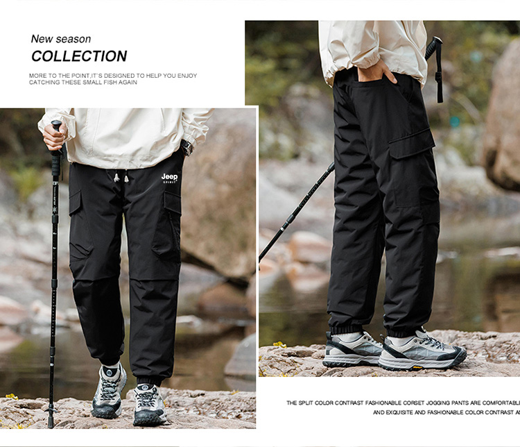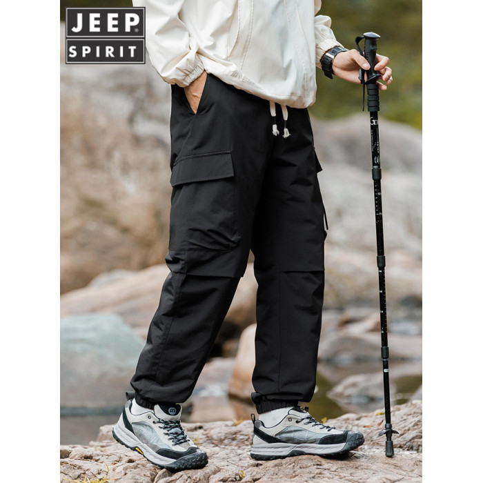 JEEP沖鋒羽絨褲男款登山長褲2025新款冬季戶外三防耐磨防寒工裝褲
