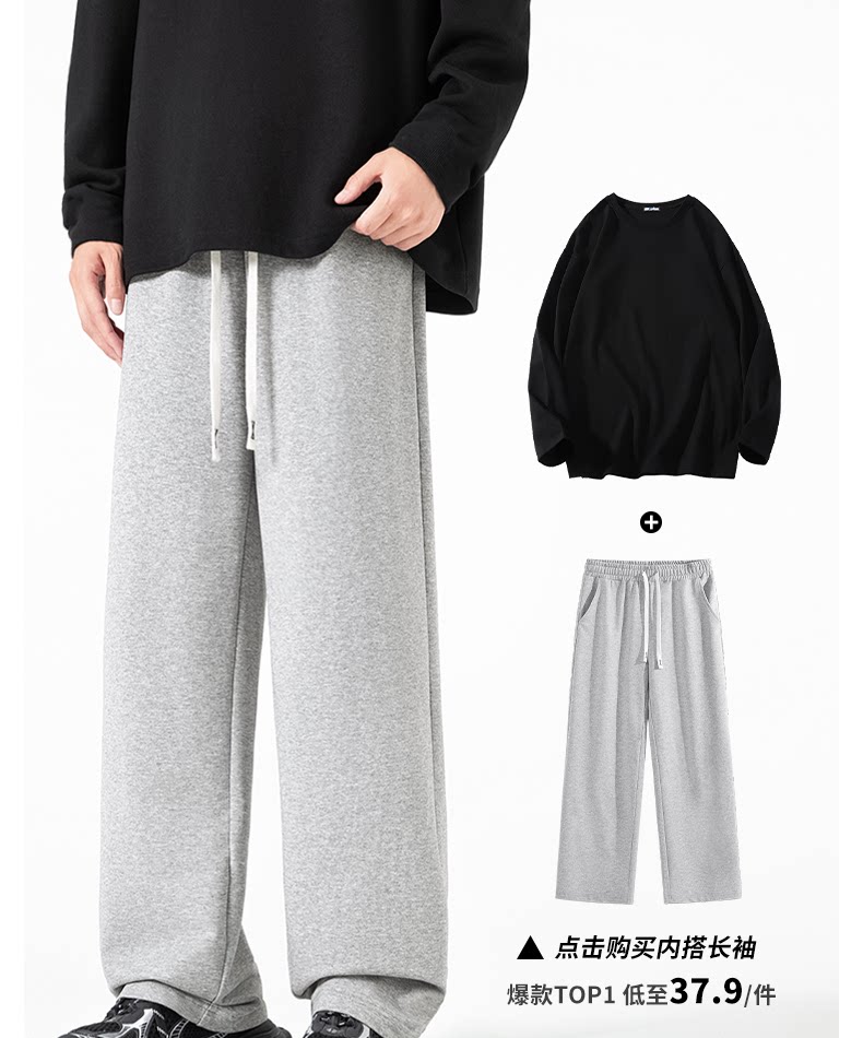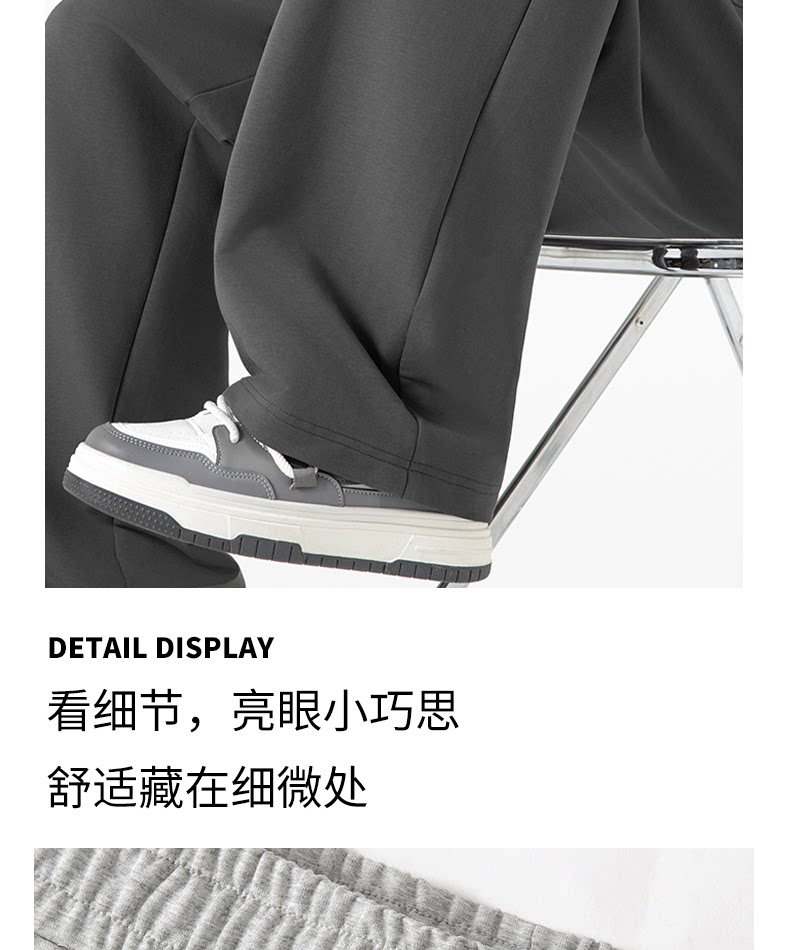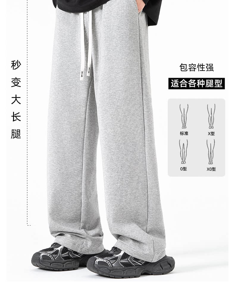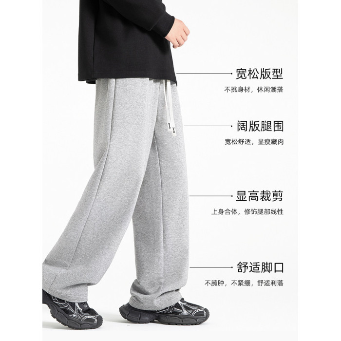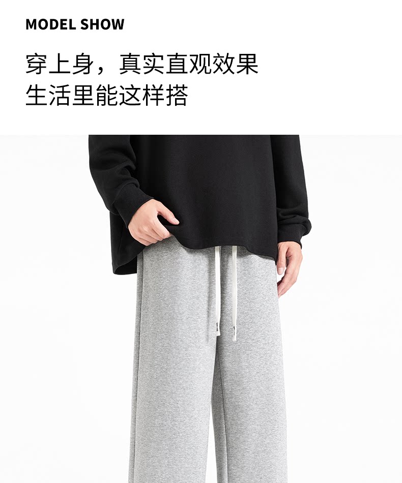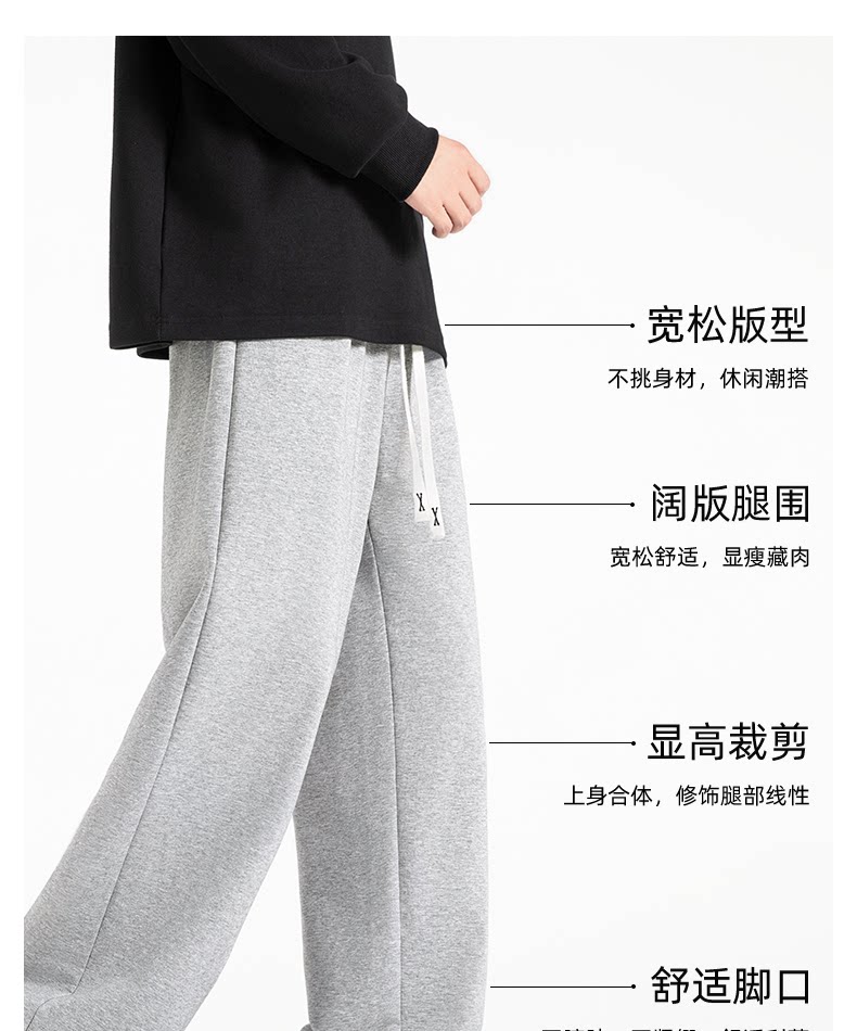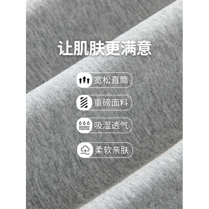 名創優品直筒長褲子男春夏季2026新款寬鬆濶腿休閒灰色運動衛褲Y