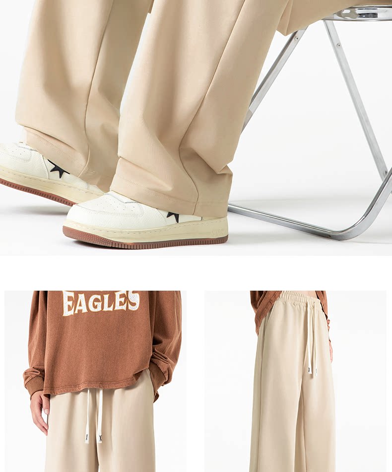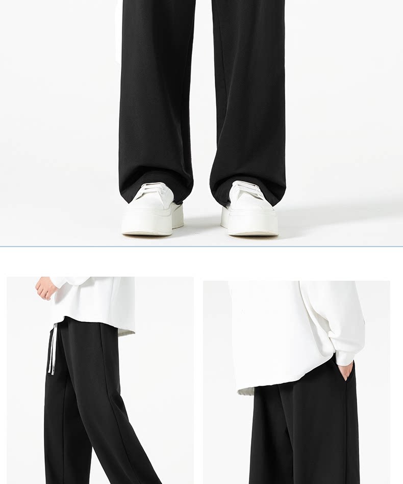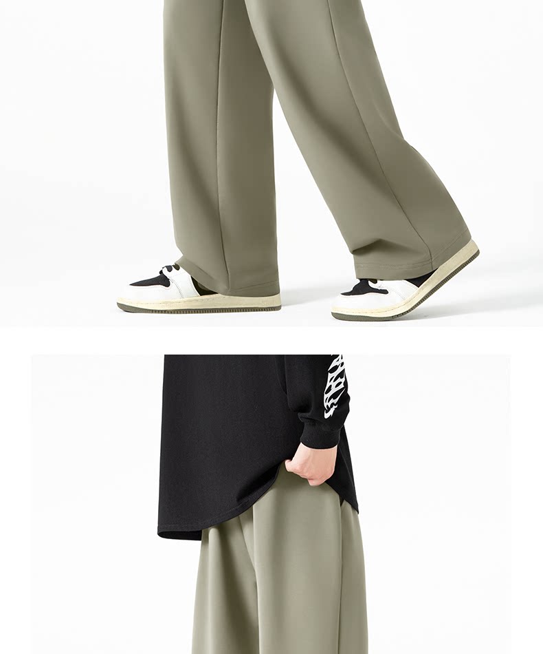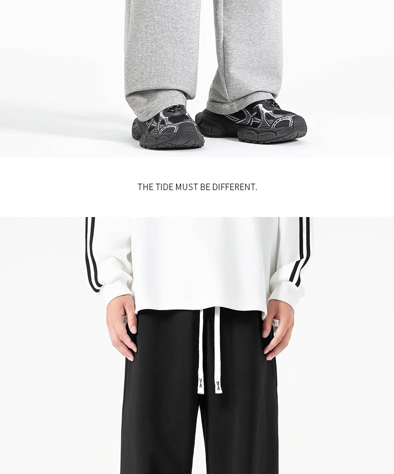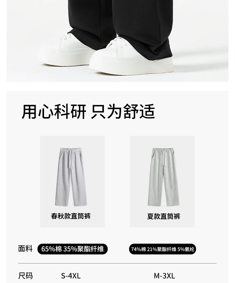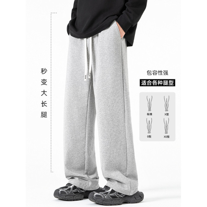 名創優品直筒長褲子男春夏季2026新款寬鬆濶腿休閒灰色運動衛褲Y