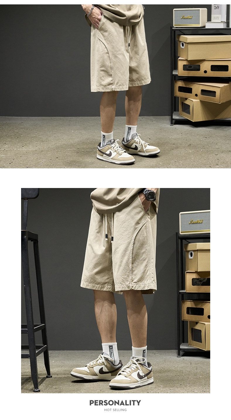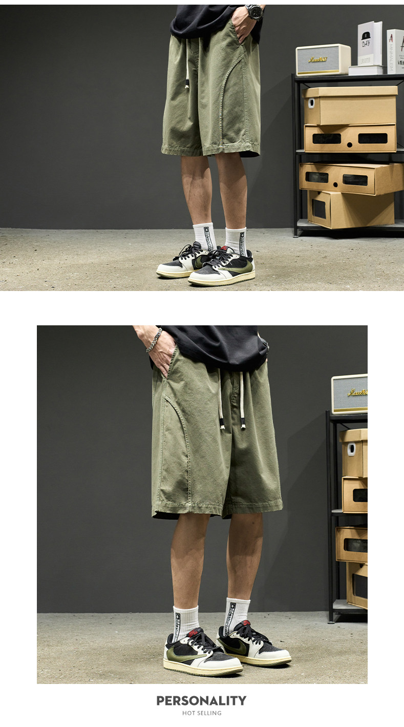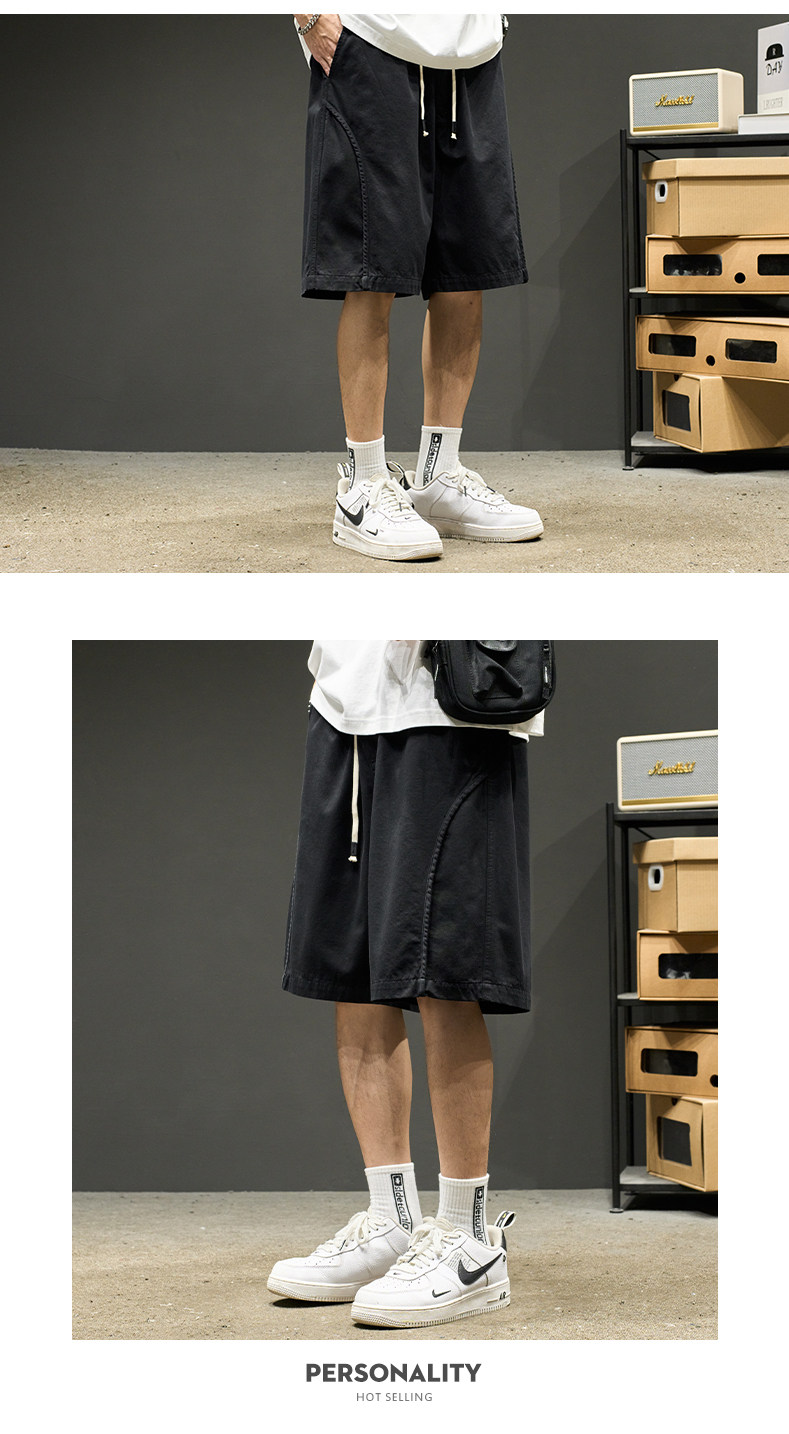 山系短褲男生夏季新款純色工裝五分褲美式潮牌簡約日系休閒褲子男