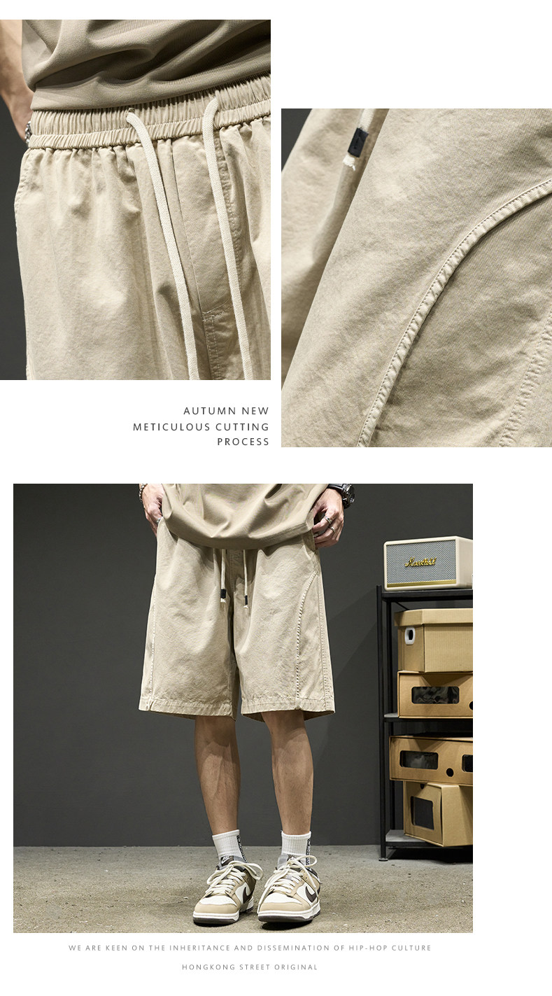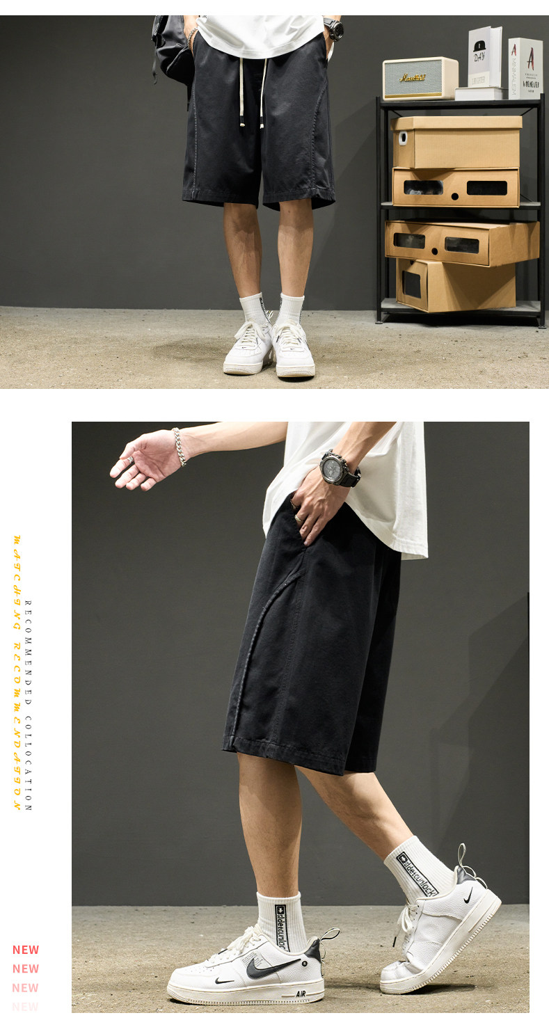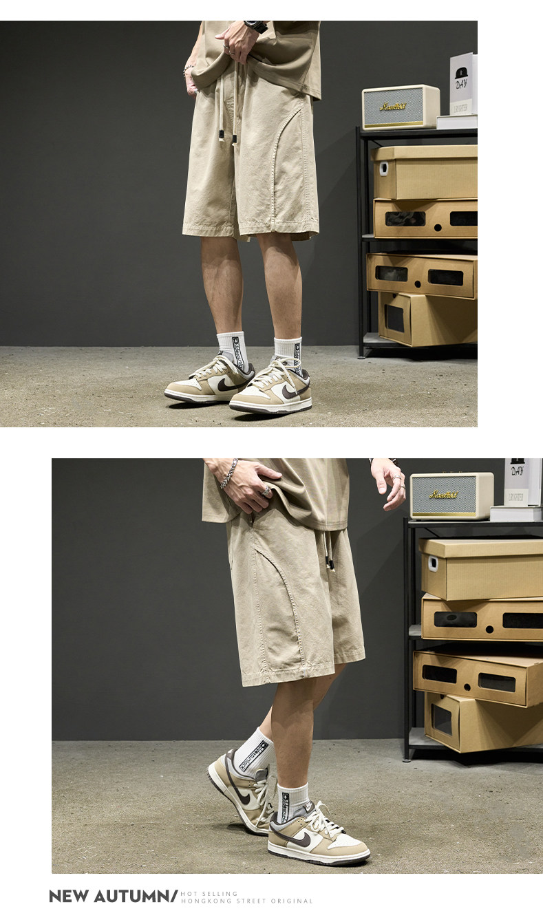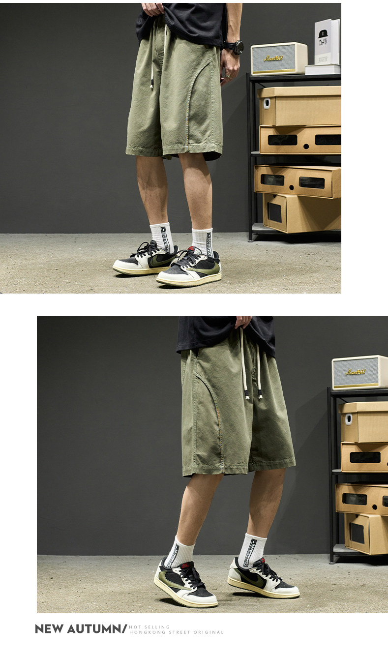 山系短褲男生夏季新款純色工裝五分褲美式潮牌簡約日系休閒褲子男