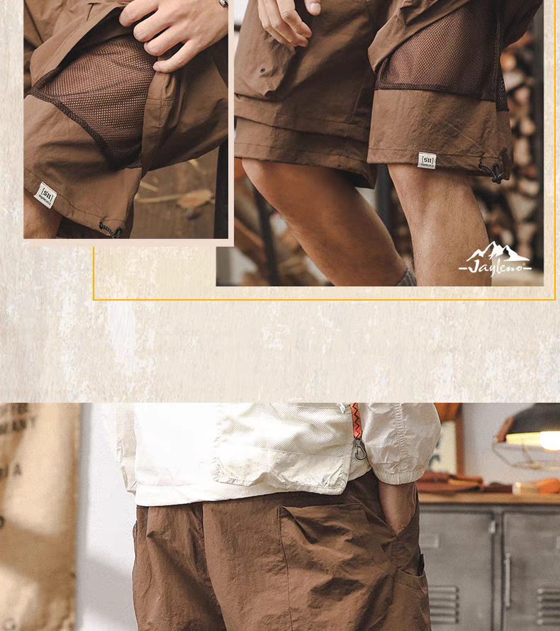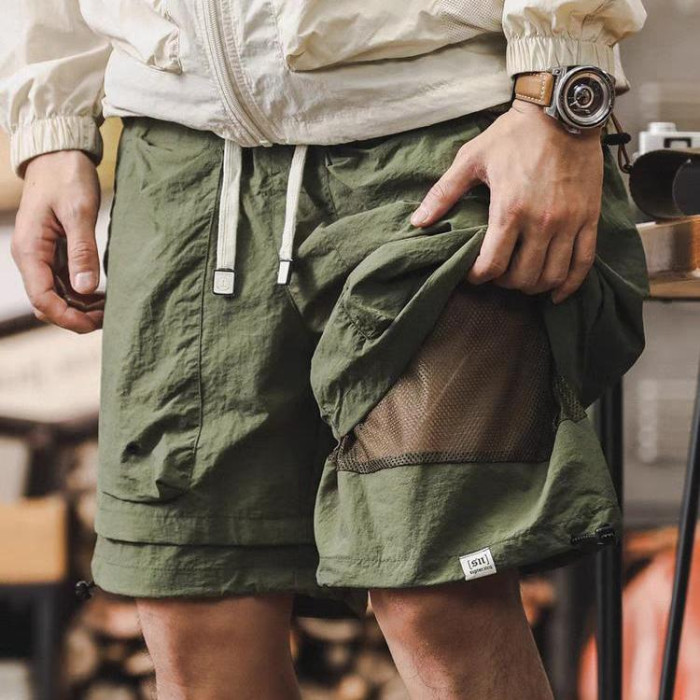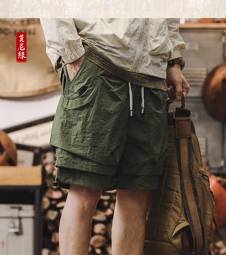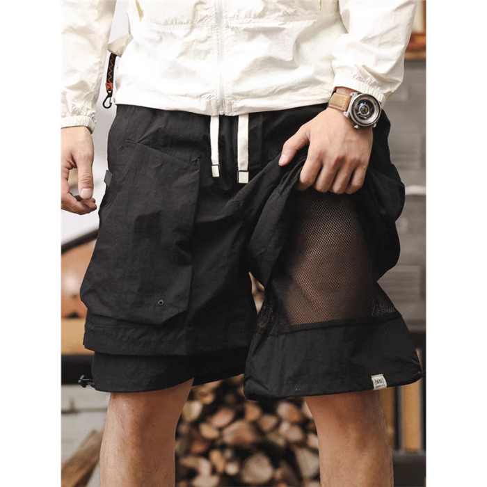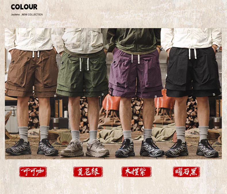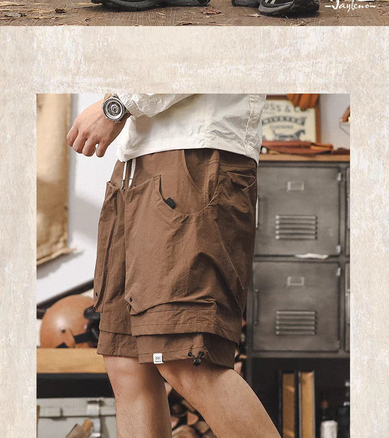 美式工裝四分半褲短褲男夏季寬鬆假兩件山系機能速乾褲休閒五分褲