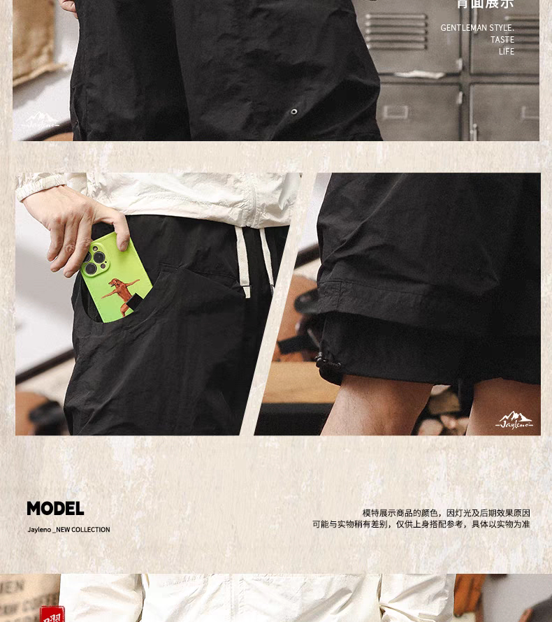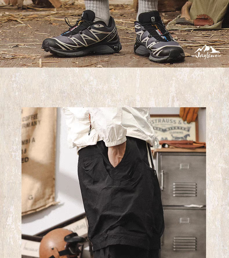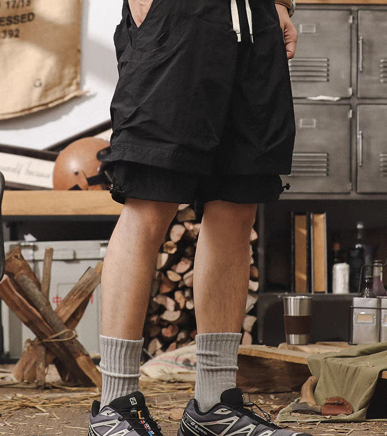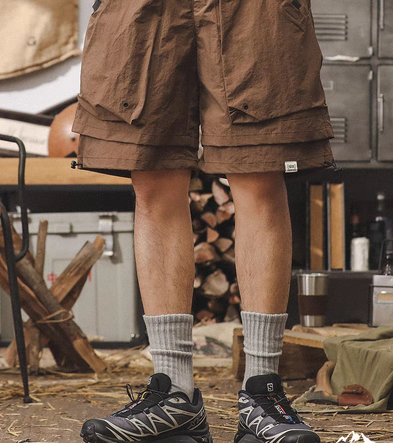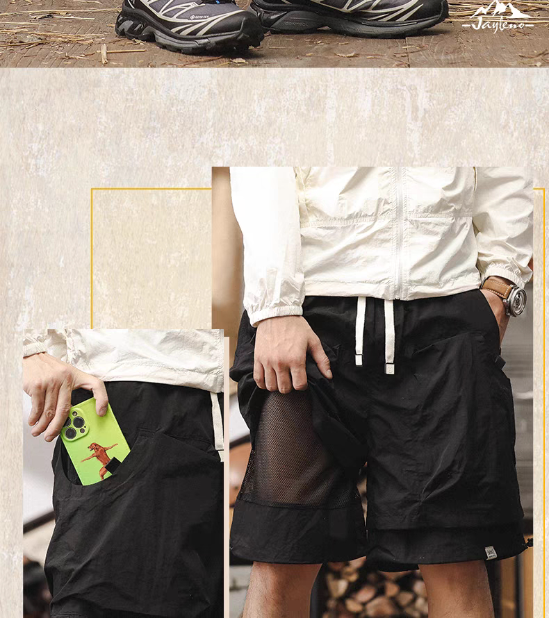美式工裝四分半褲短褲男夏季寬鬆假兩件山系機能速乾褲休閒五分褲