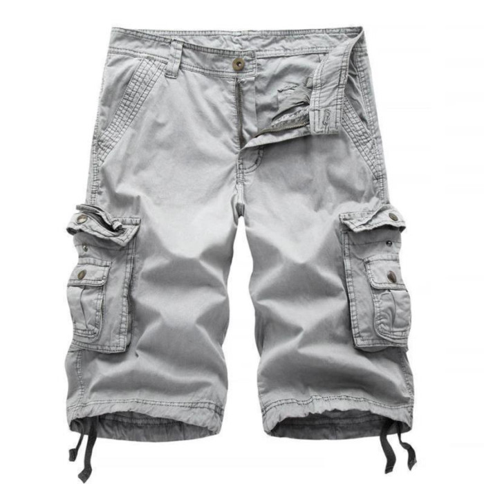 n's Shorts 男士純色平口袋工裝短褲寬鬆休閒時