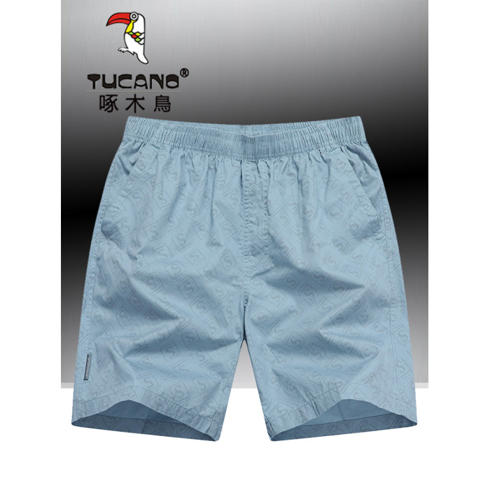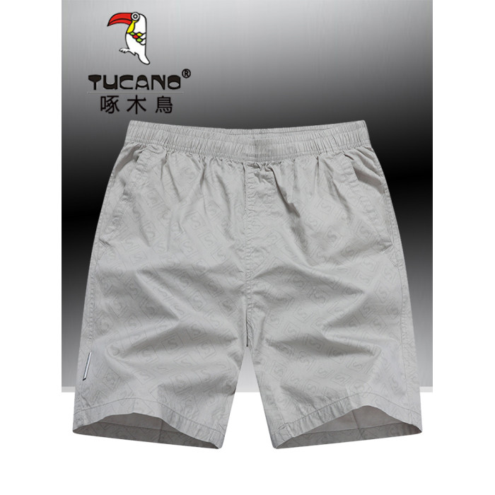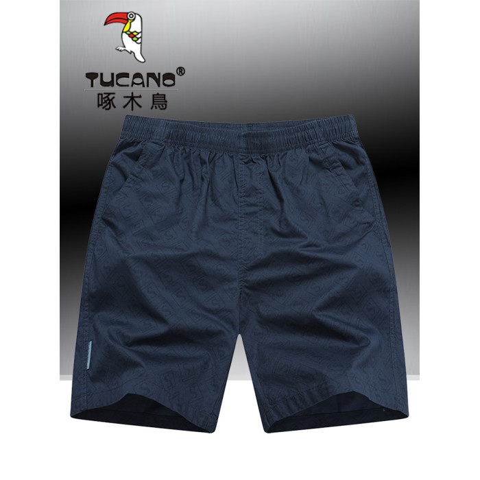 啄木鳥夏季純棉短褲男休閒家居寬鬆大碼沙灘褲運動五分褲外穿中褲
