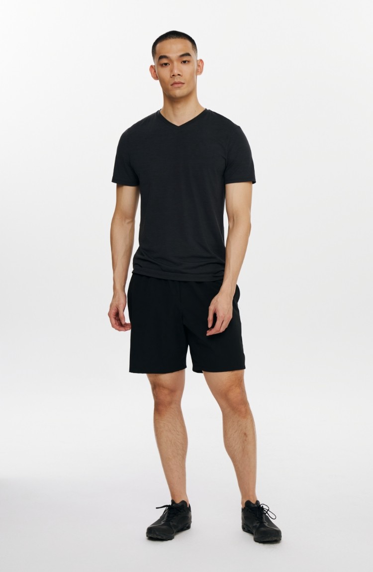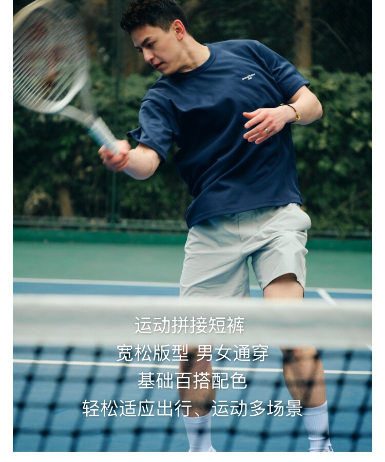 Oneup運動拼接彈力短褲男士夏季戶外跑步網球健身透氣黑灰色褲子
