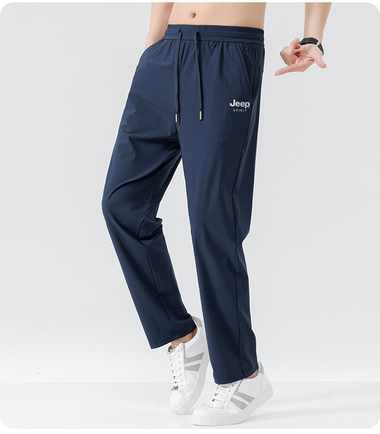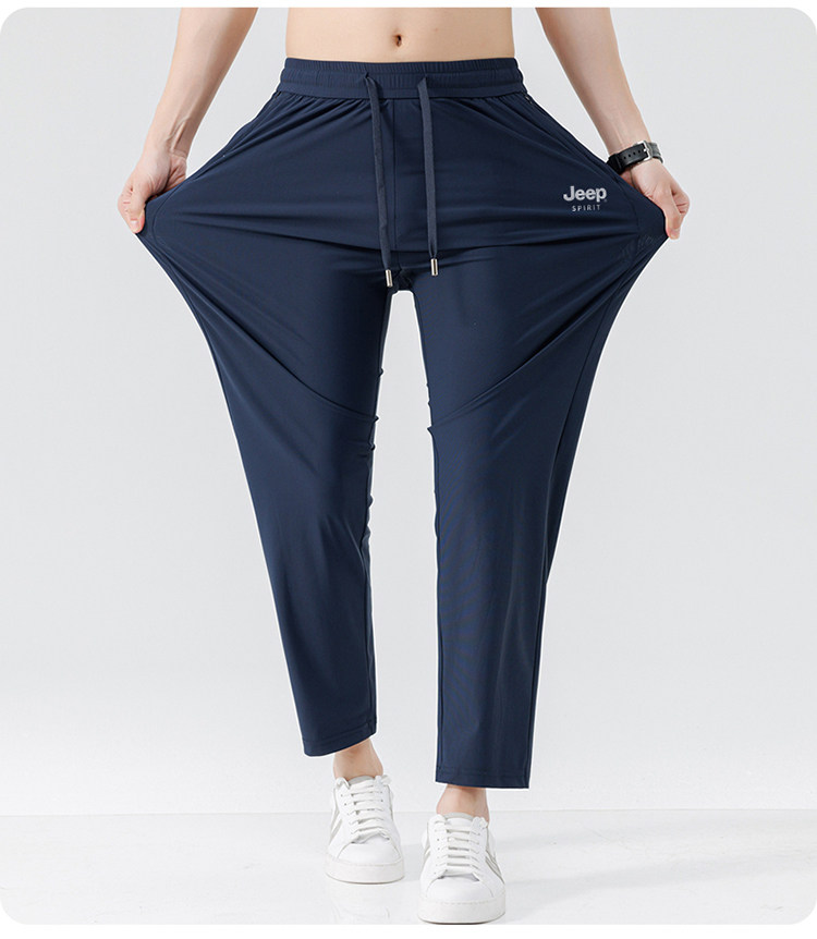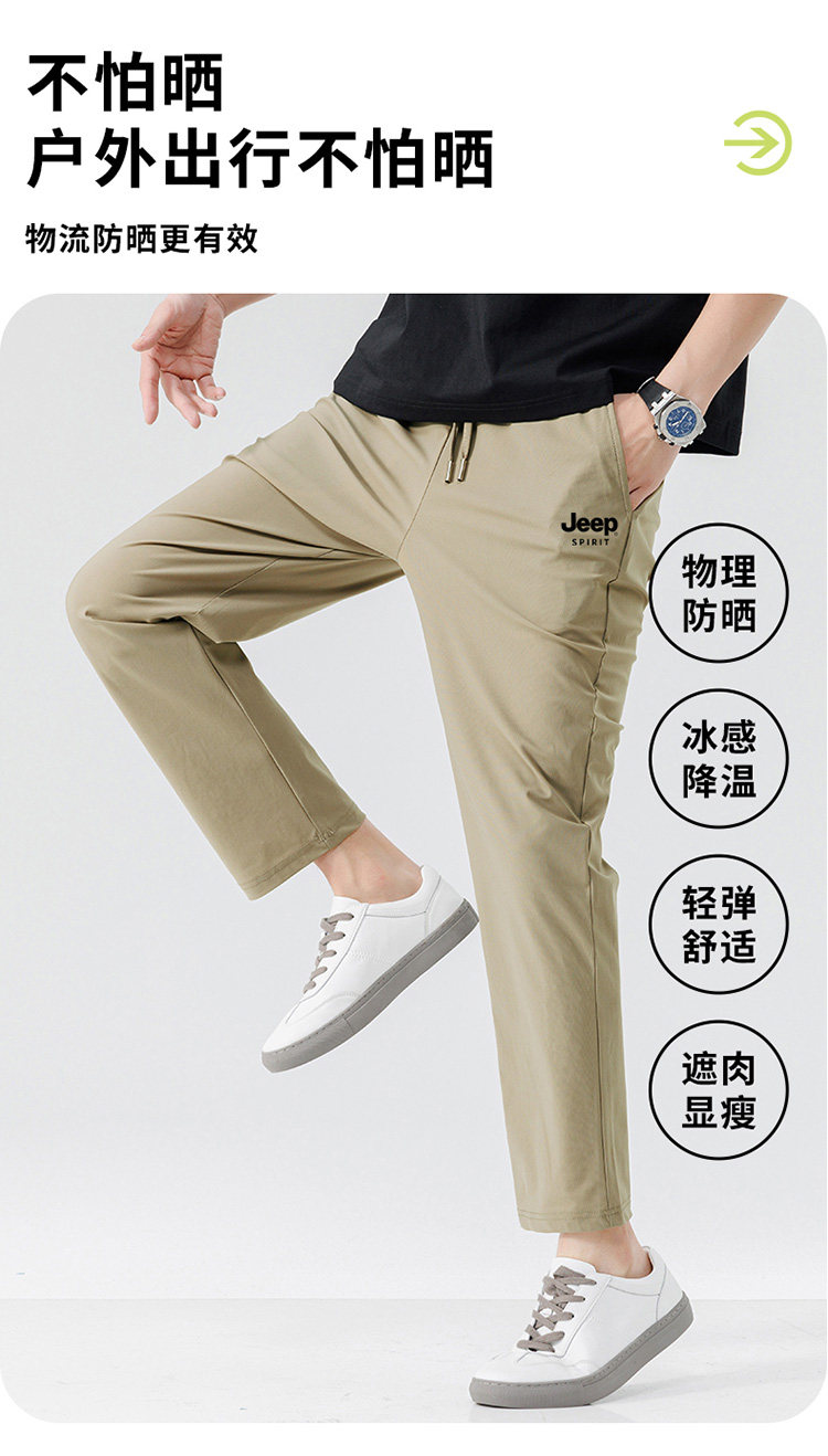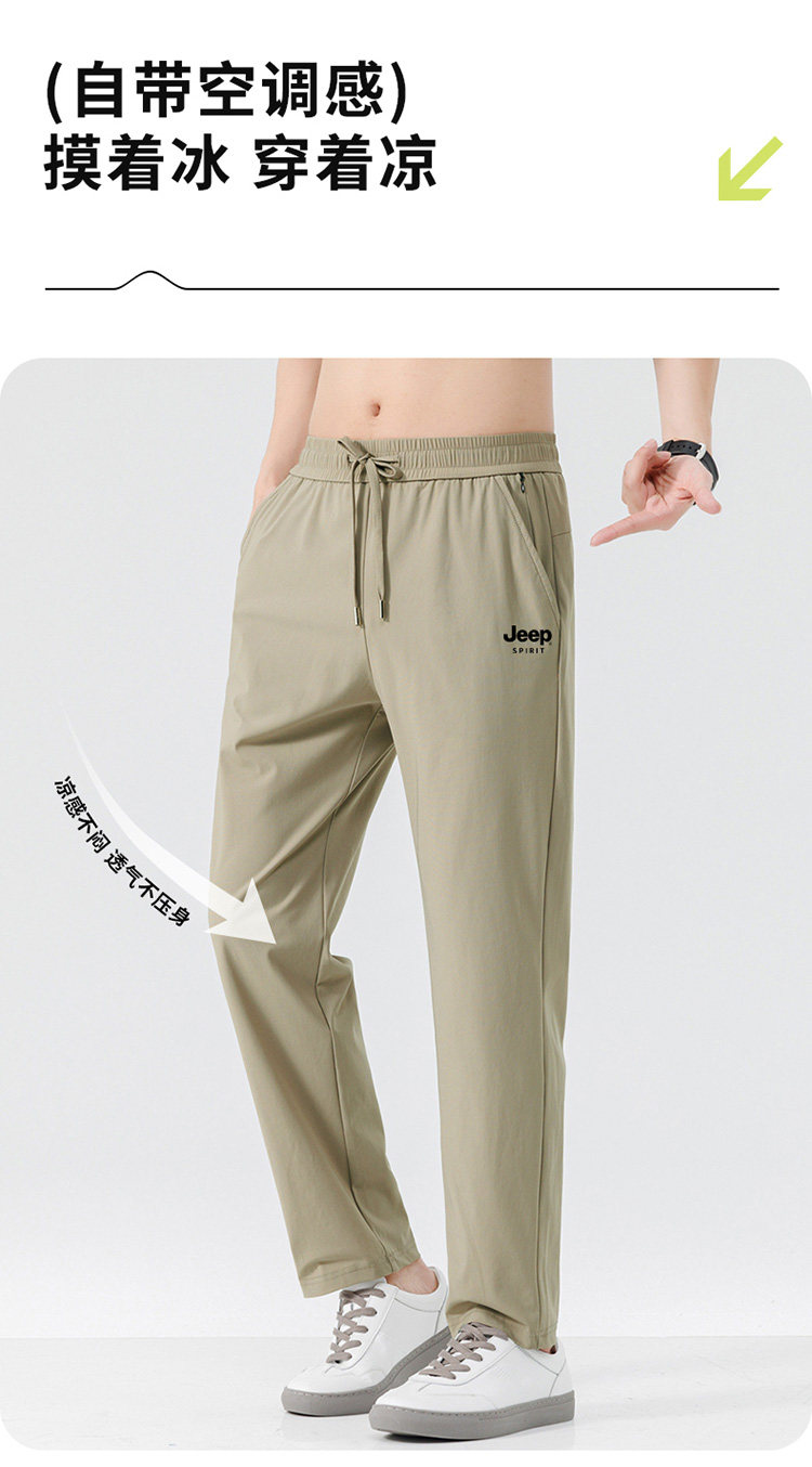 JEEP吉普休閒褲男士夏季2026新款薄冰絲彈力長褲直筒速乾涼感褲子