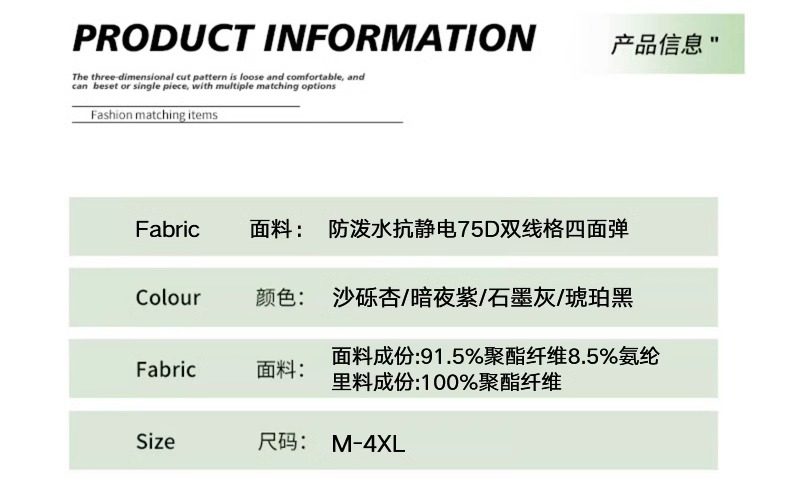 | 材質成分 | 聚酯纖維91.5% 聚氨酯彈性纖維(氨綸)8.5% |