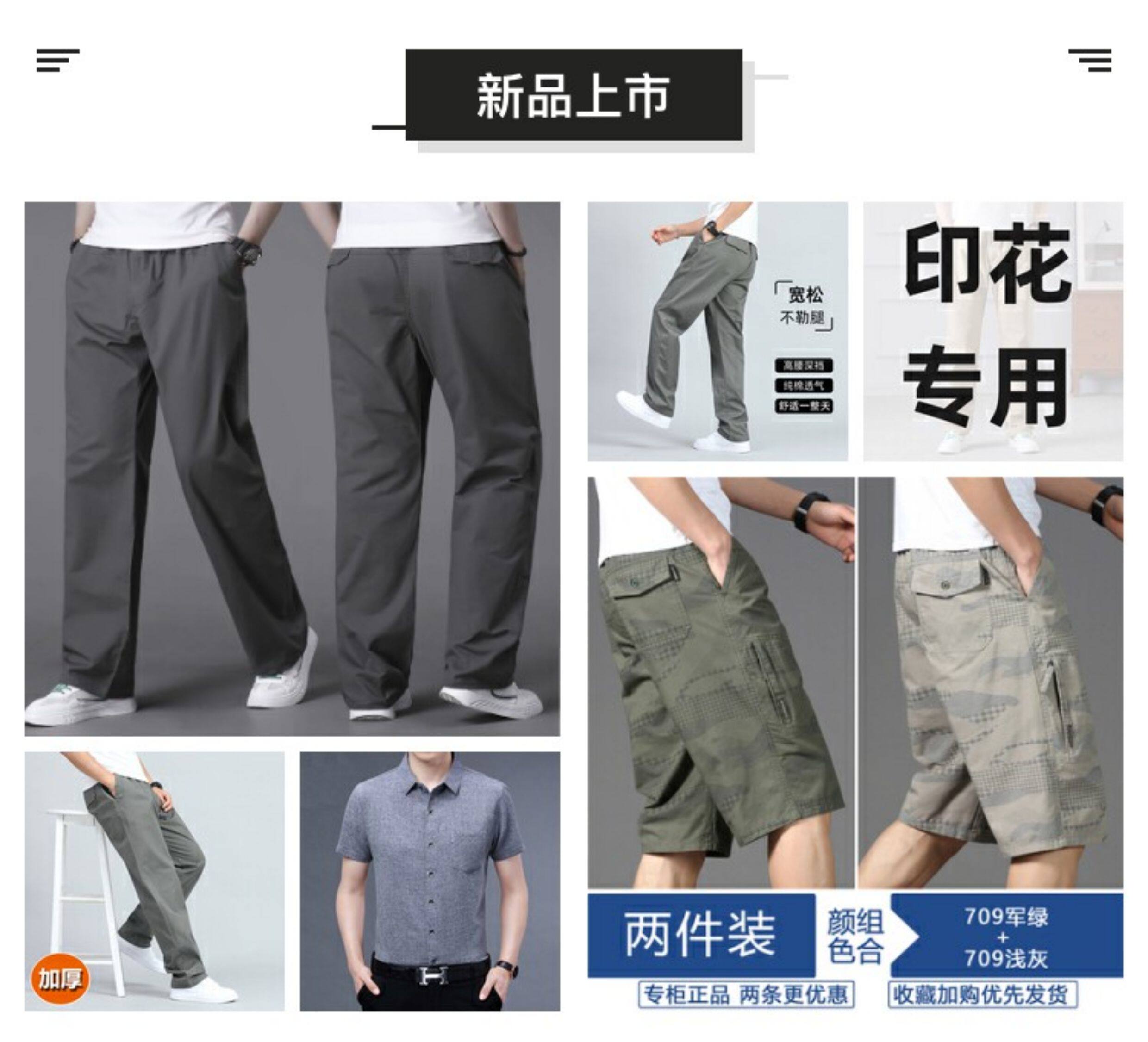 春夏季薄款純棉休閒褲男士寬鬆直筒褲多口袋大碼運動長褲子工裝褲