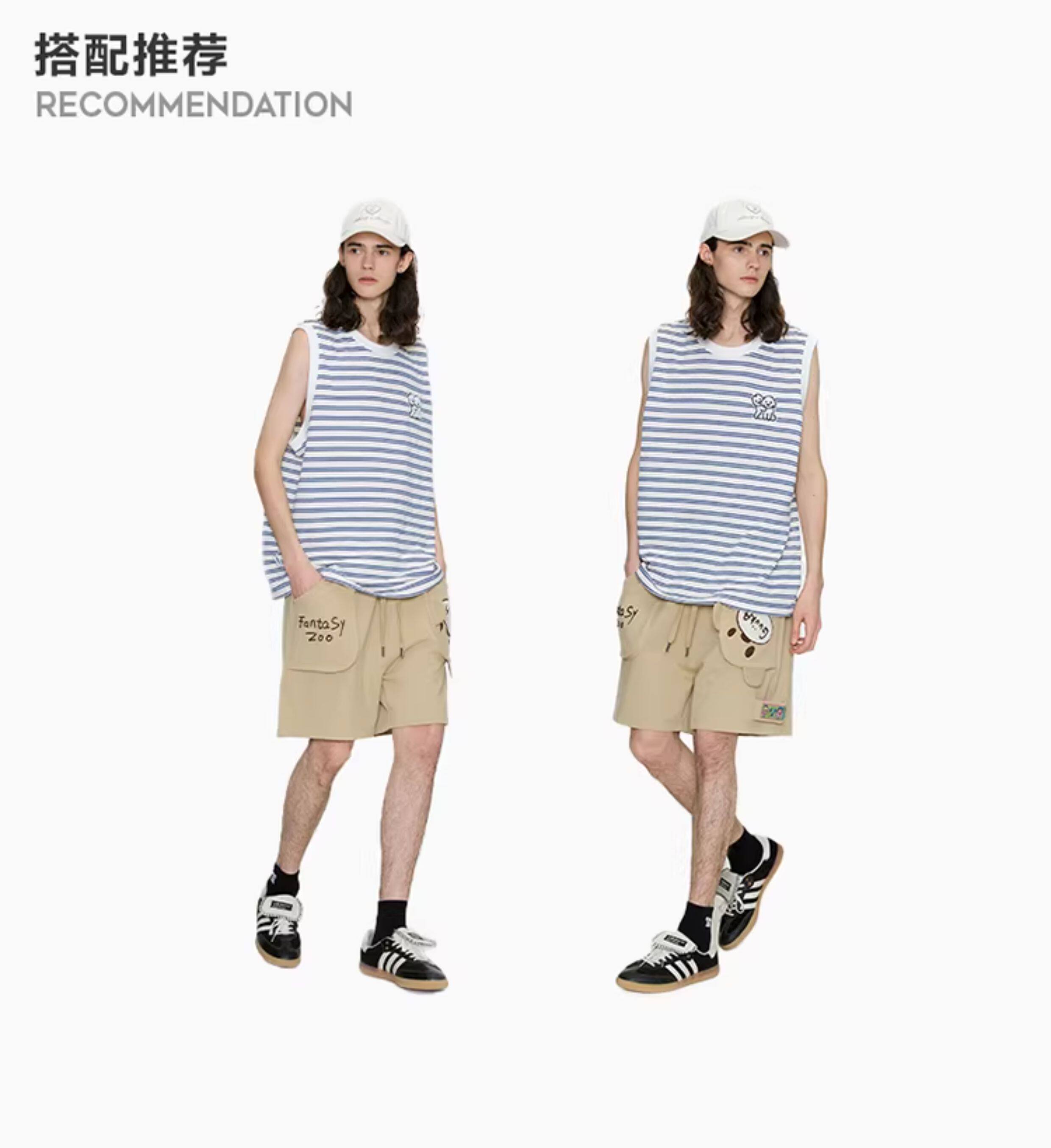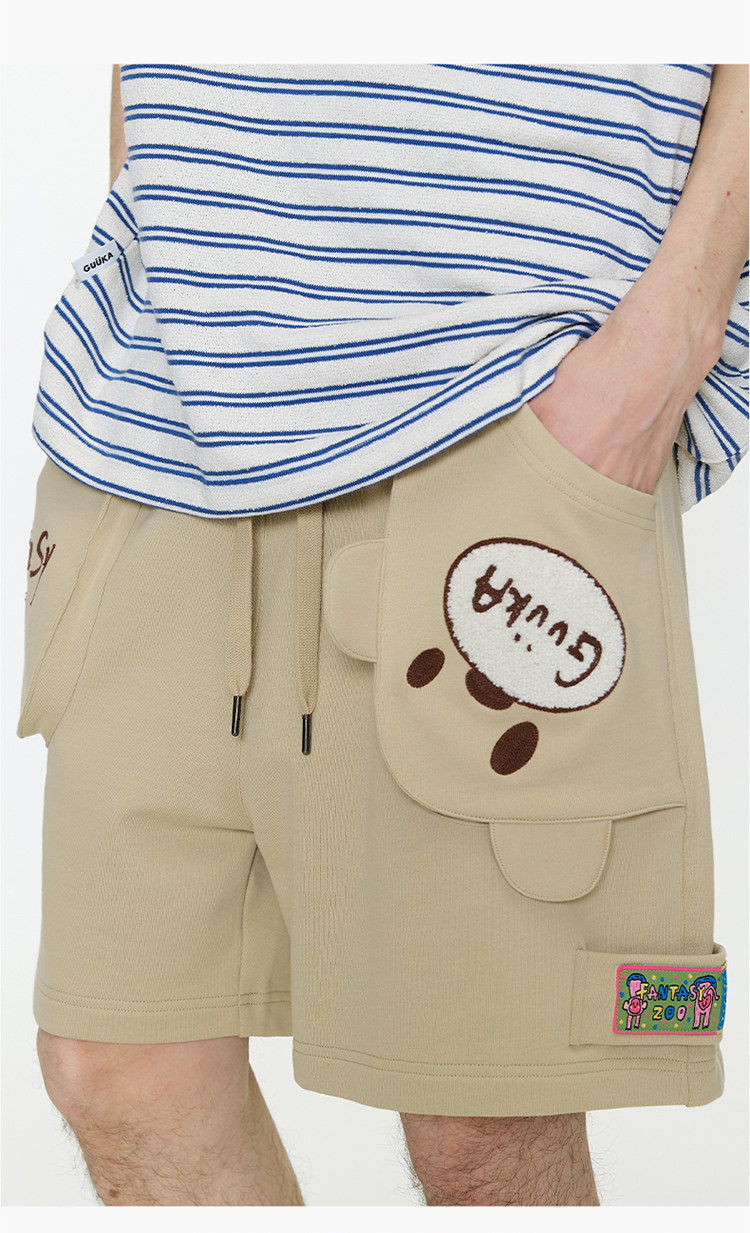 GUUKA潮牌卡其色立體小熊重磅純棉短褲男夏 刺綉五分褲子寬鬆中褲