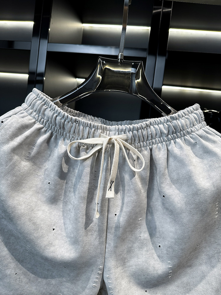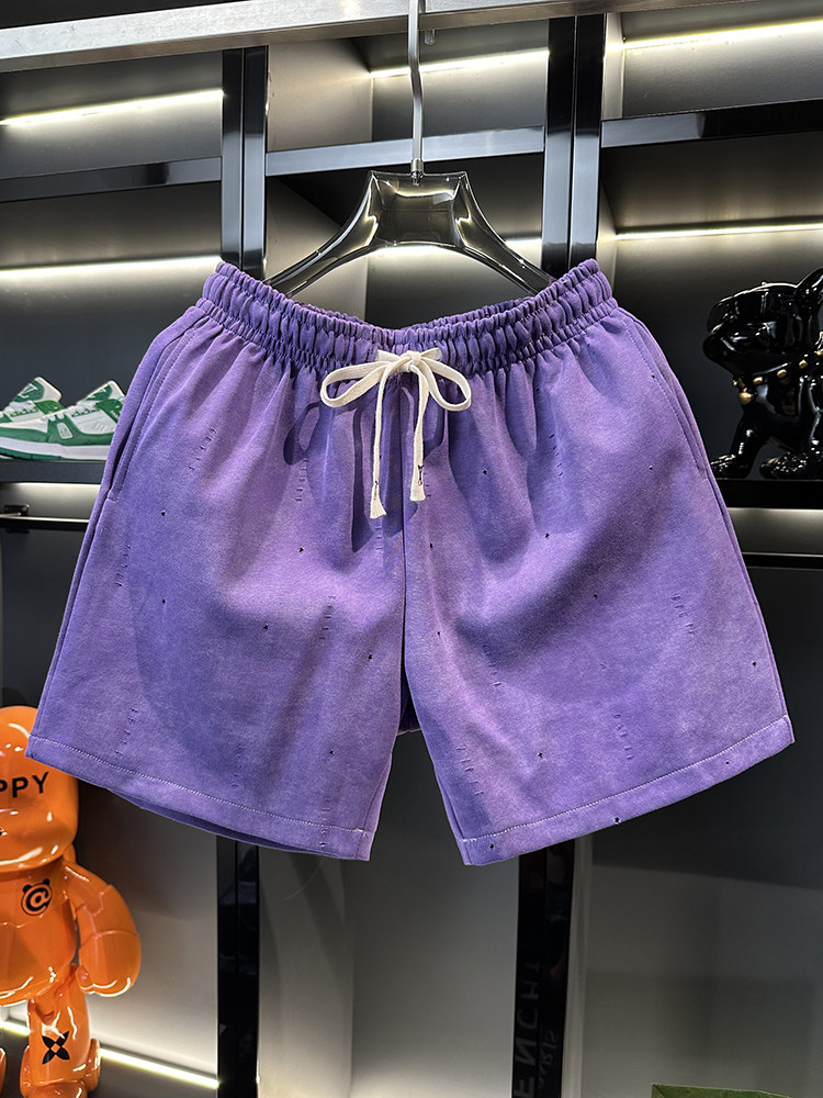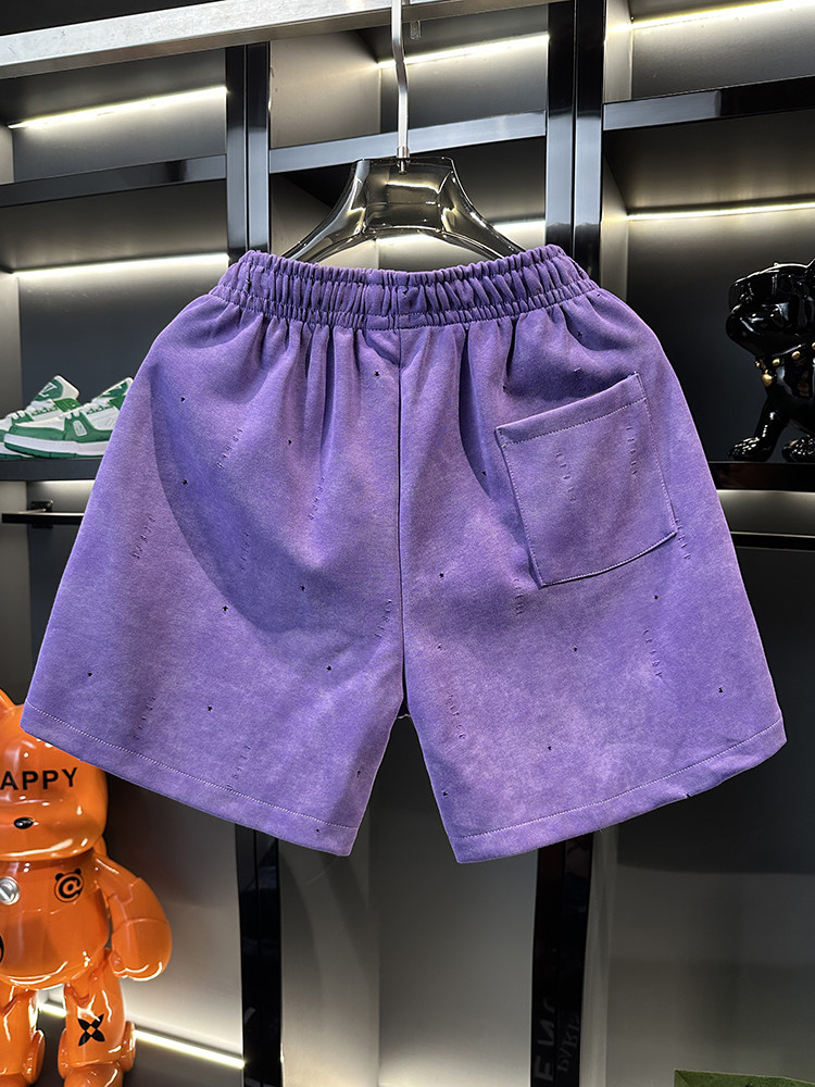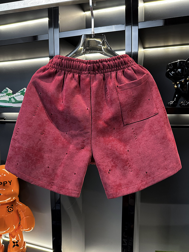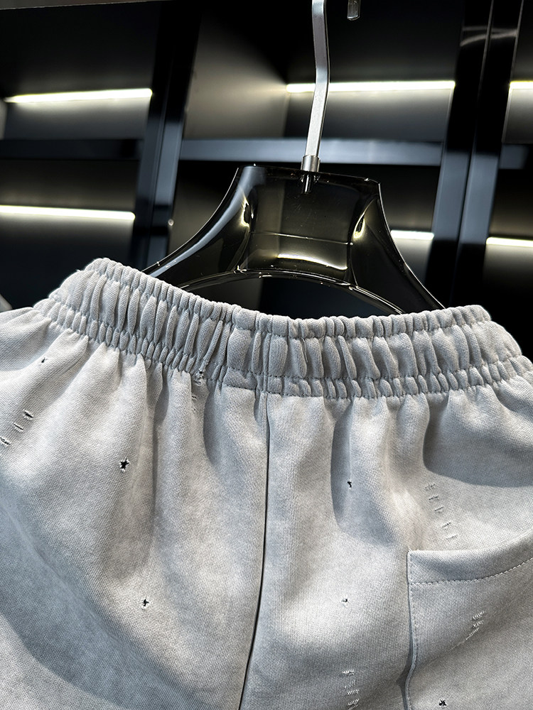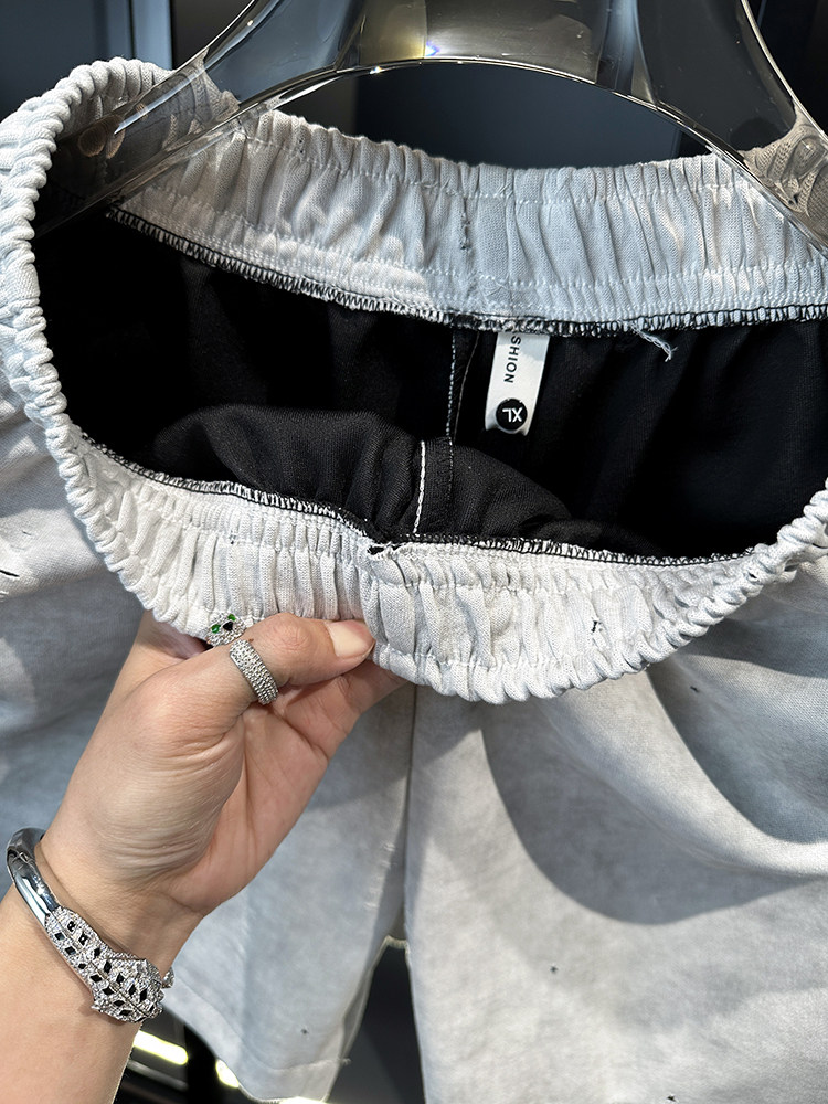 破洞紥染短褲夏季新款輕奢重磅高棉感親膚四分褲休閒男女寬鬆運動