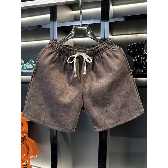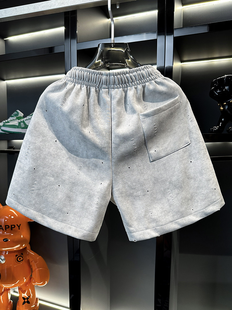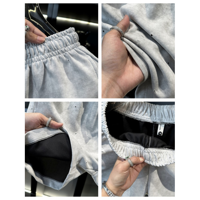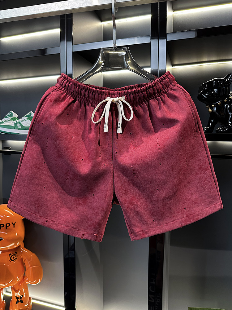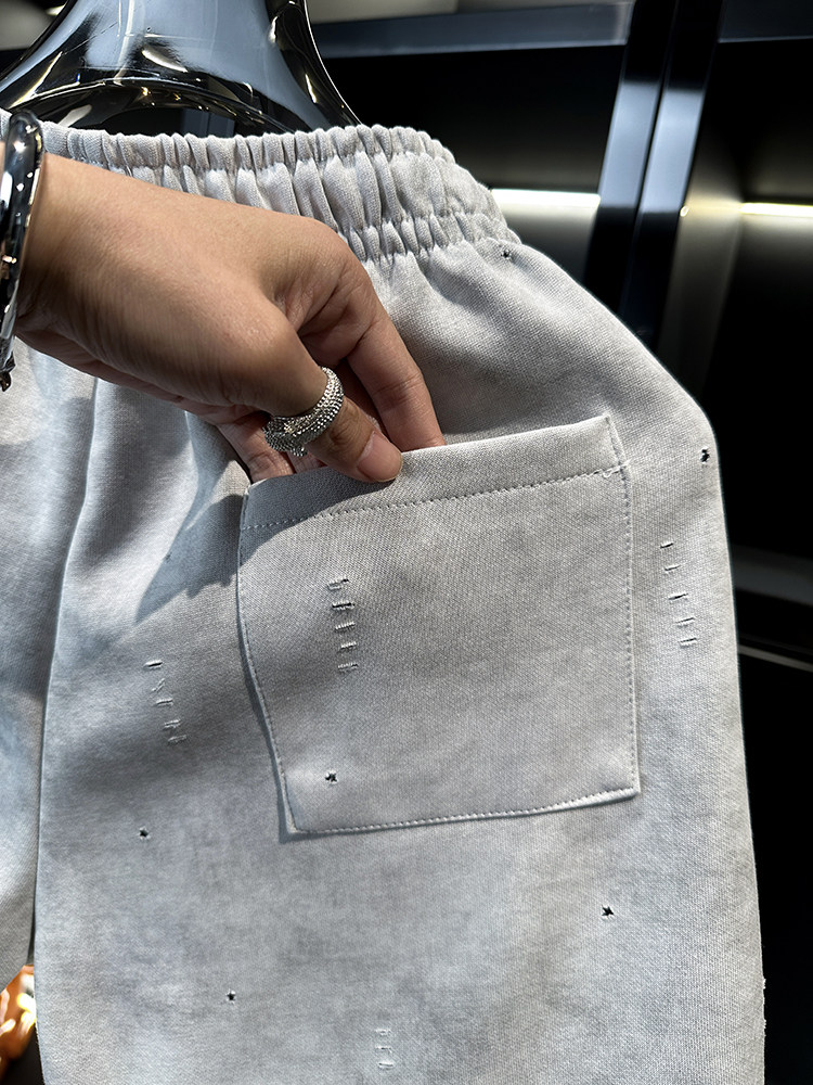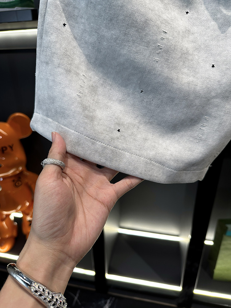 破洞紥染短褲夏季新款輕奢重磅高棉感親膚四分褲休閒男女寬鬆運動