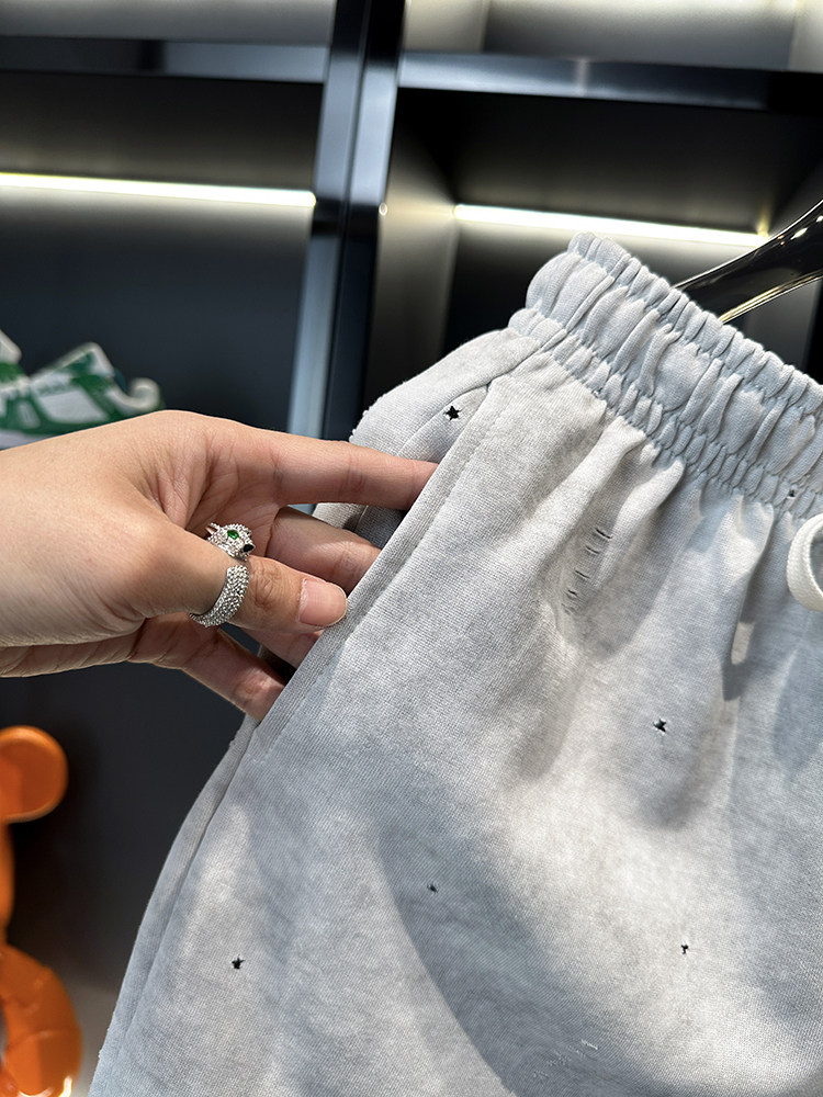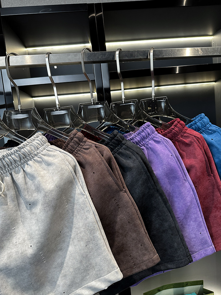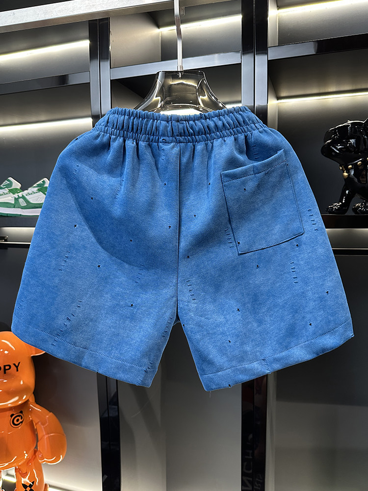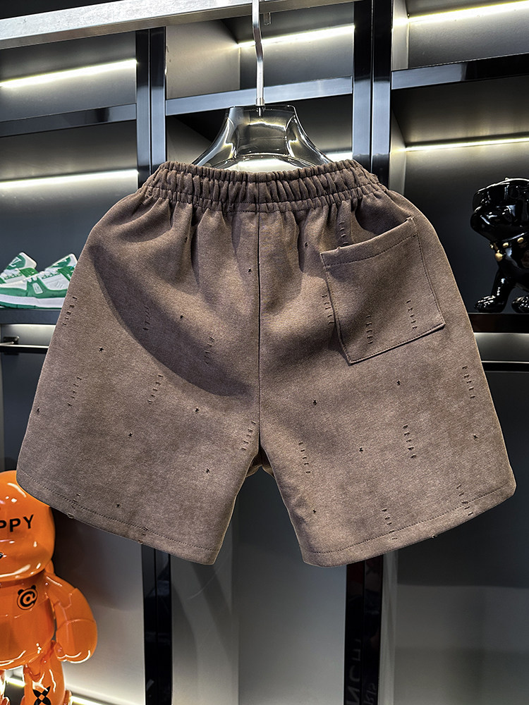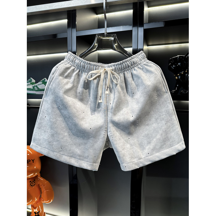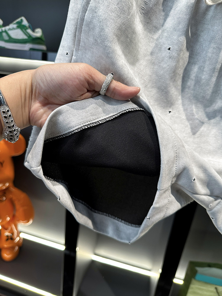 破洞紥染短褲夏季新款輕奢重磅高棉感親膚四分褲休閒男女寬鬆運動