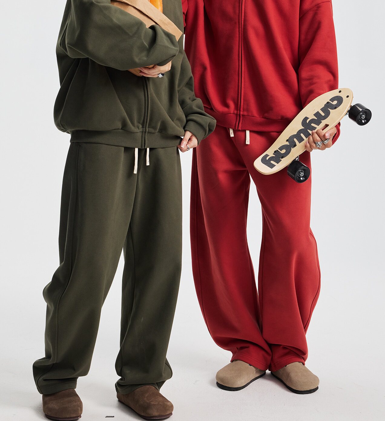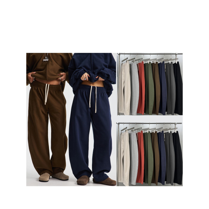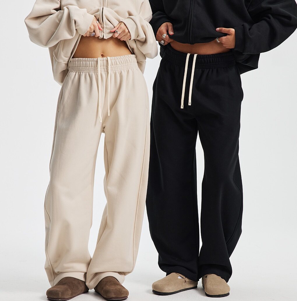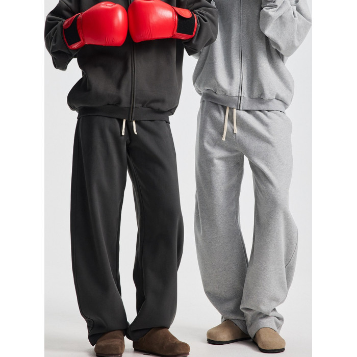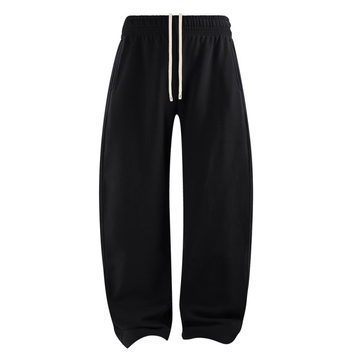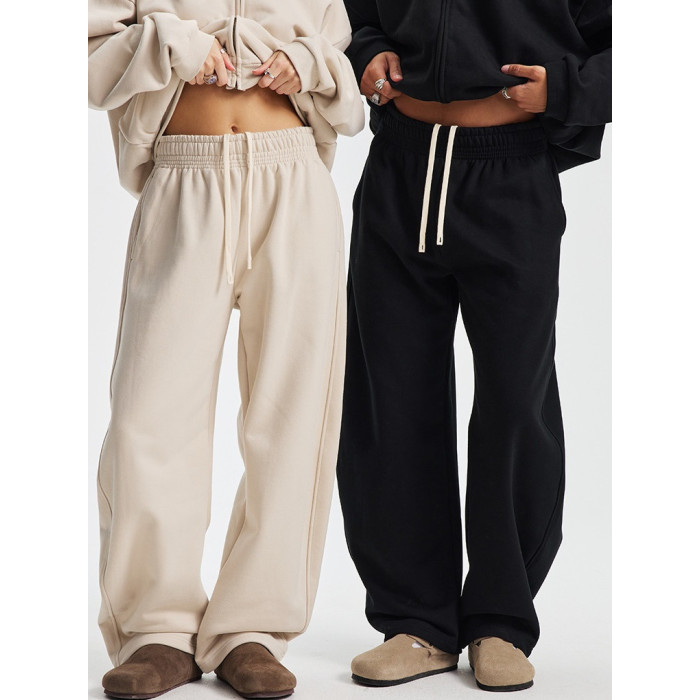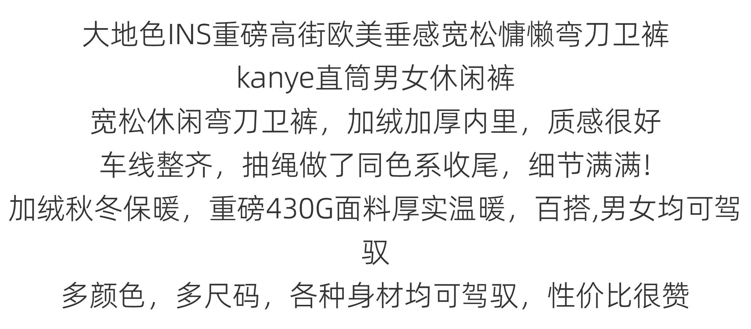 大地色INS430G重磅高街歐美垂感寬鬆彎刀衛褲kanye直筒休閒長褲子