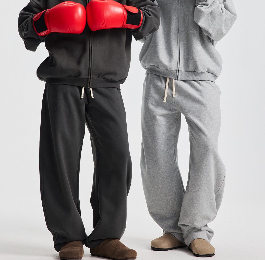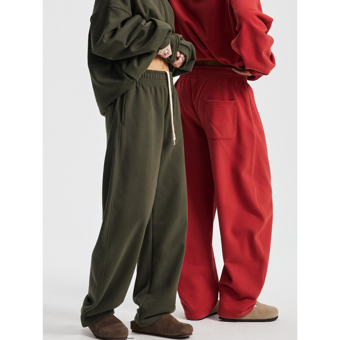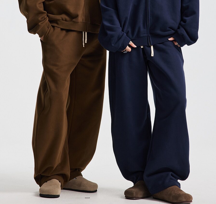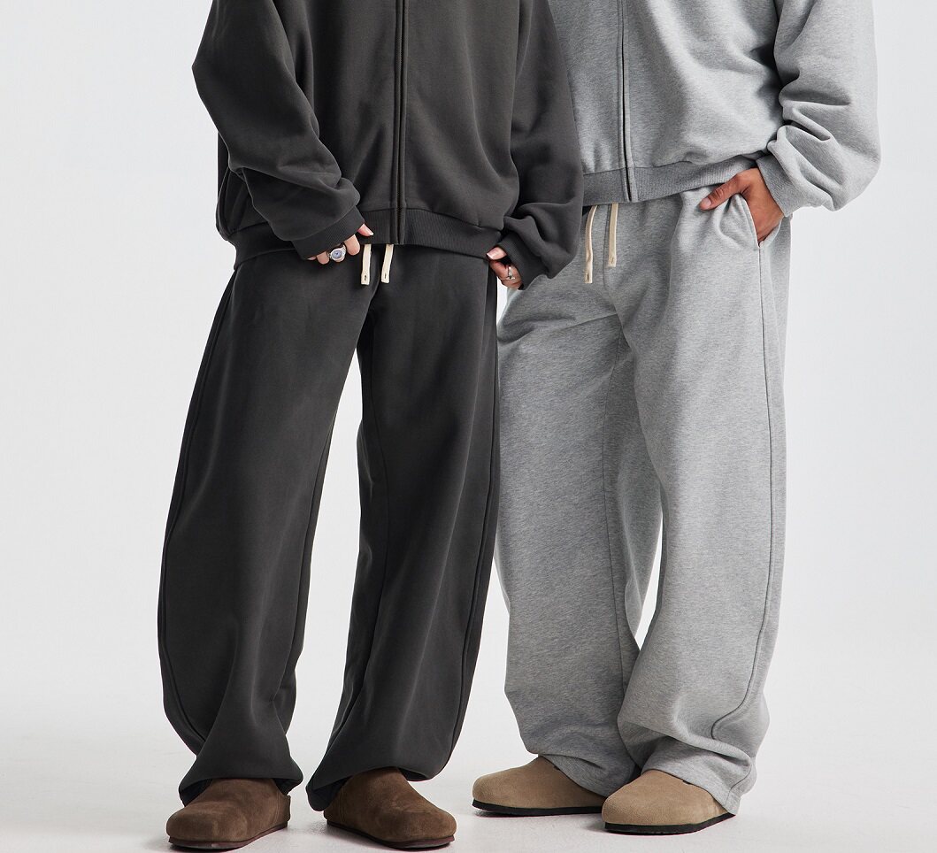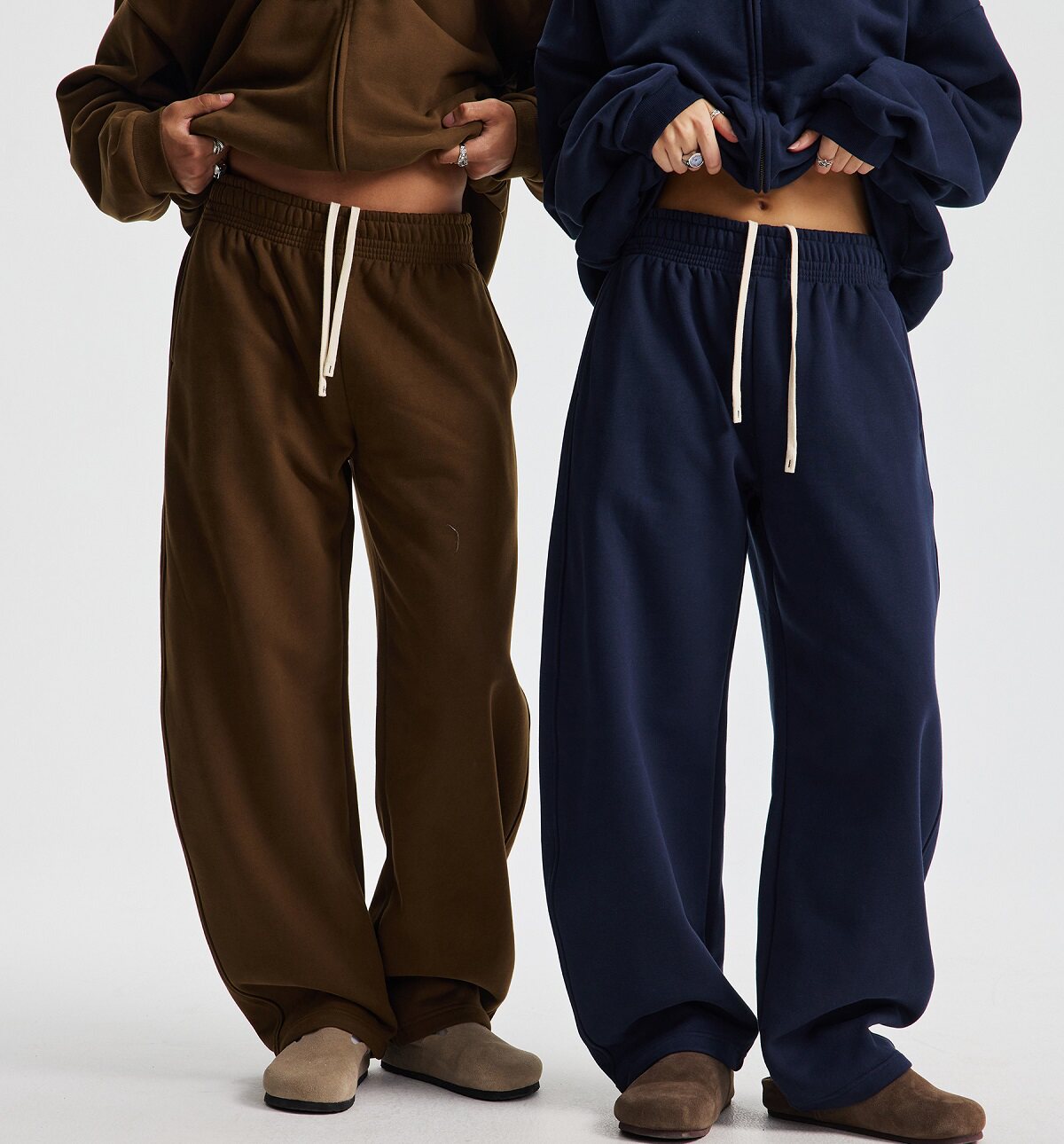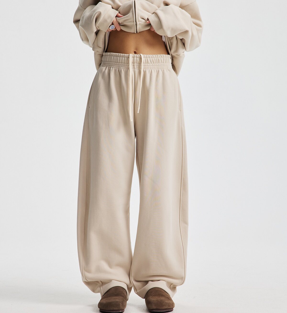 大地色INS430G重磅高街歐美垂感寬鬆彎刀衛褲kanye直筒休閒長褲子