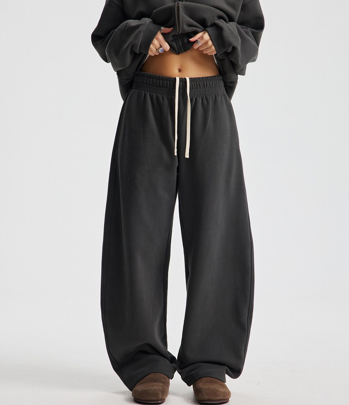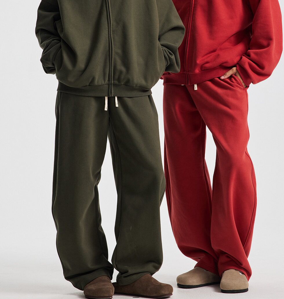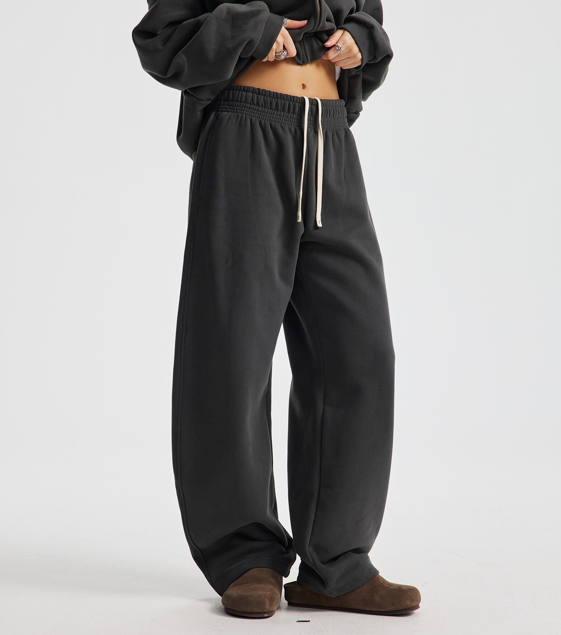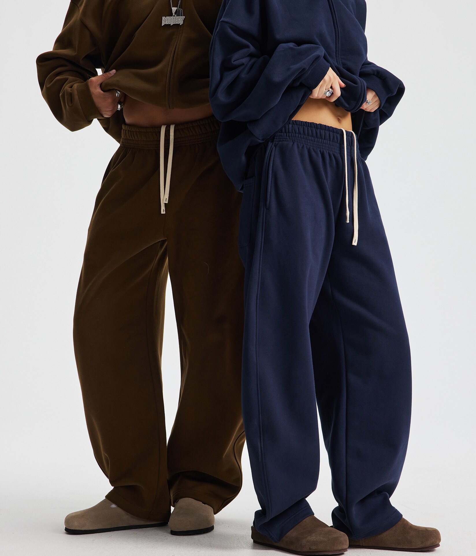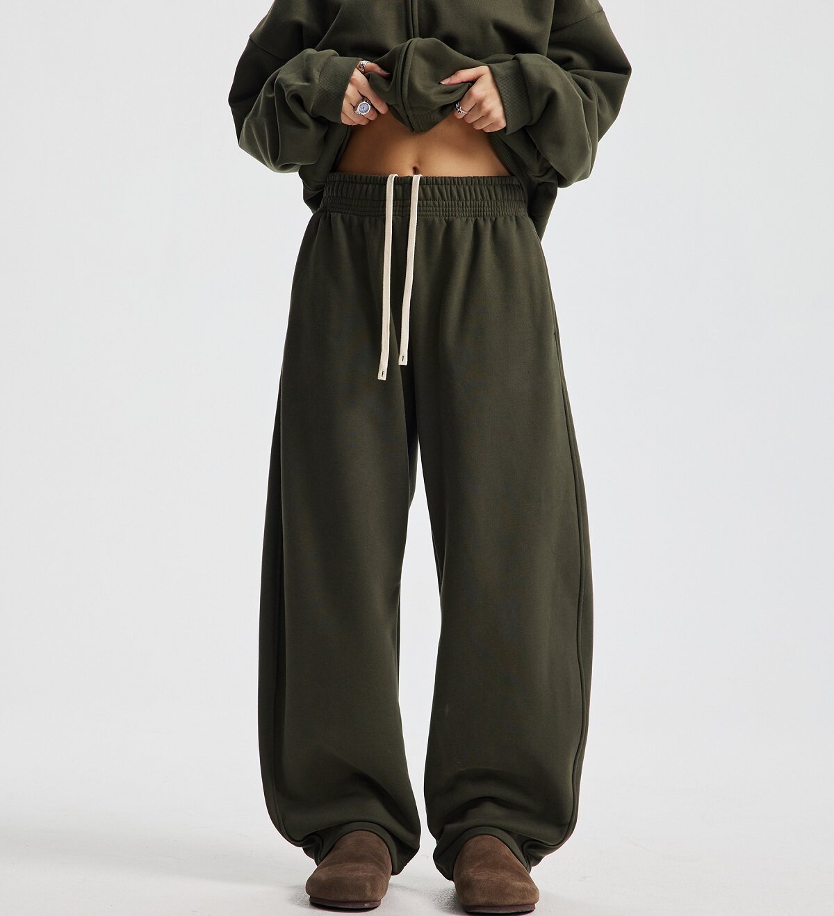 大地色INS430G重磅高街歐美垂感寬鬆彎刀衛褲kanye直筒休閒長褲子
