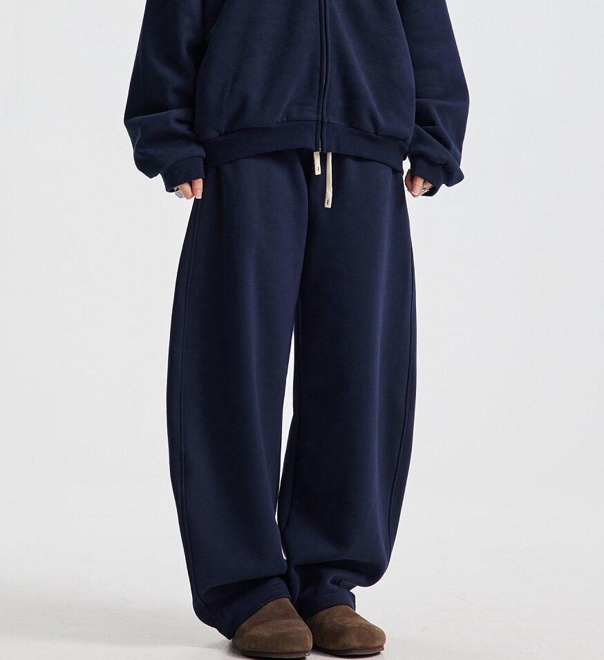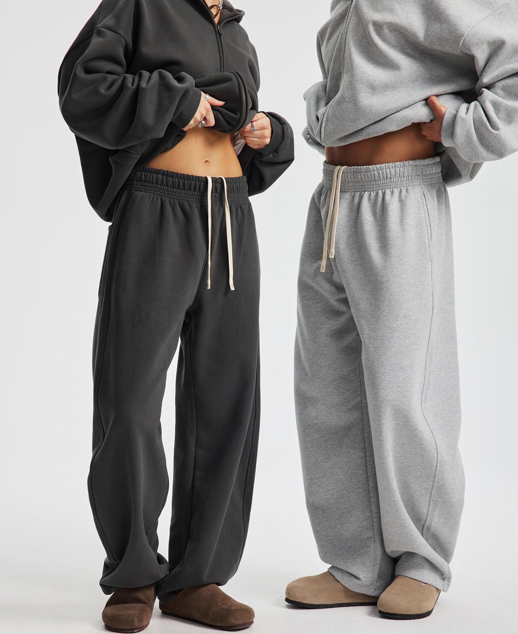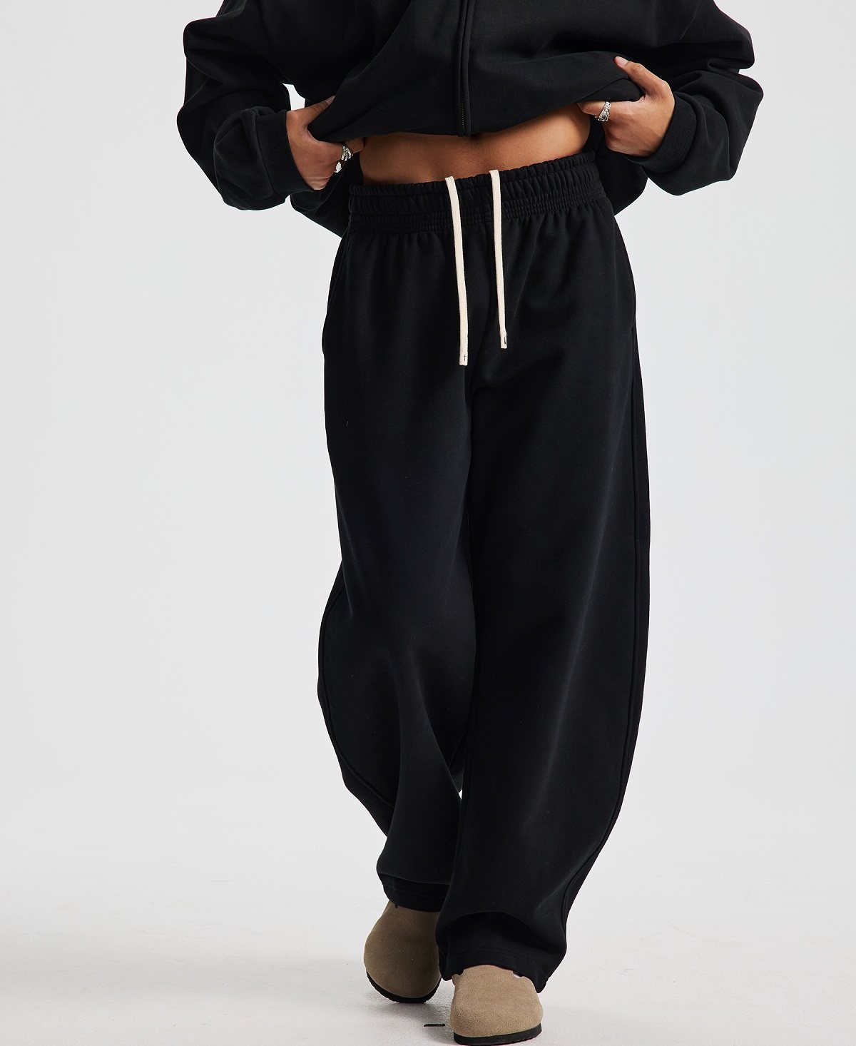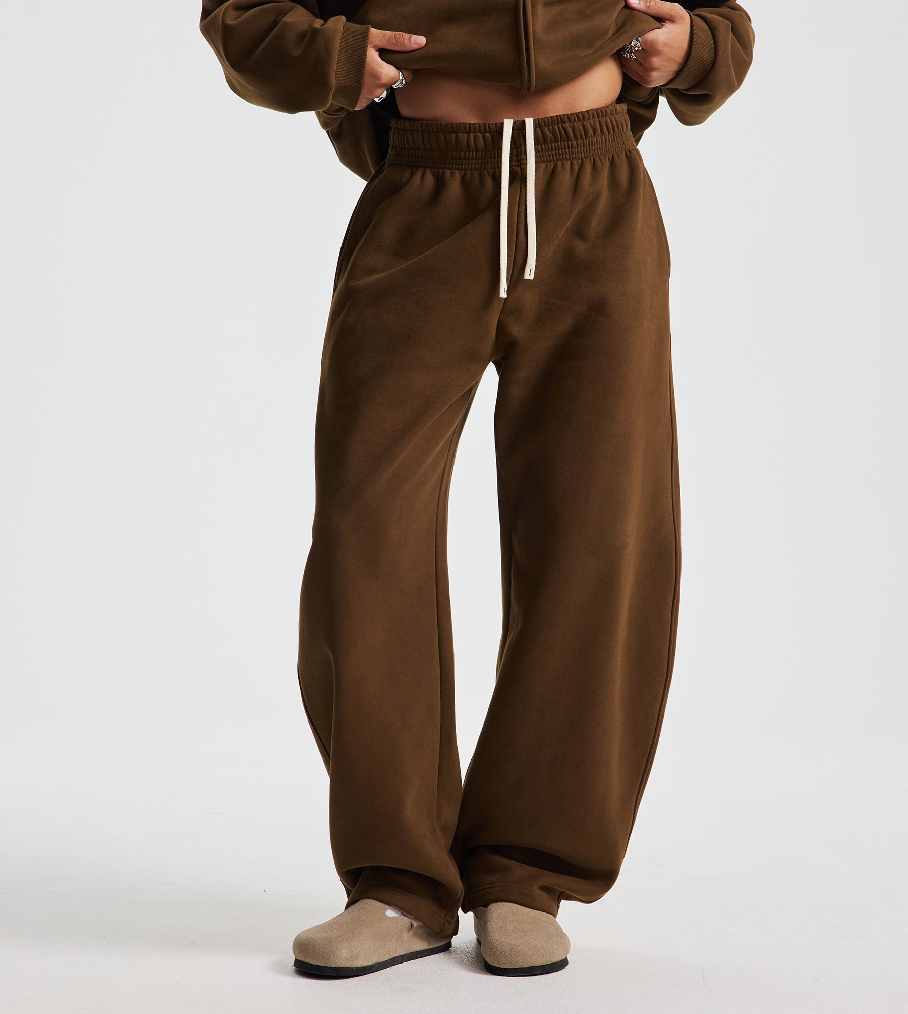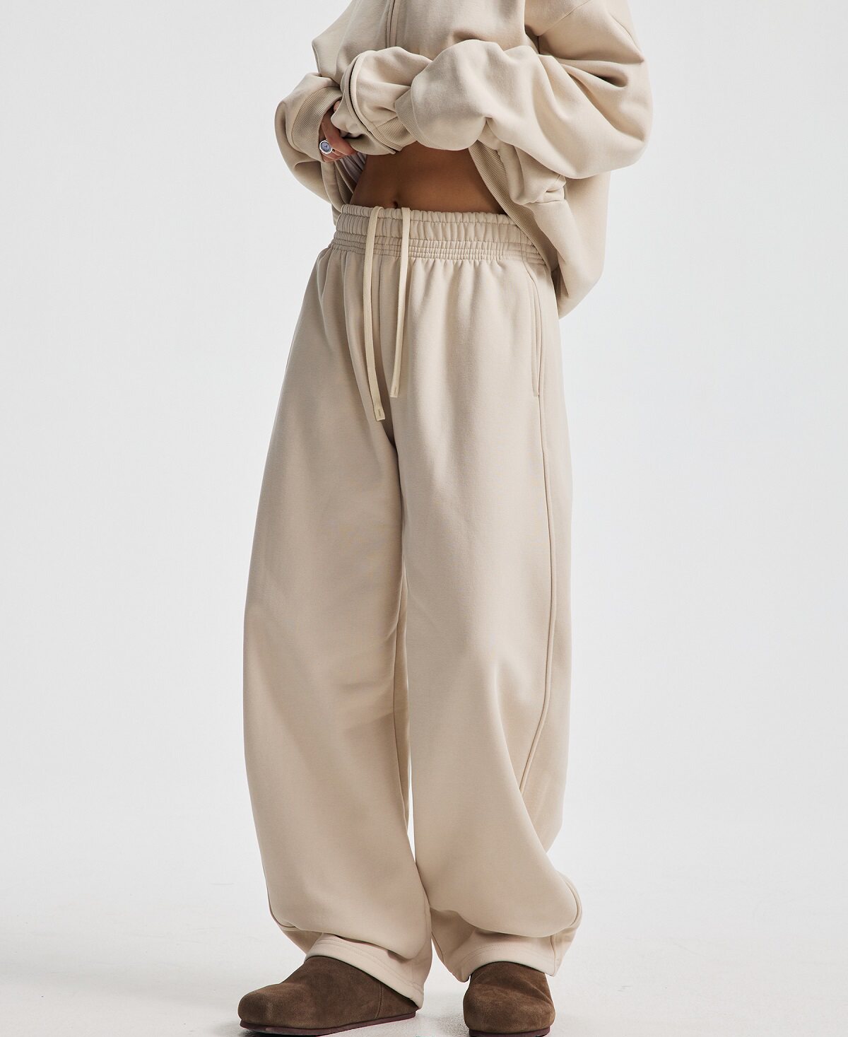 大地色INS430G重磅高街歐美垂感寬鬆彎刀衛褲kanye直筒休閒長褲子