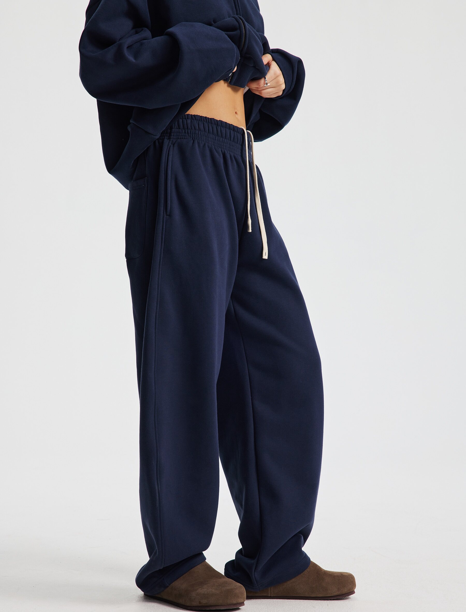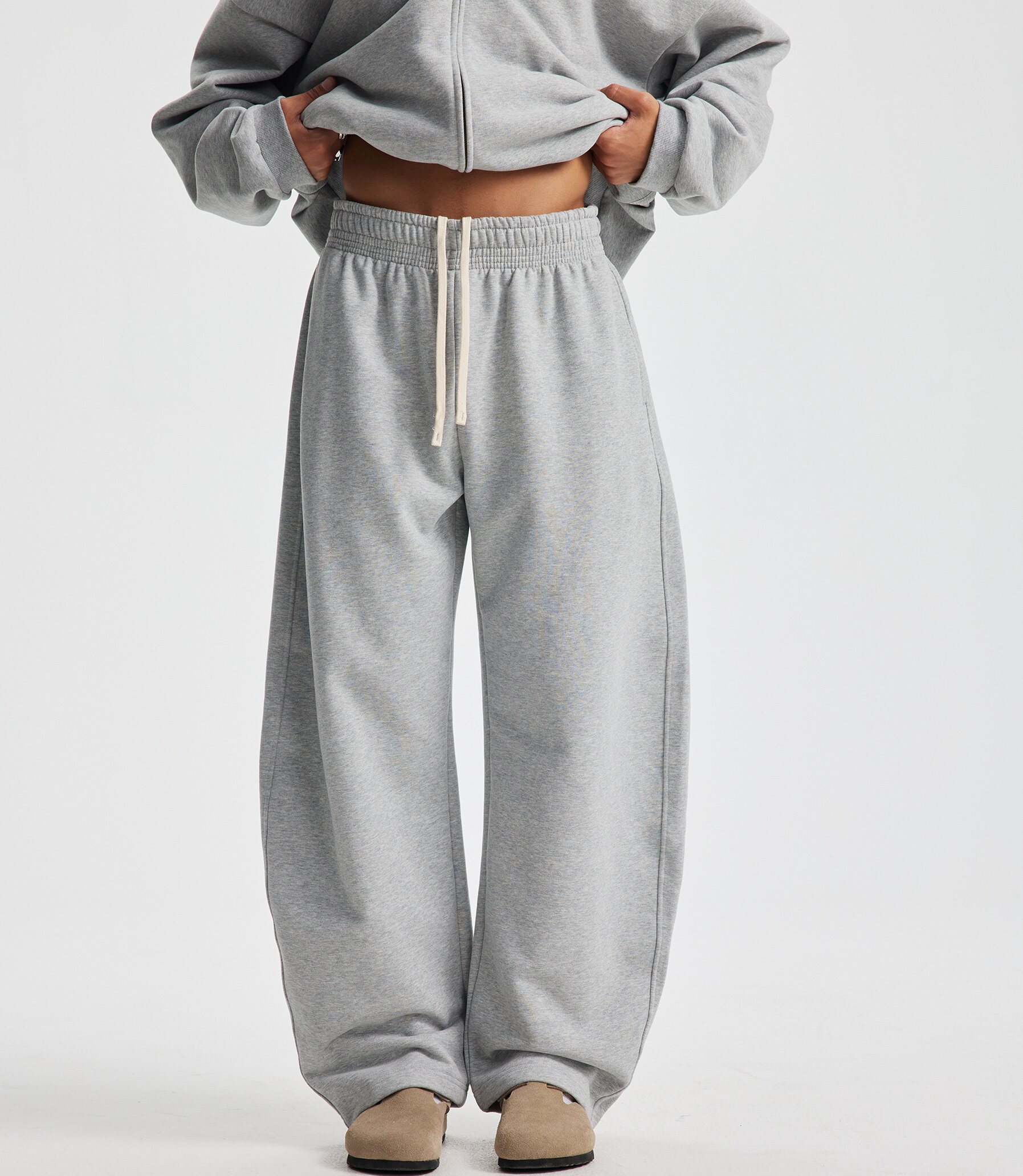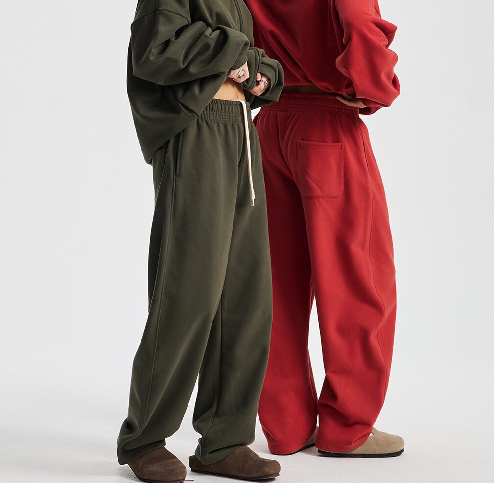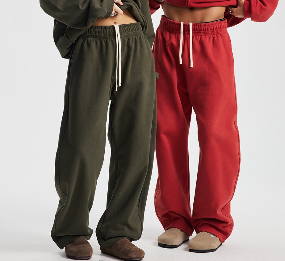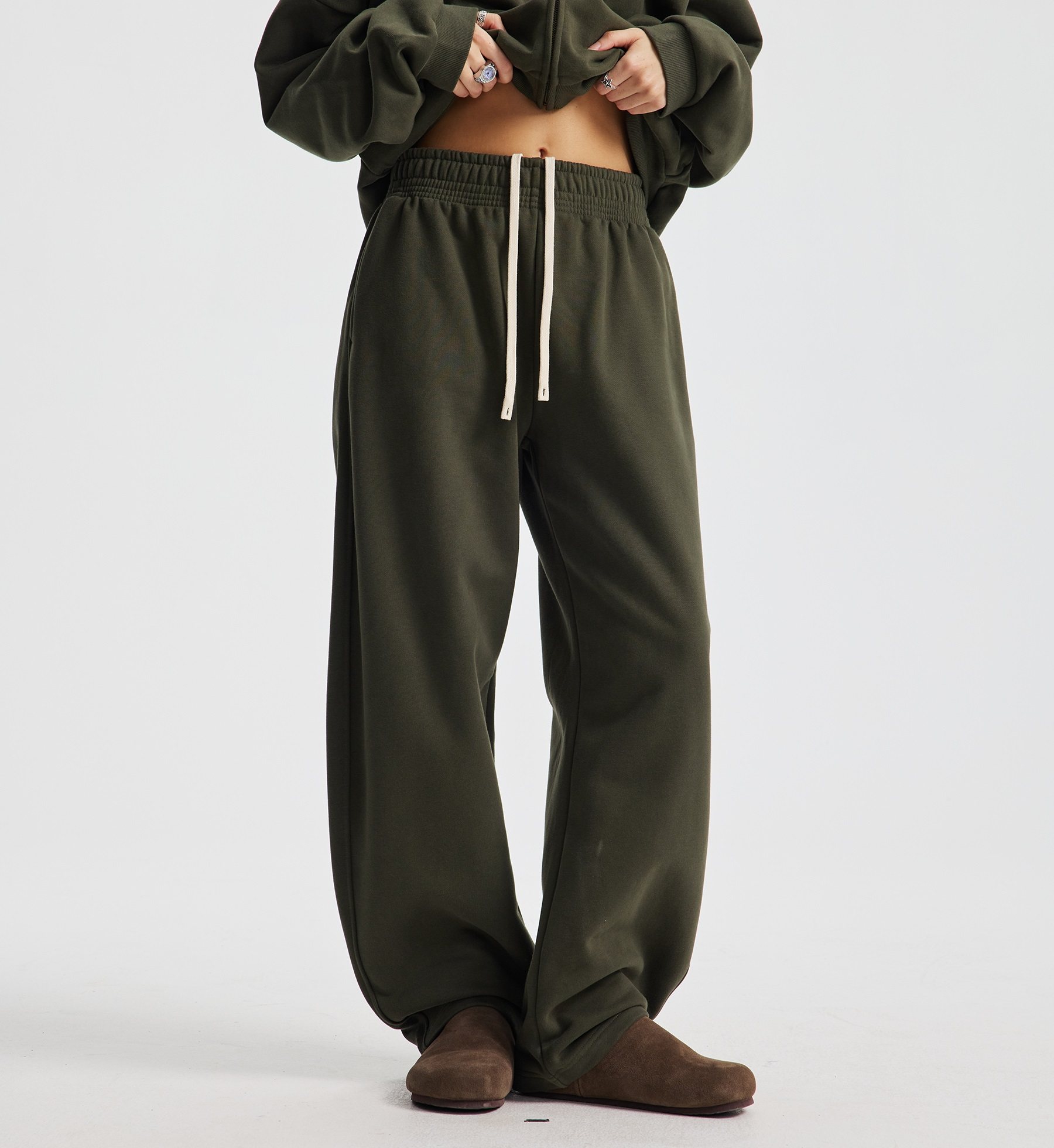 大地色INS430G重磅高街歐美垂感寬鬆彎刀衛褲kanye直筒休閒長褲子