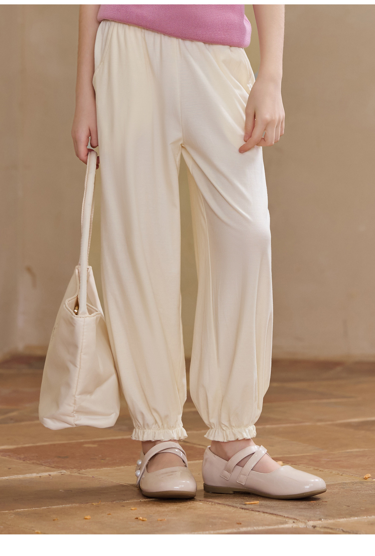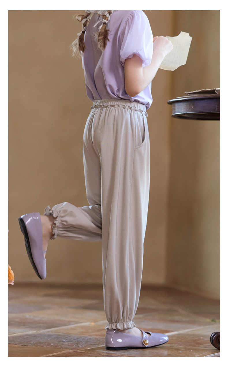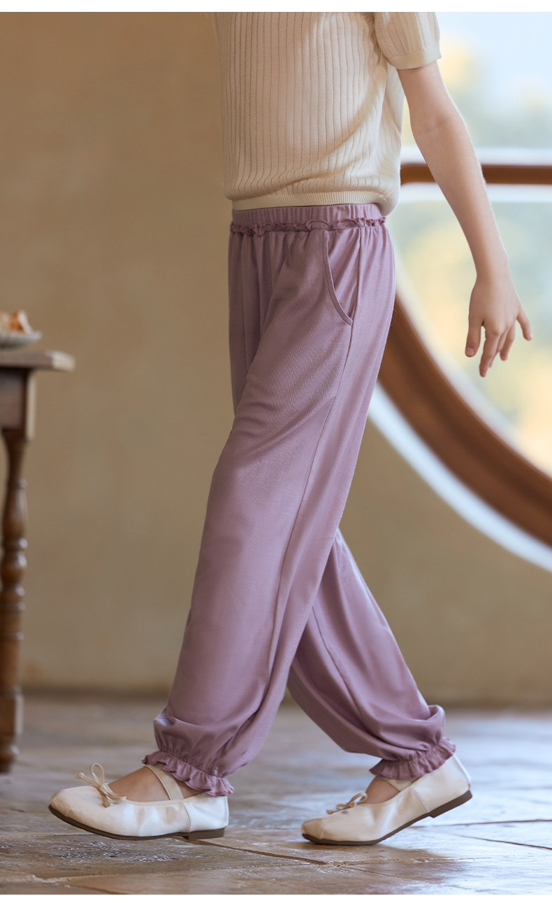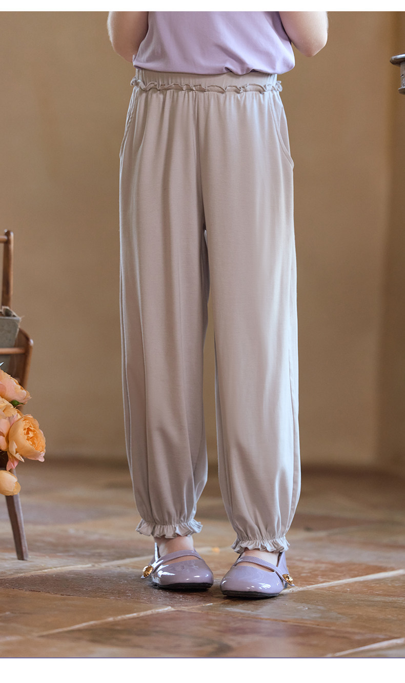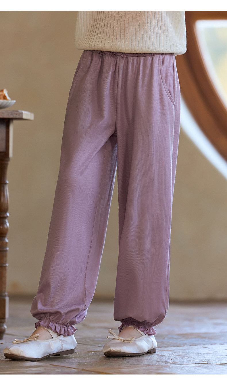 Little Naive女童休閒褲春秋新款木耳邊防蚊褲兒童寬鬆運動束腳褲
