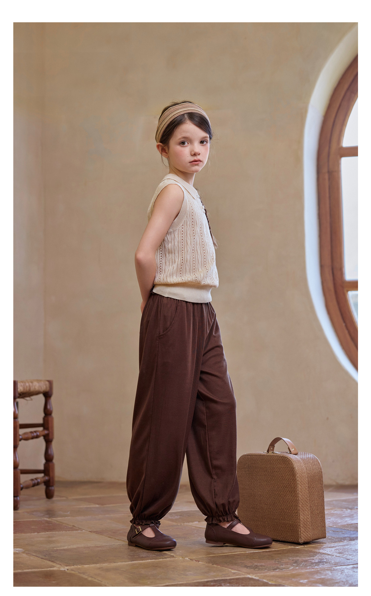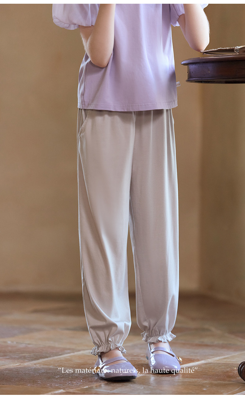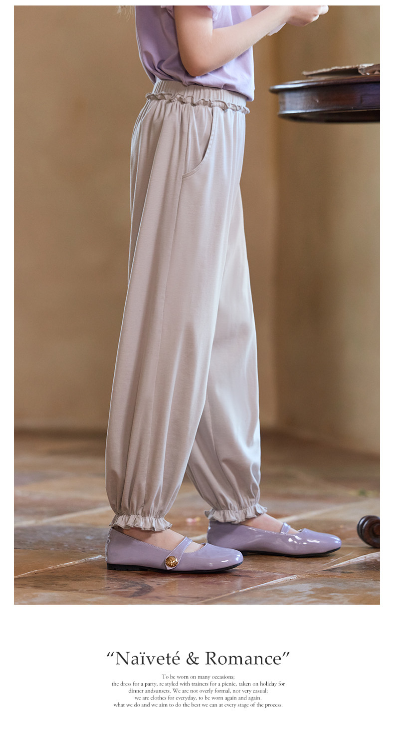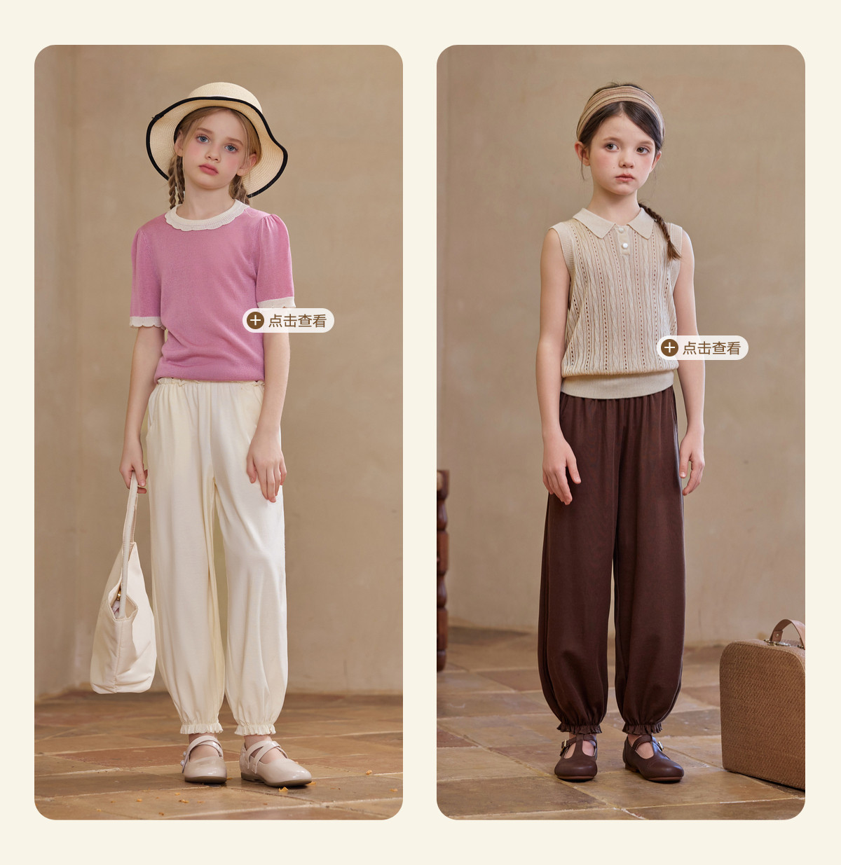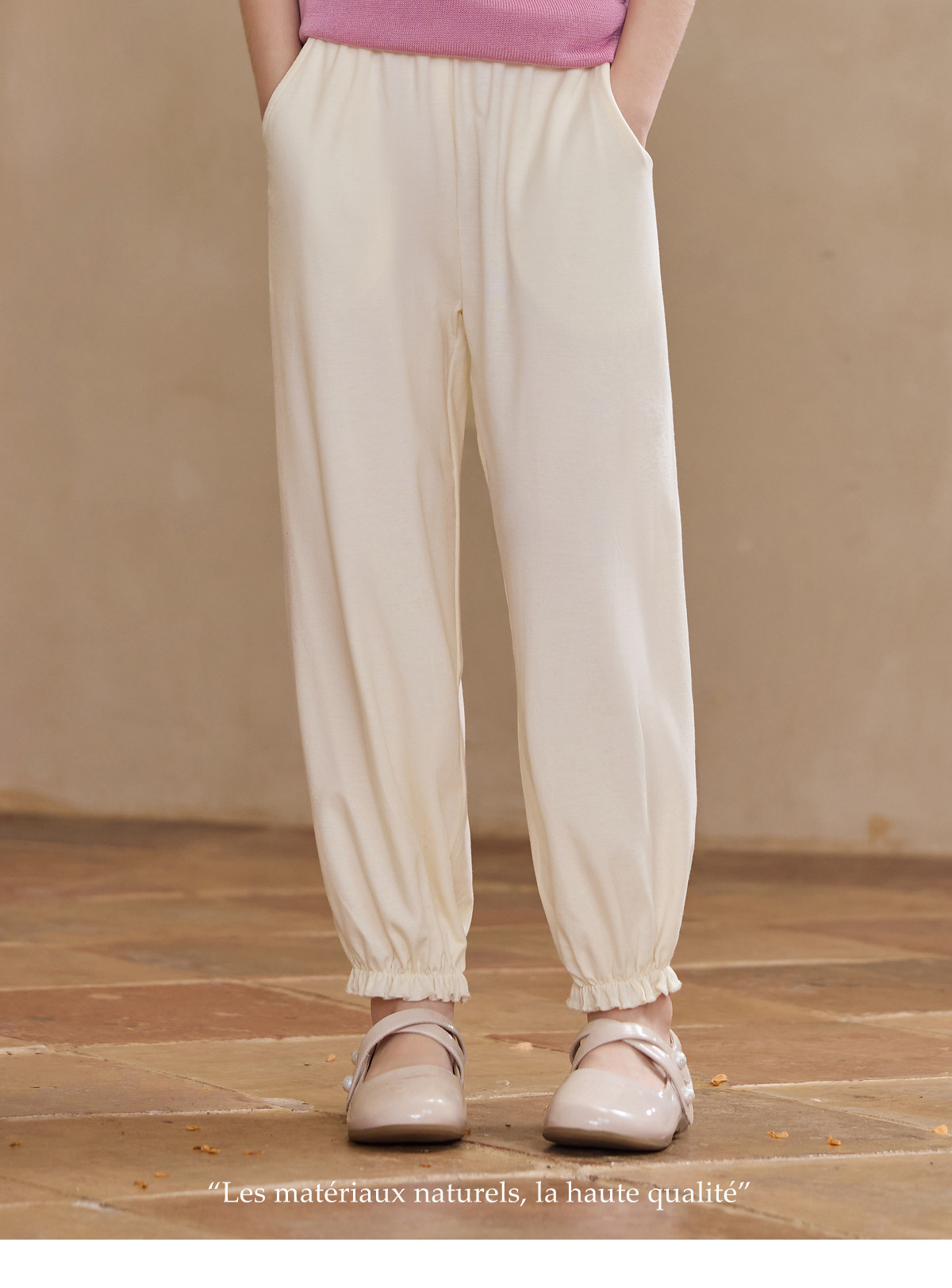 Little Naive女童休閒褲春秋新款木耳邊防蚊褲兒童寬鬆運動束腳褲