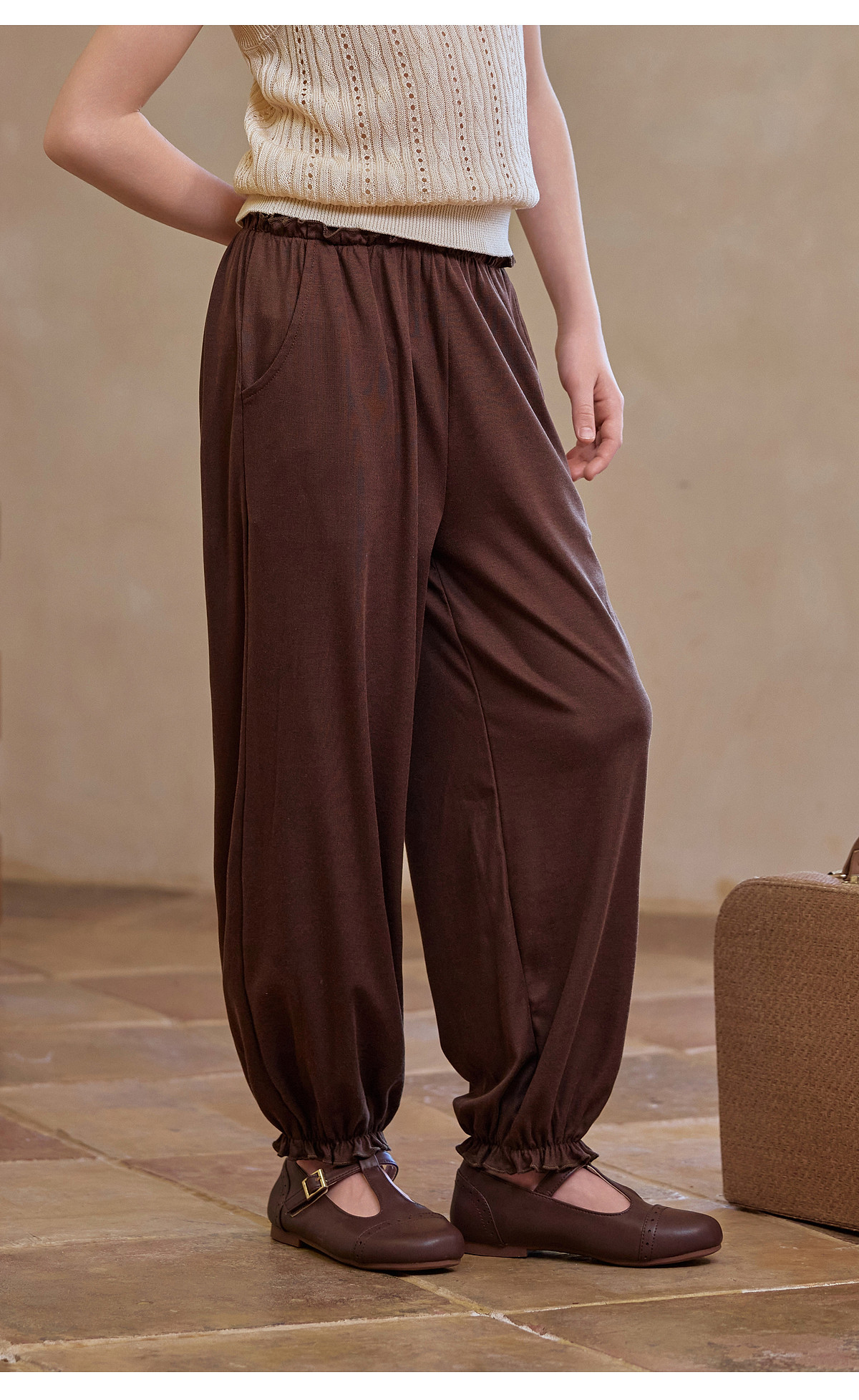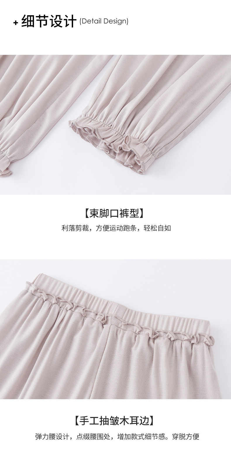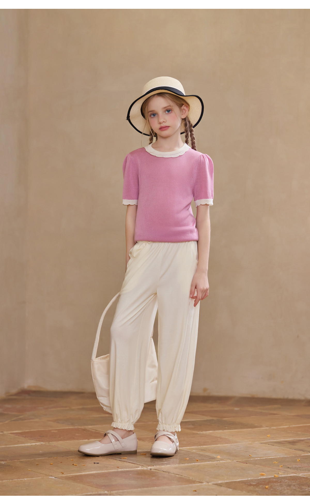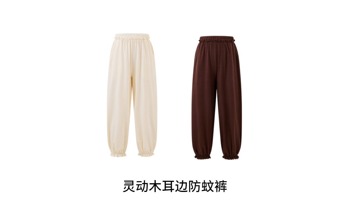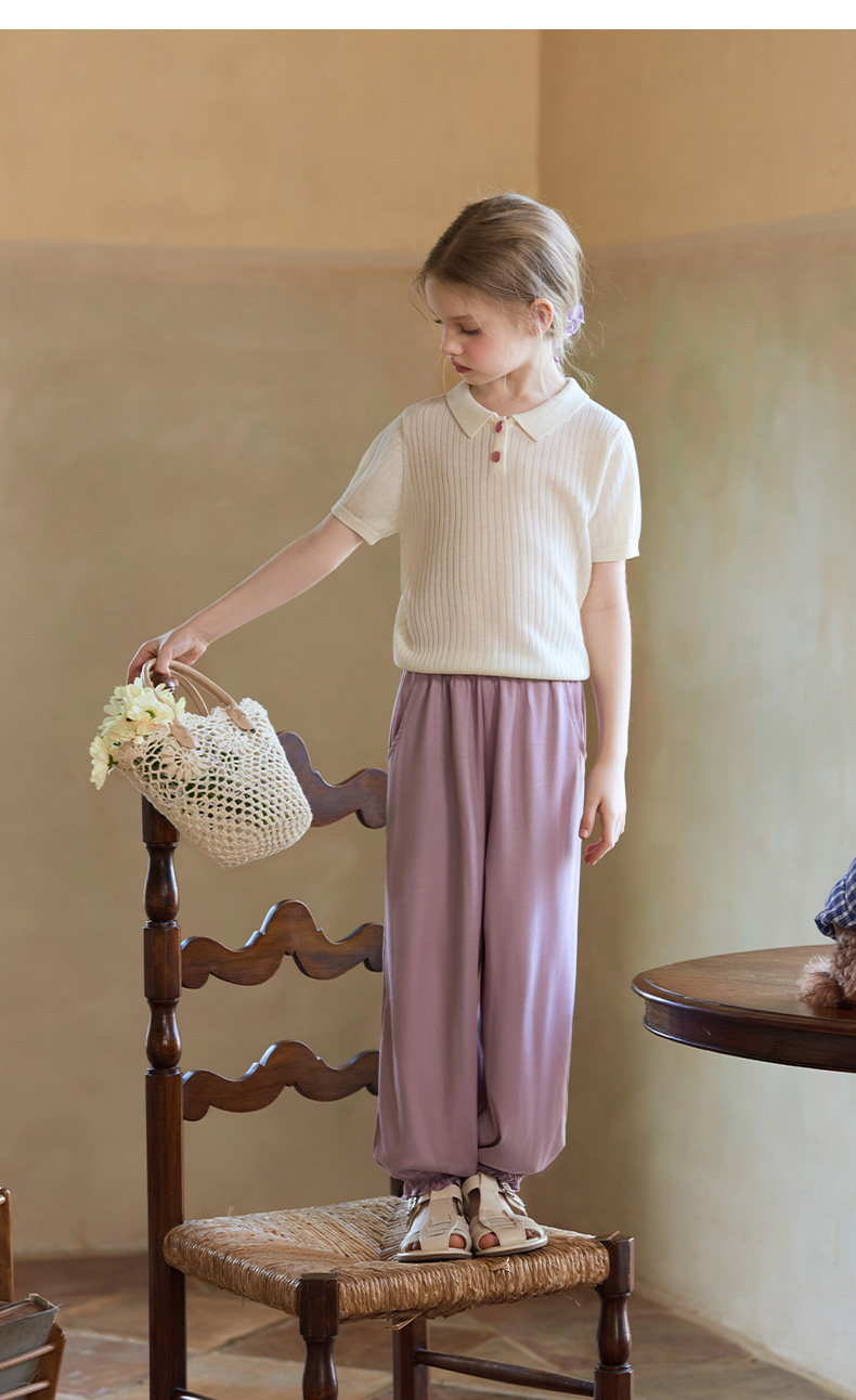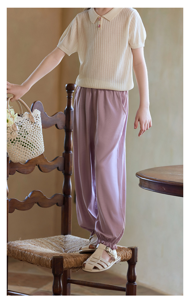 Little Naive女童休閒褲春秋新款木耳邊防蚊褲兒童寬鬆運動束腳褲