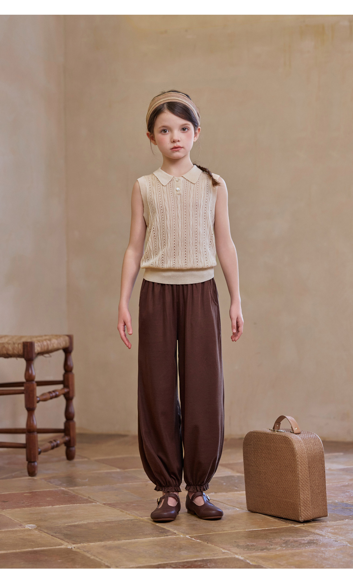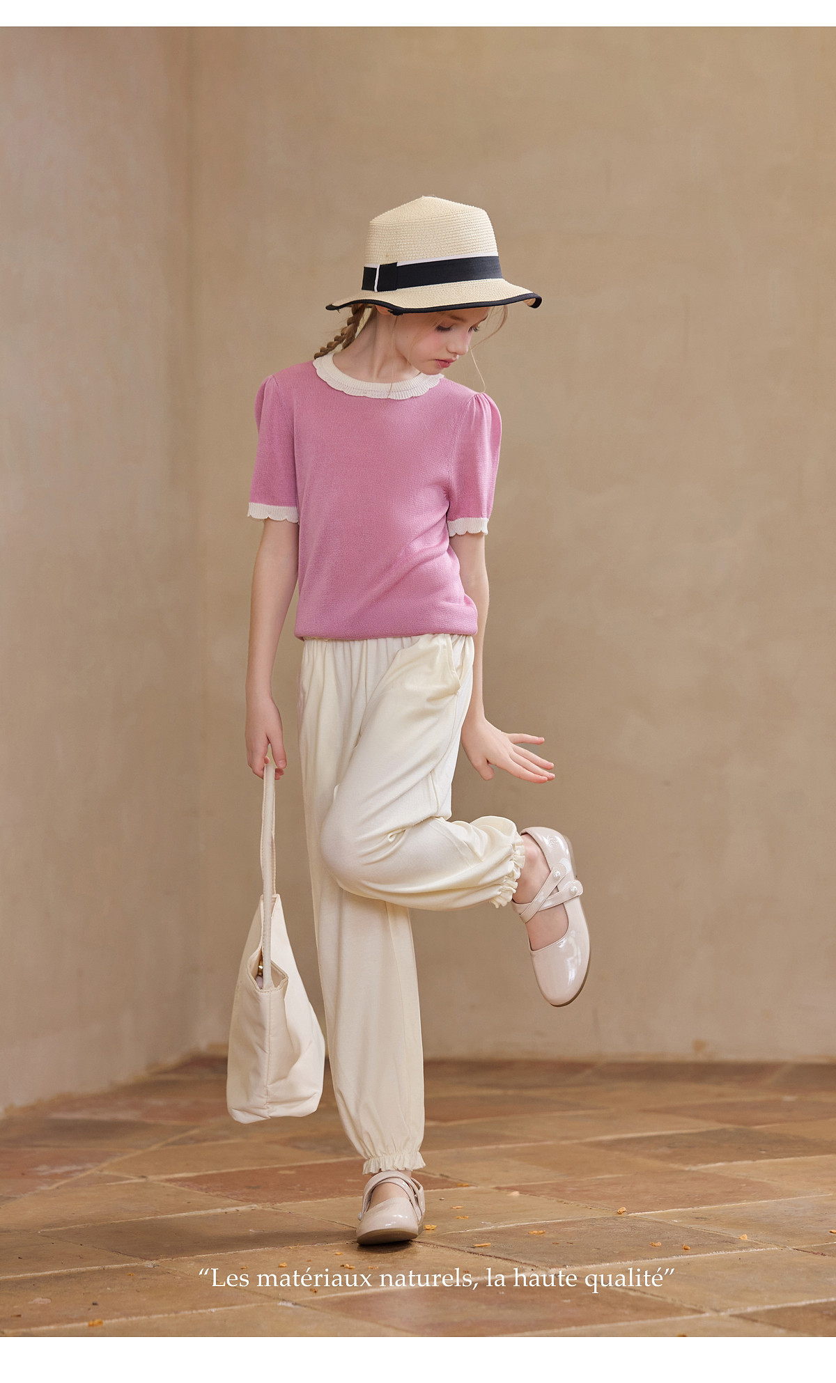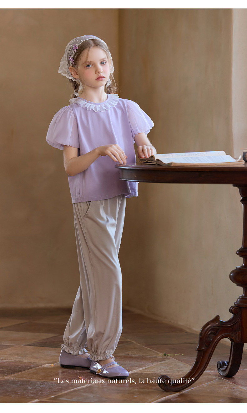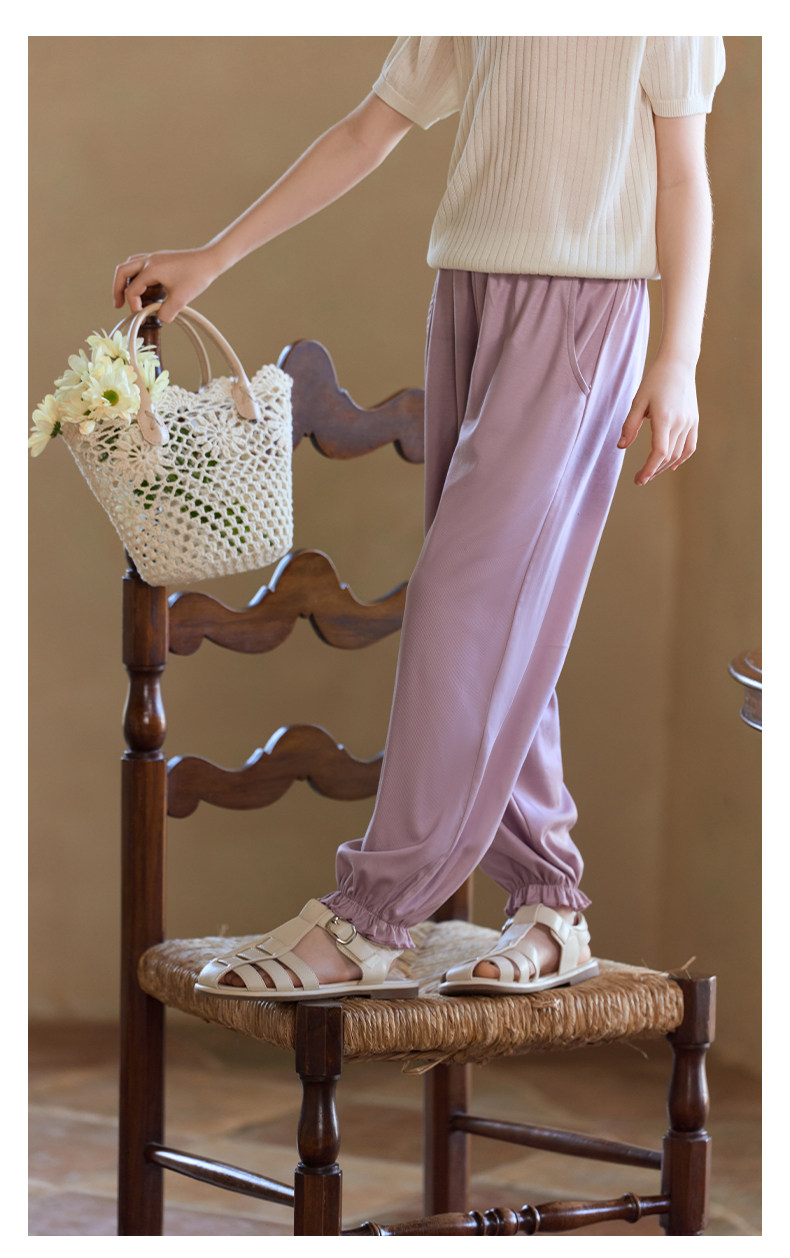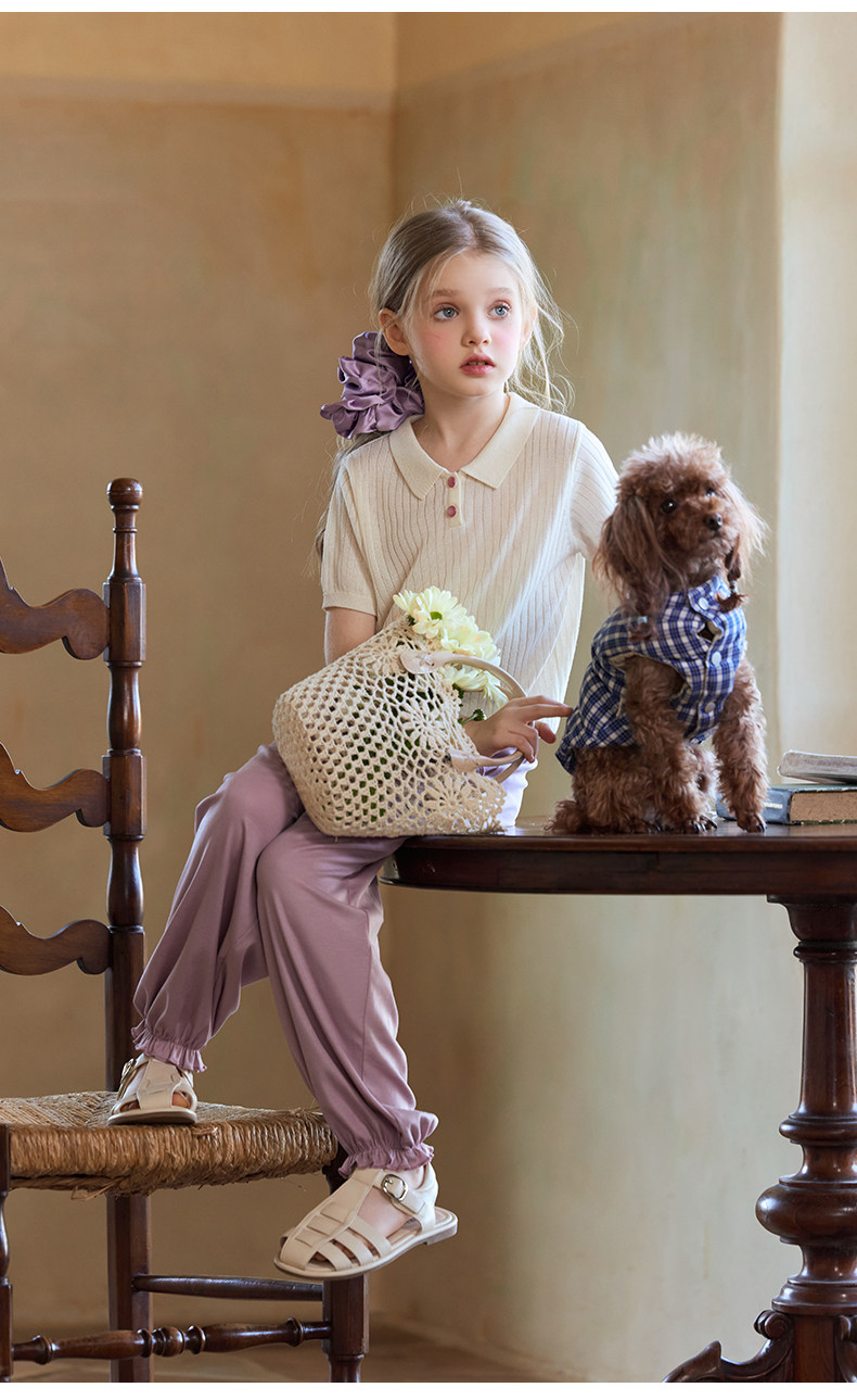 Little Naive女童休閒褲春秋新款木耳邊防蚊褲兒童寬鬆運動束腳褲