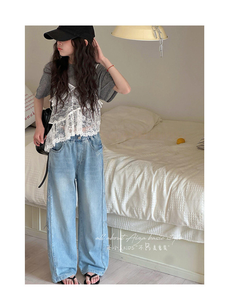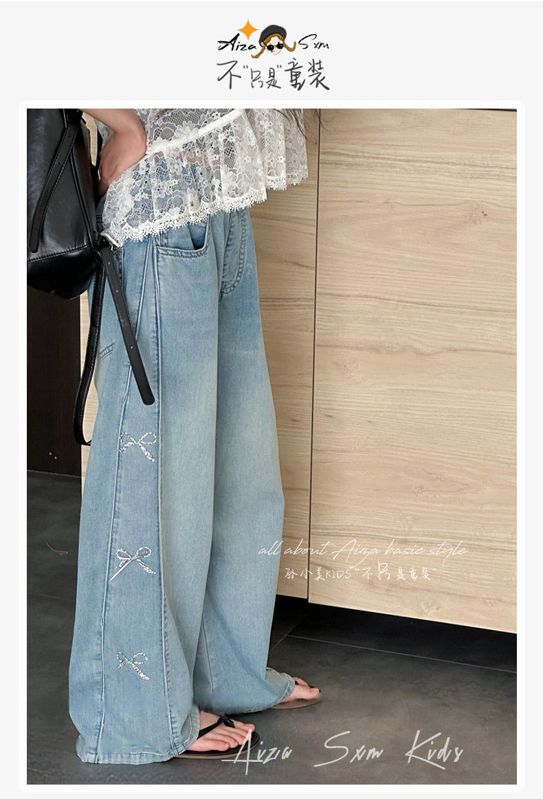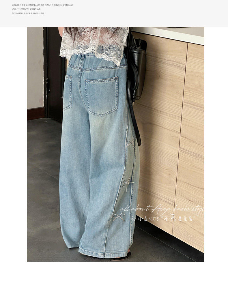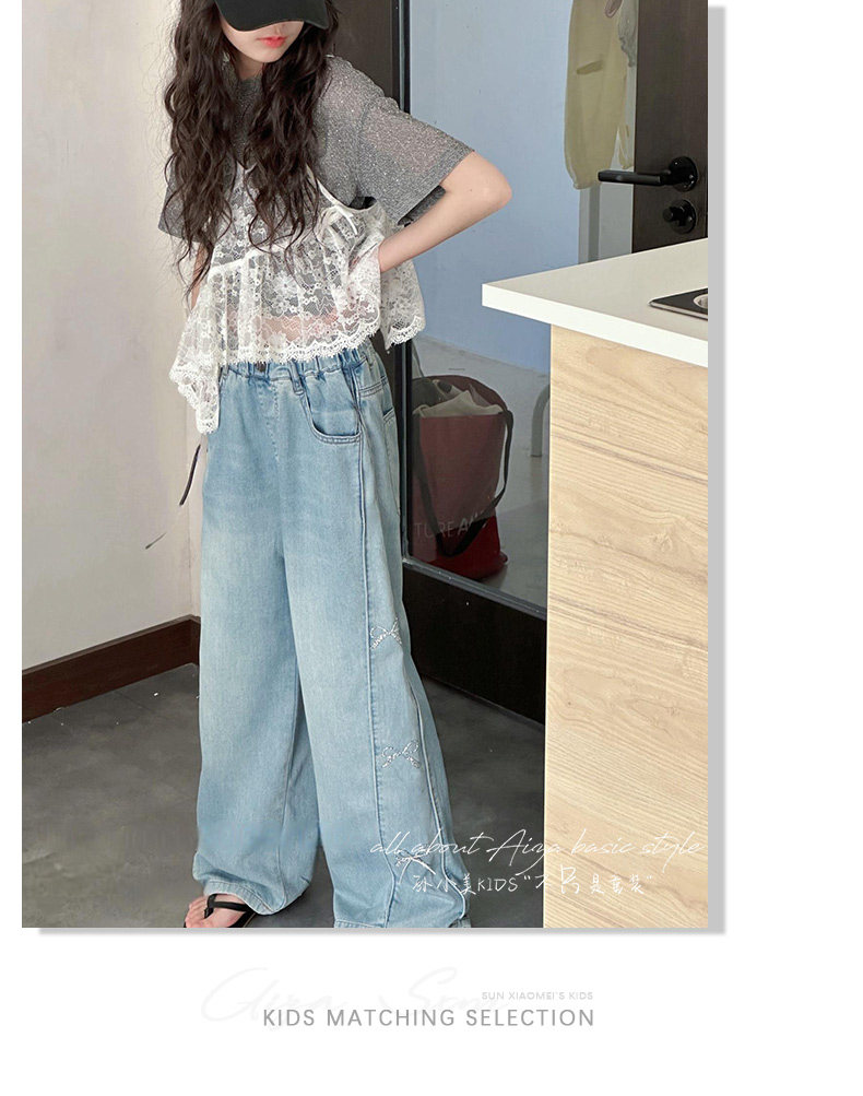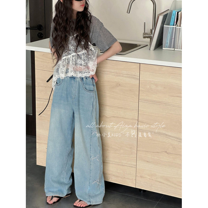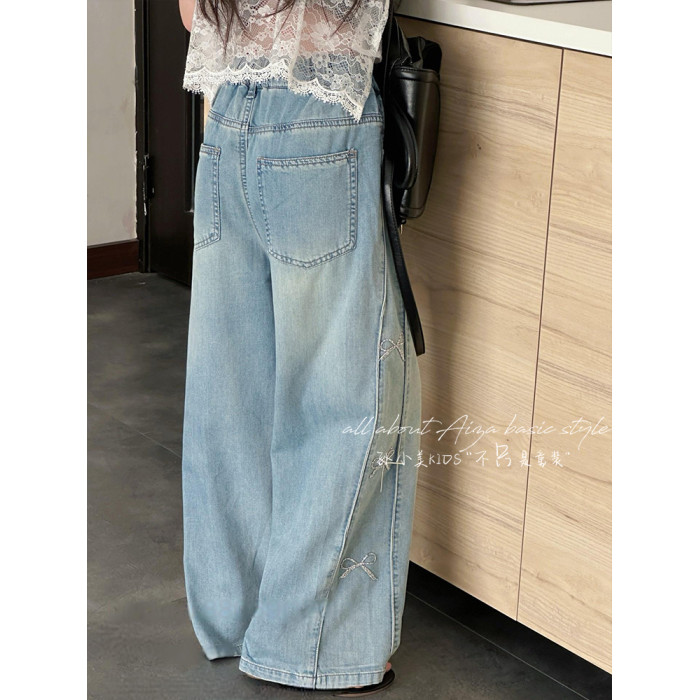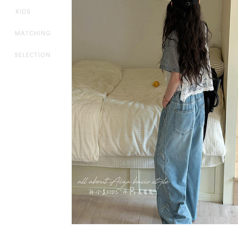 孫小美kids韓系蝴蝶結女童春夏牛仔褲2025夏裝新款兒童濶腿褲子薄