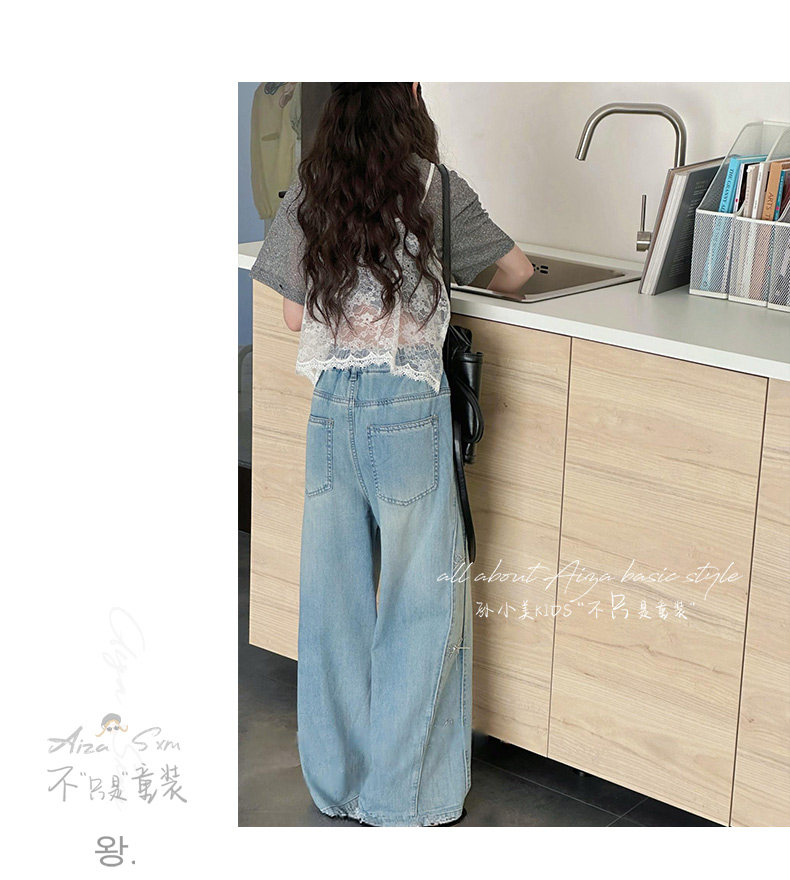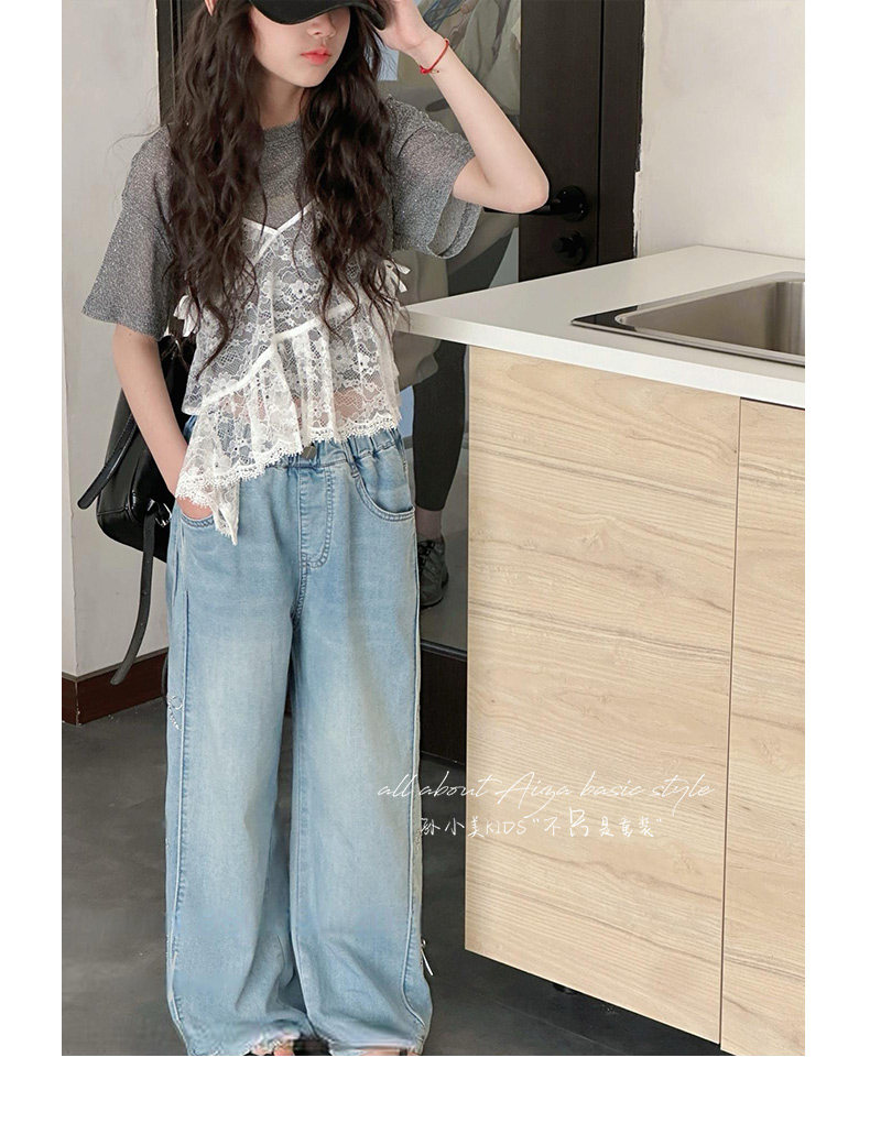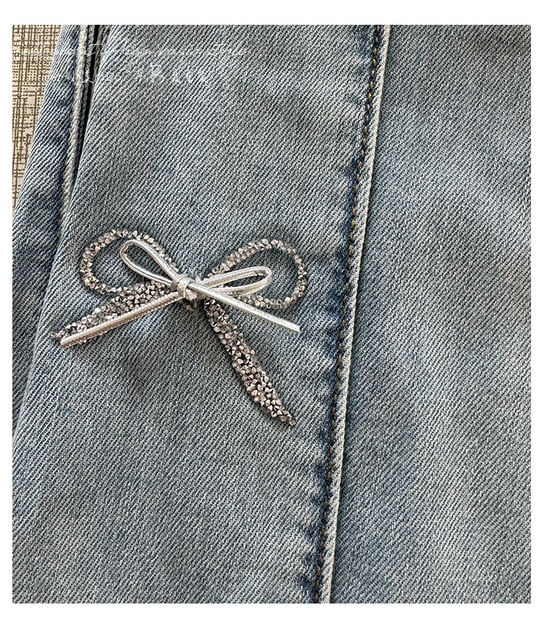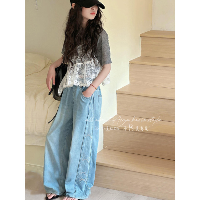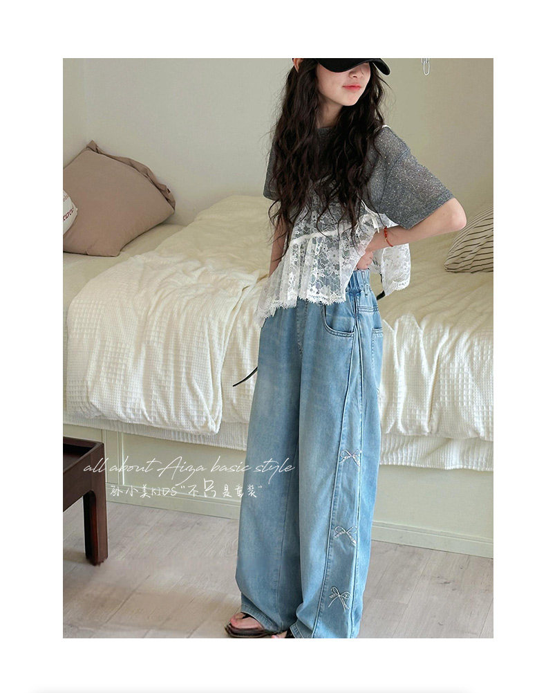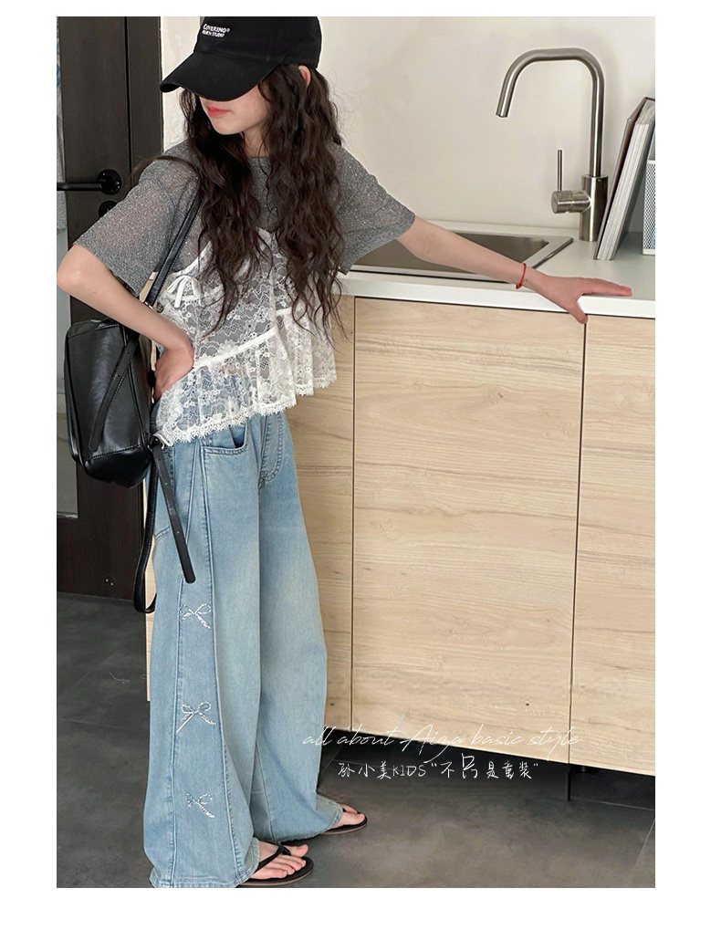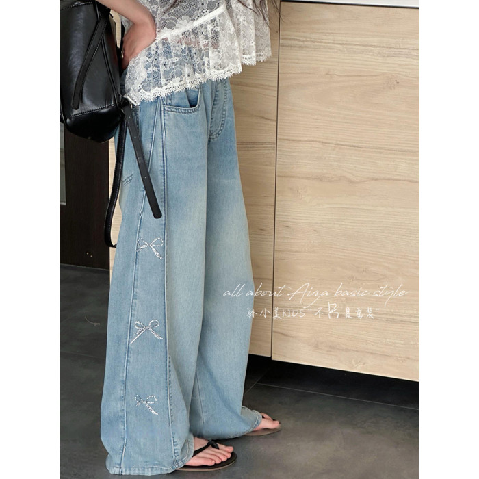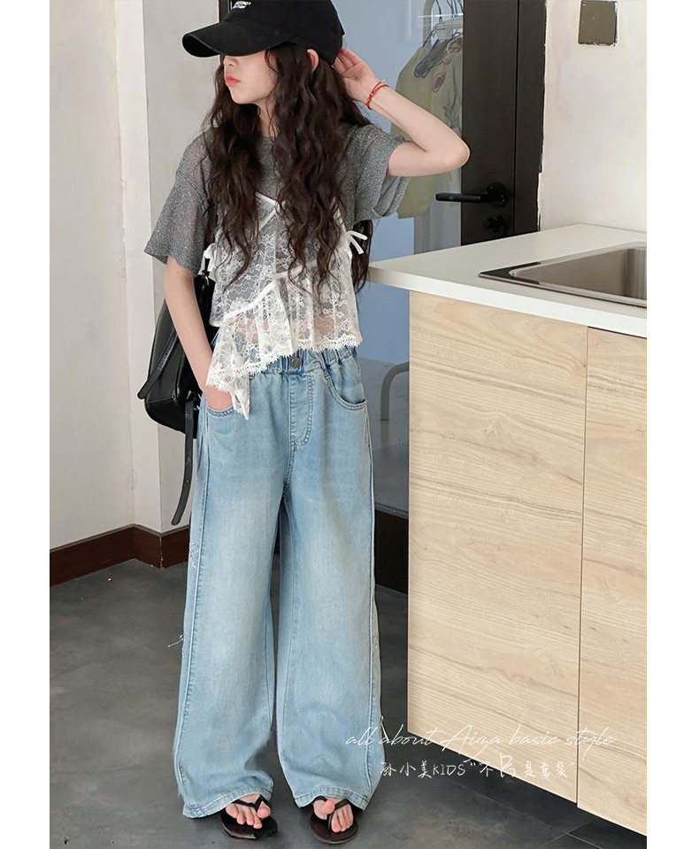 孫小美kids韓系蝴蝶結女童春夏牛仔褲2025夏裝新款兒童濶腿褲子薄