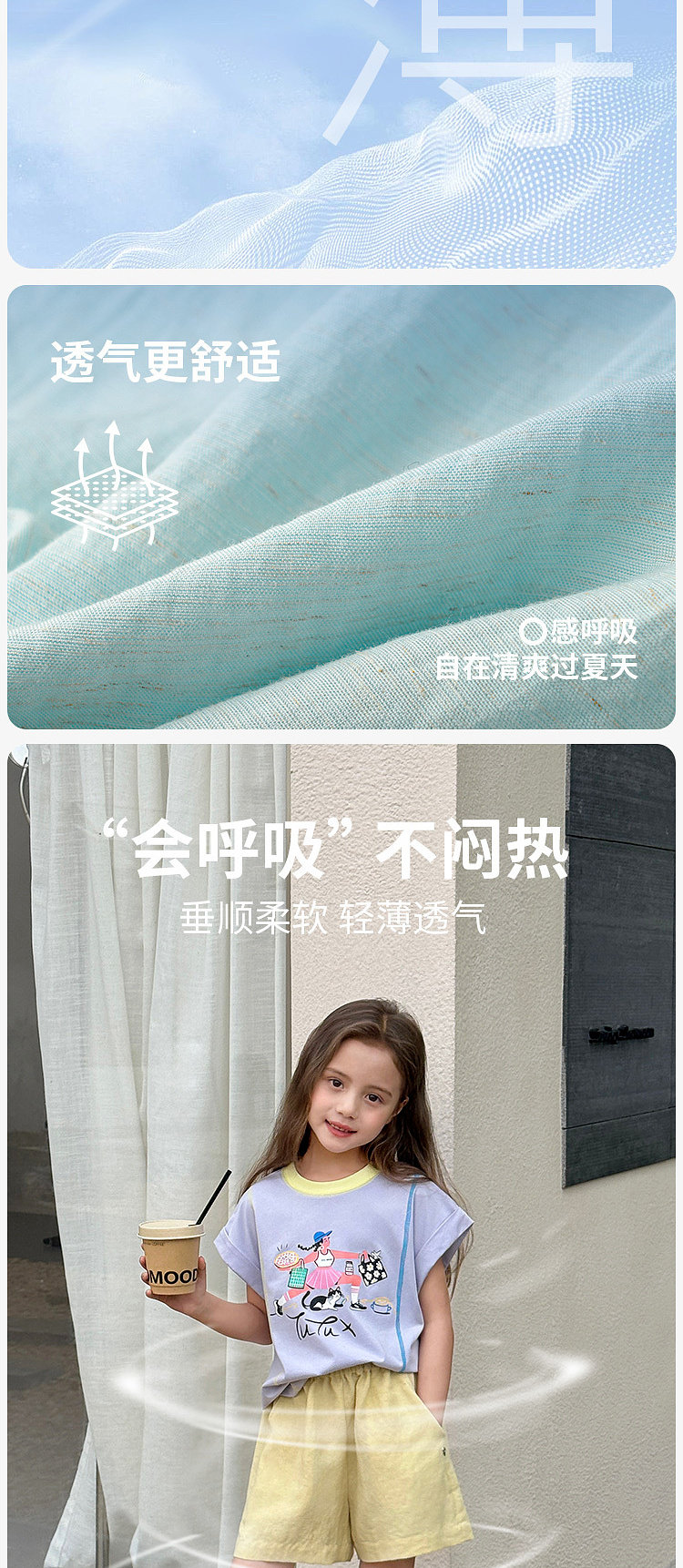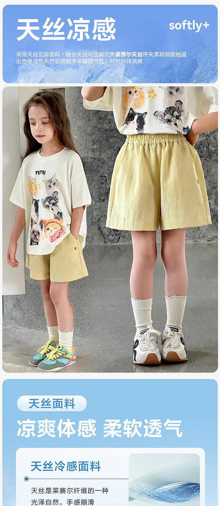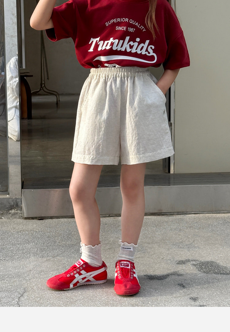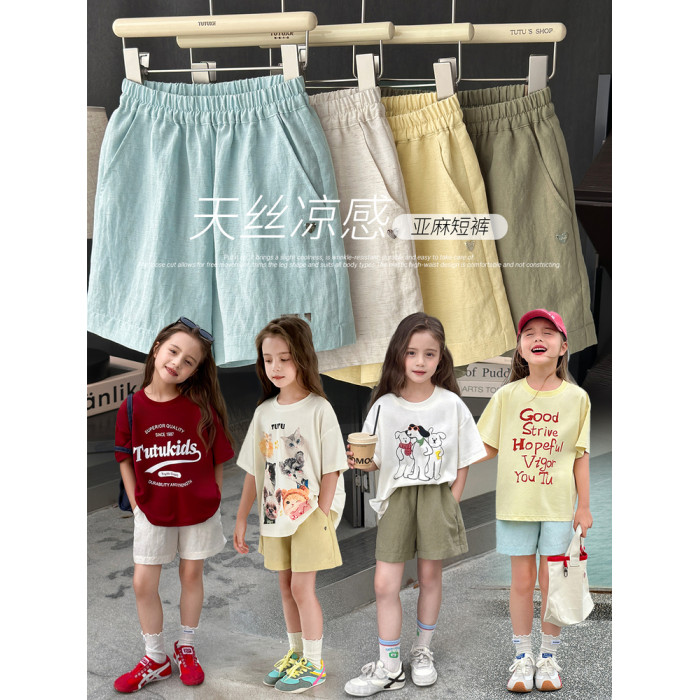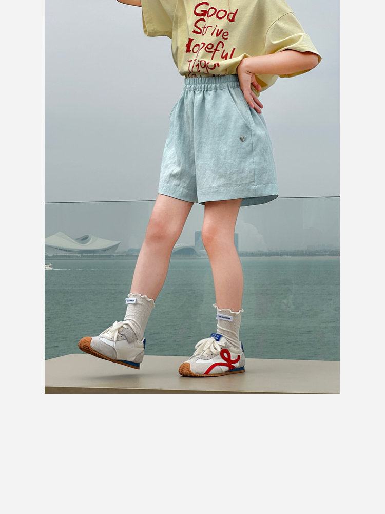 圖圖小象童裝短褲女童2026新款輕薄透氣中大童亞麻冰絲涼感短褲子