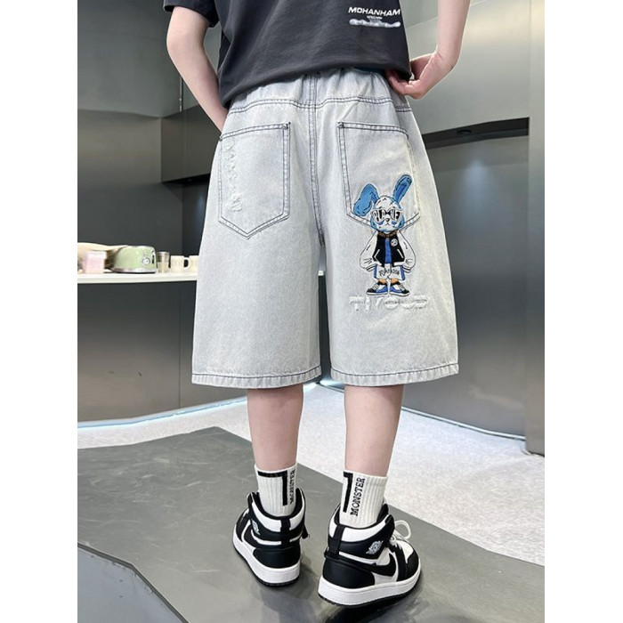 安哼安哼男童牛仔七分褲夏季薄款兒童短褲2025新款中大童破洞中褲