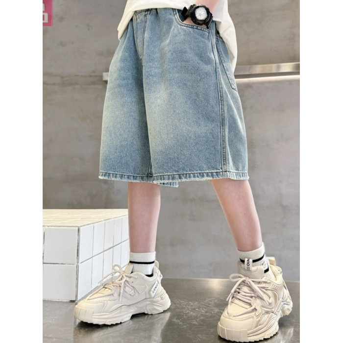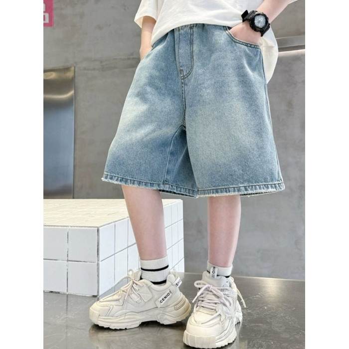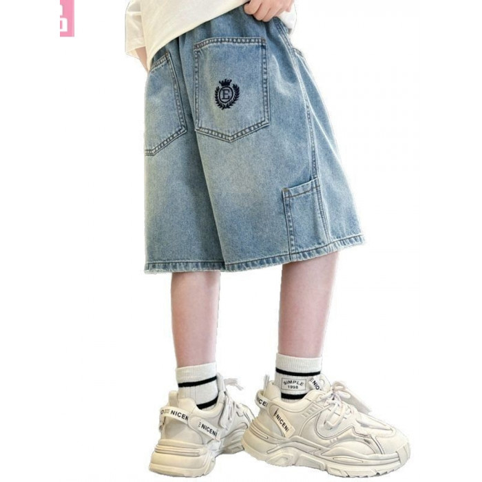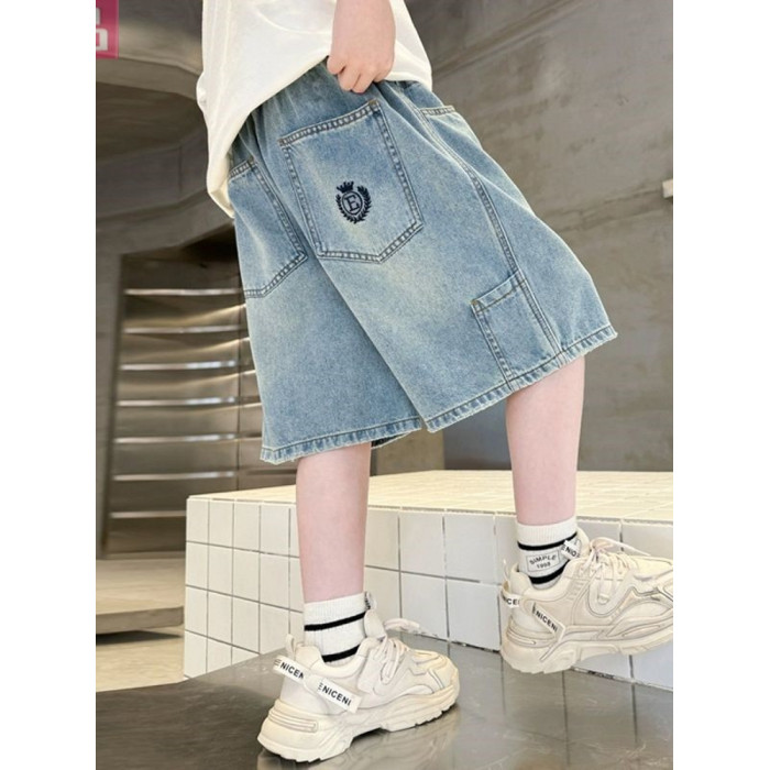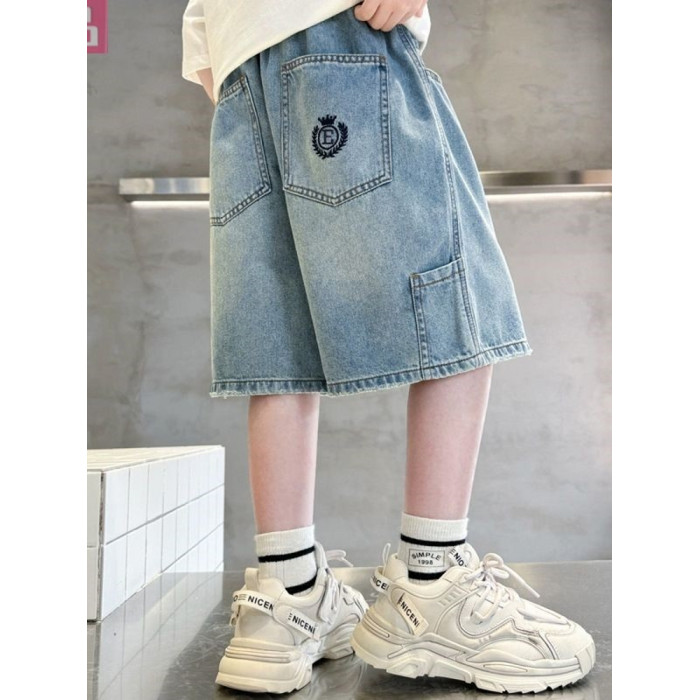 安哼安哼男童夏裝牛仔短褲潮流中大童2025新款兒童裝帥氣男孩刺綉