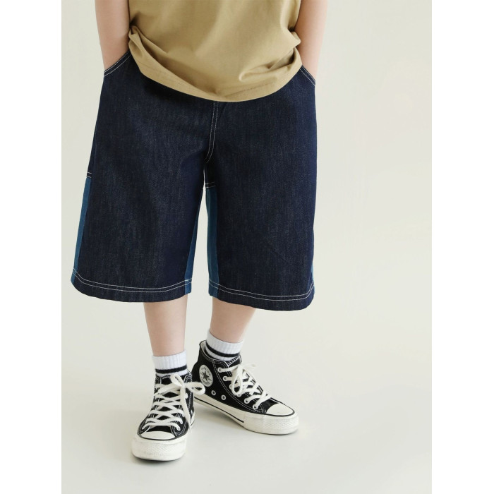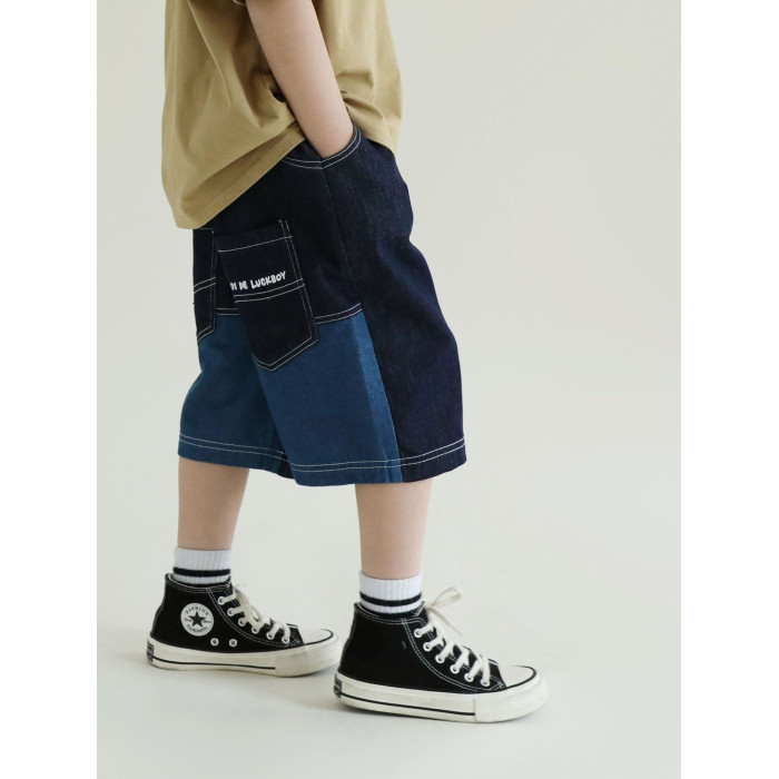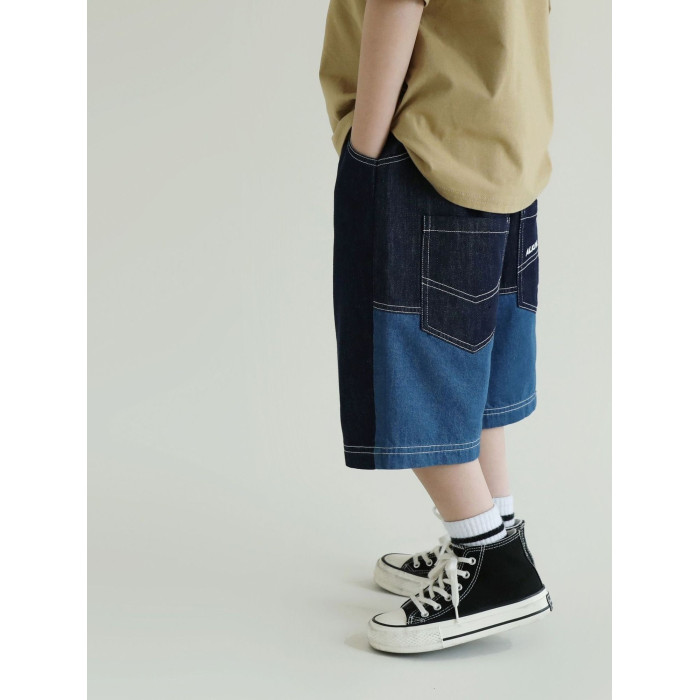 安哼安哼男童短褲個性拼色新款牛仔短褲潮2025夏季男童寬松休閒五
