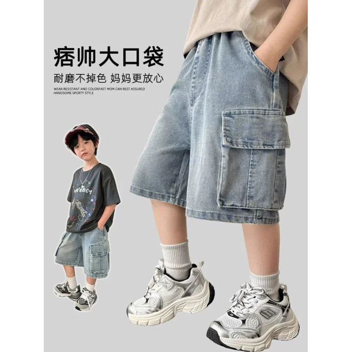 安哼安哼ZG03男童牛仔短褲夏季薄款男孩五分褲兒童休閒中褲夏天中