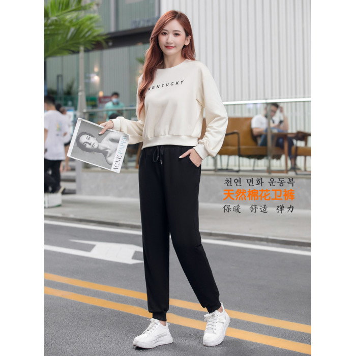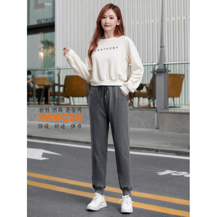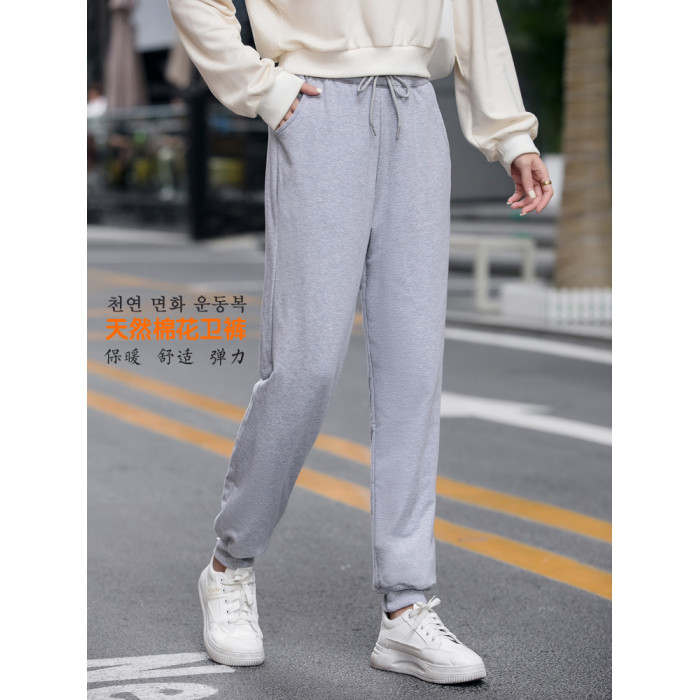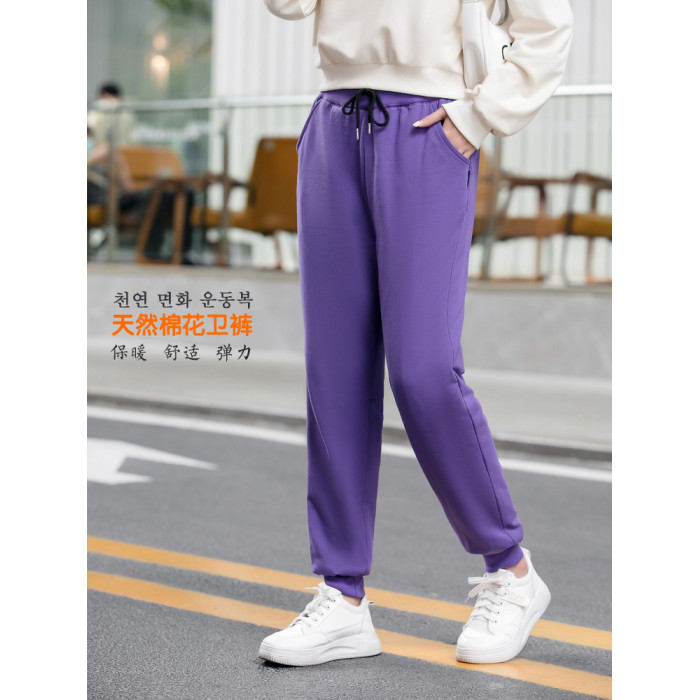 運動褲女加厚秋冬季天然新疆手工棉花褲衛褲寬松休閒高腰束腳外穿