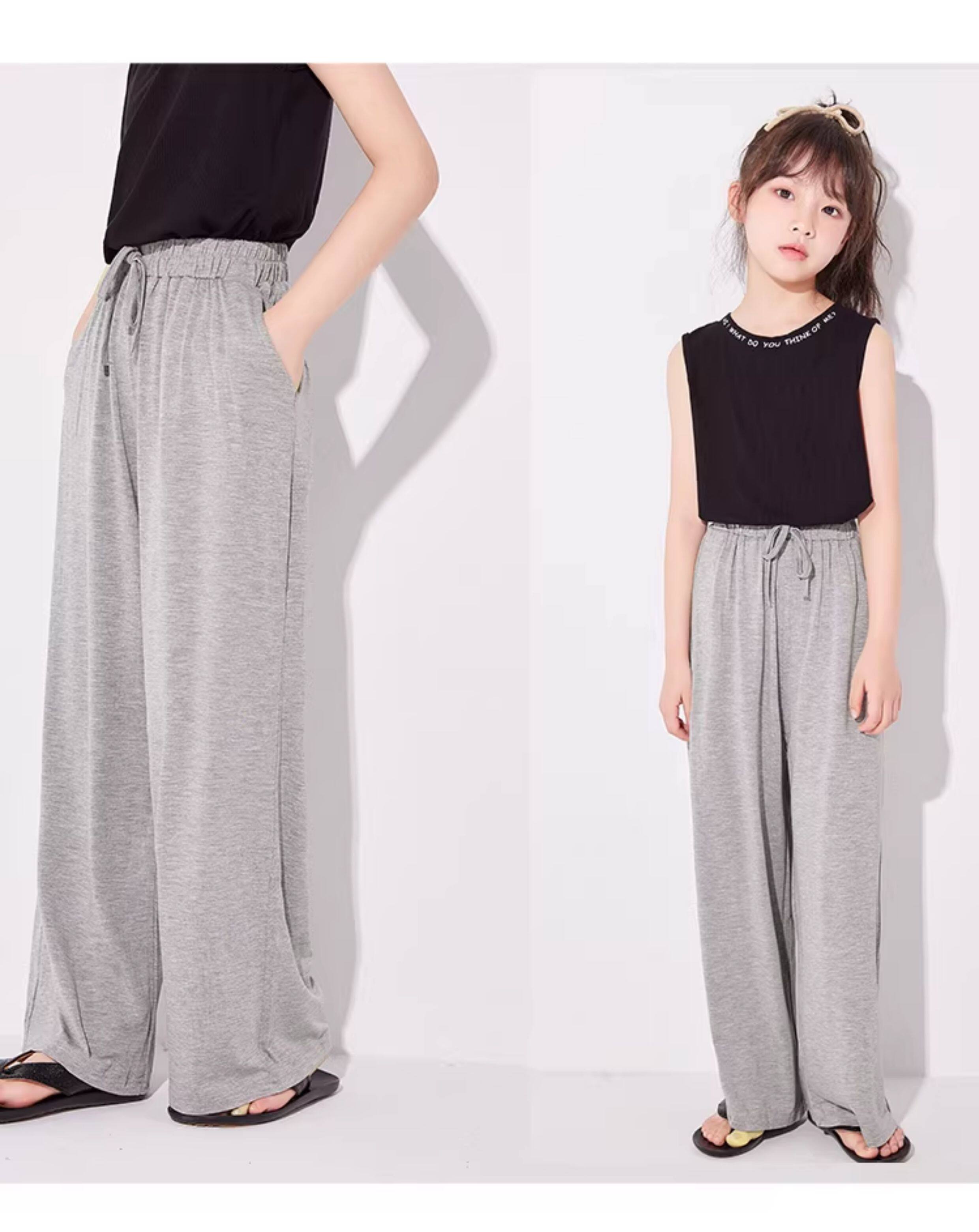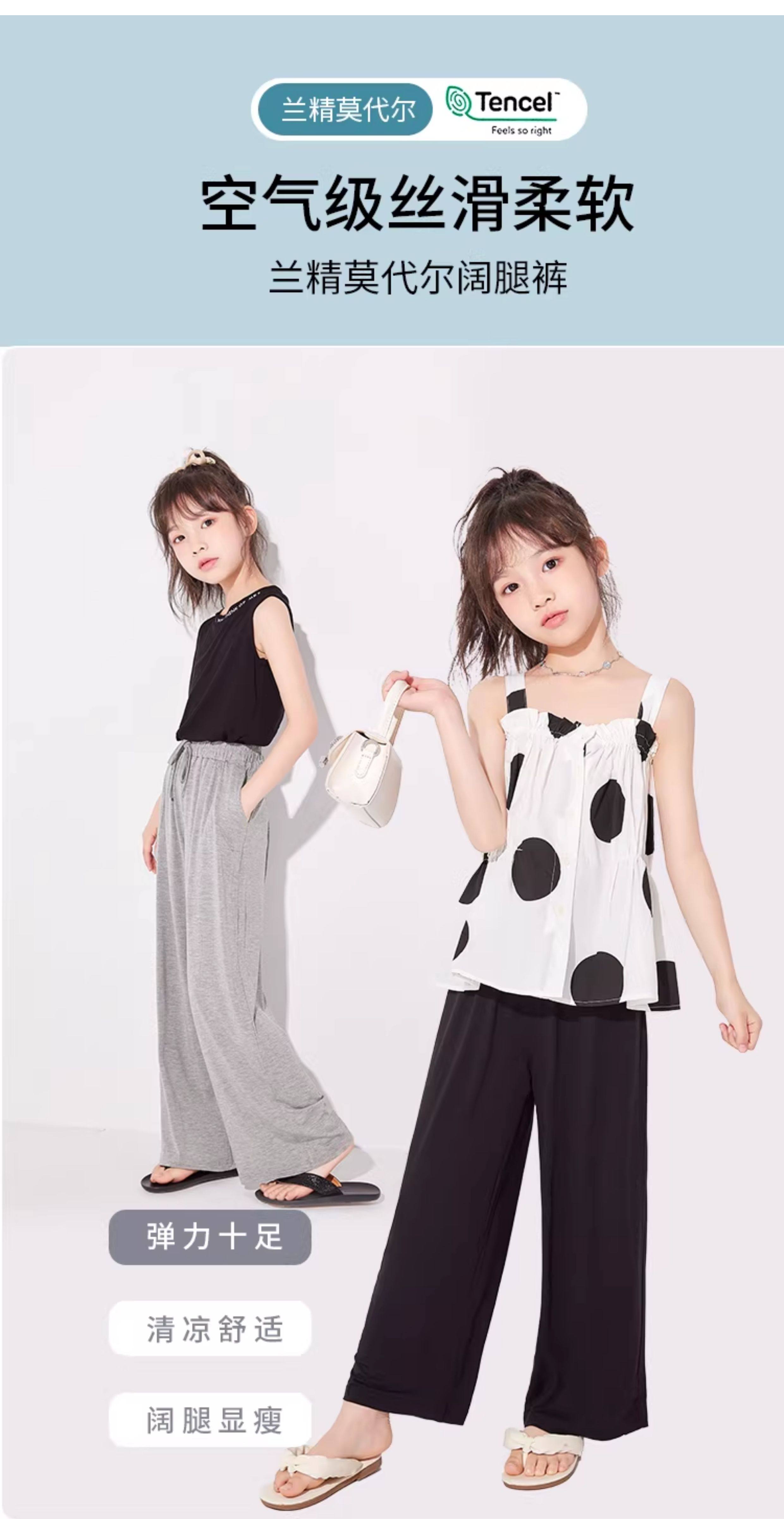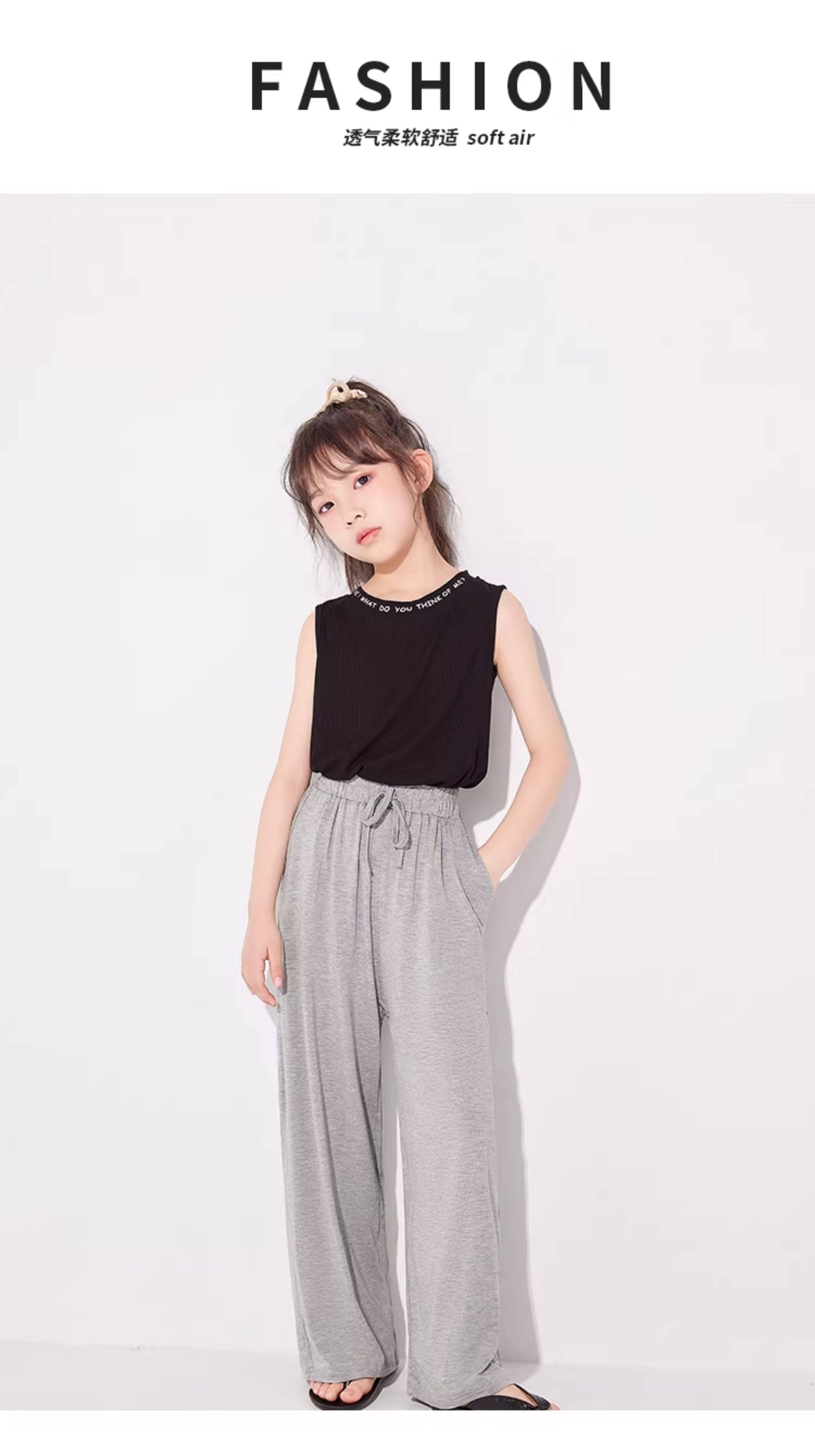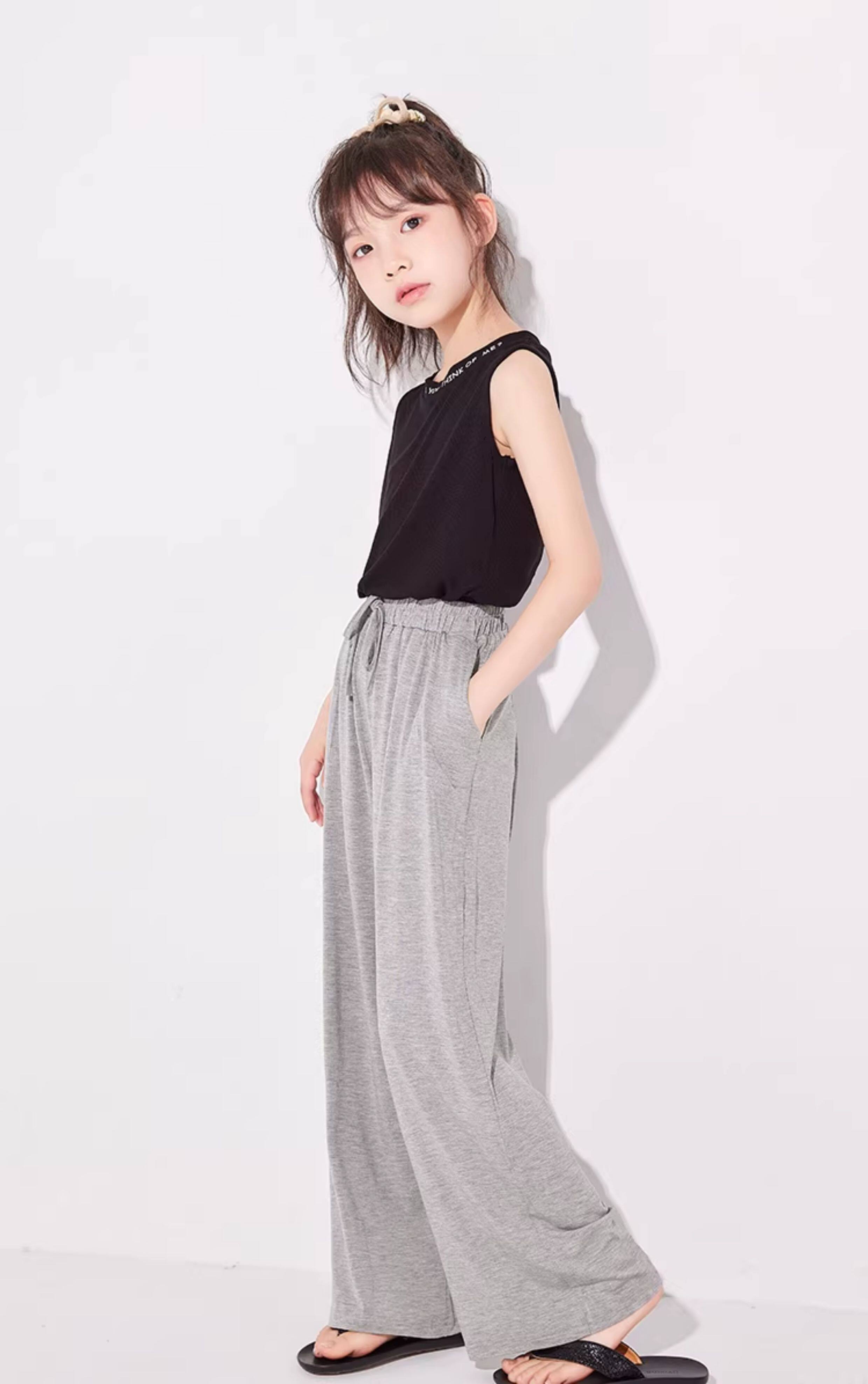 女童莫代爾濶腿褲夏季2026新款兒童冰絲褲子春秋薄款大童休閒褲灰
