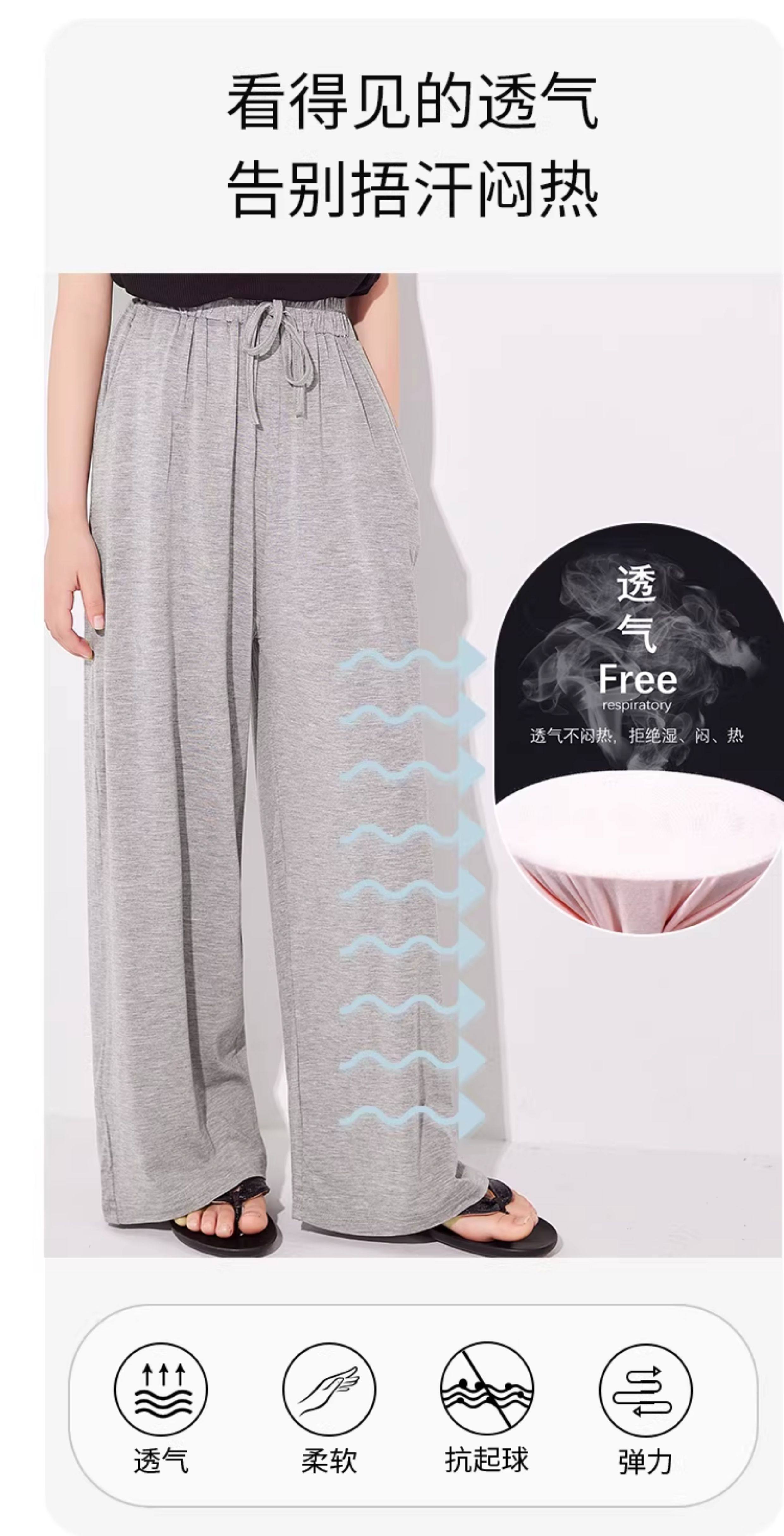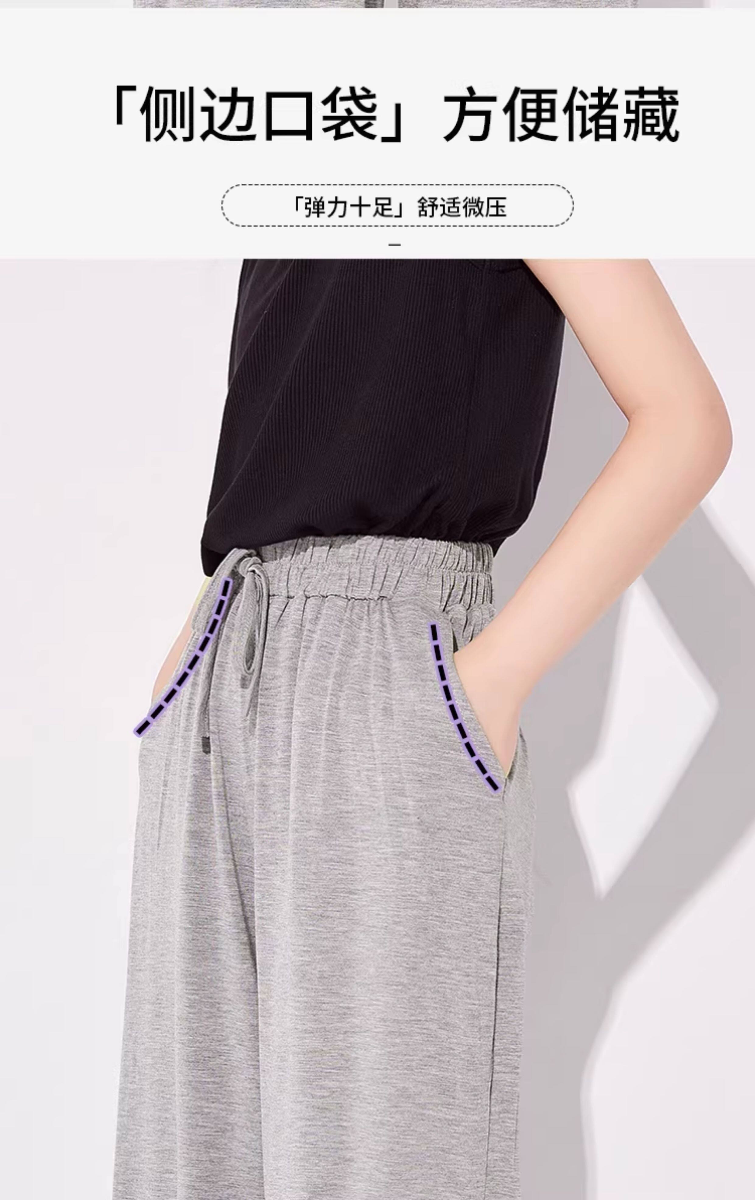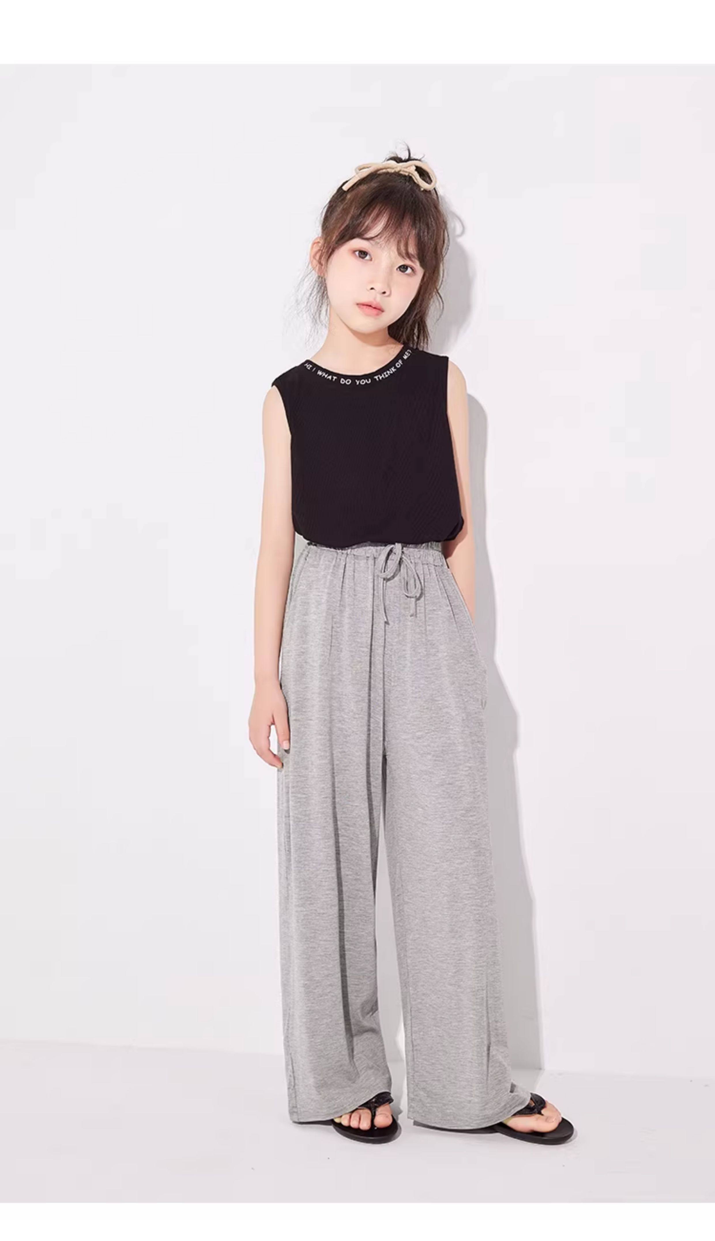 女童莫代爾濶腿褲夏季2026新款兒童冰絲褲子春秋薄款大童休閒褲灰
