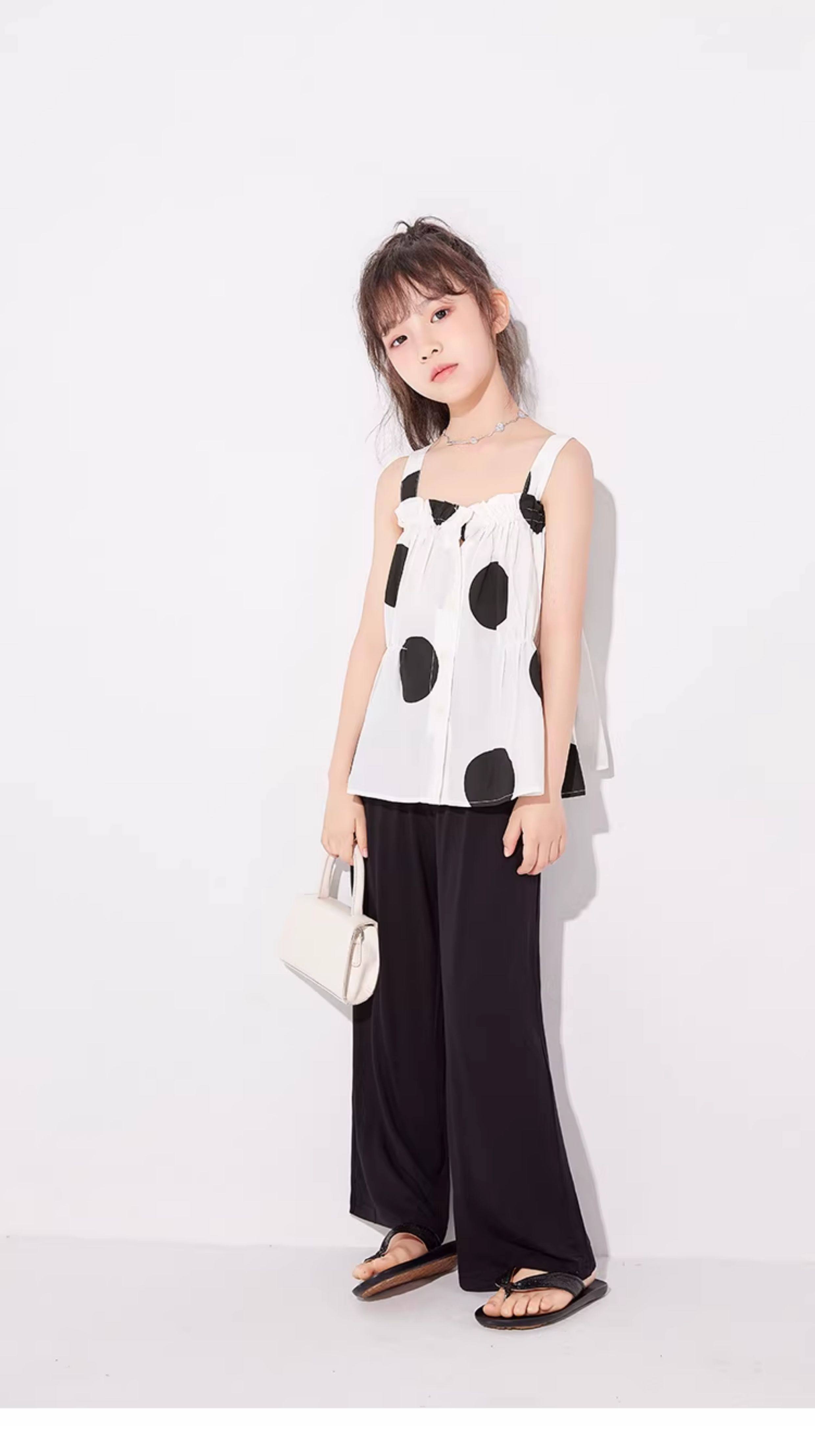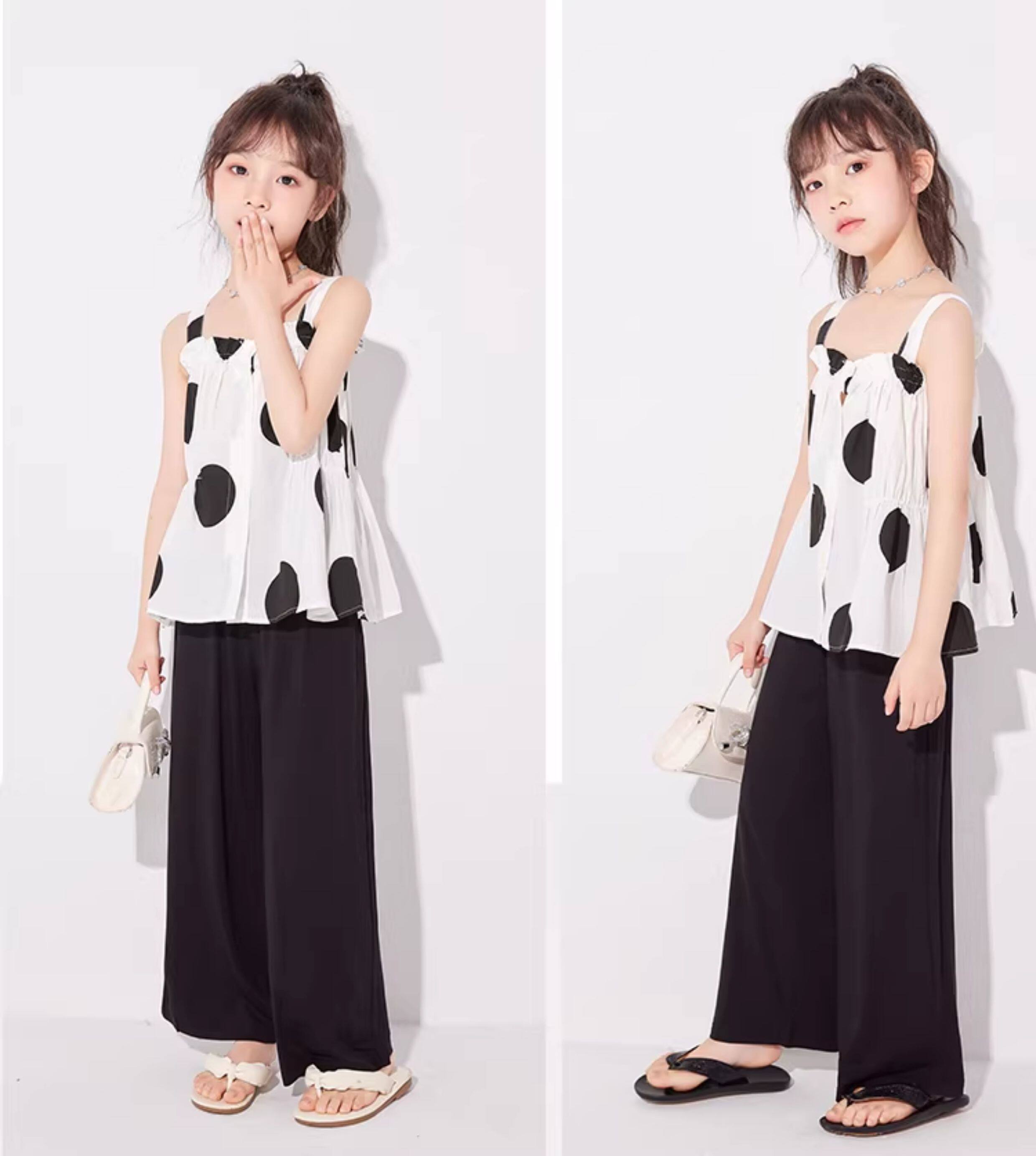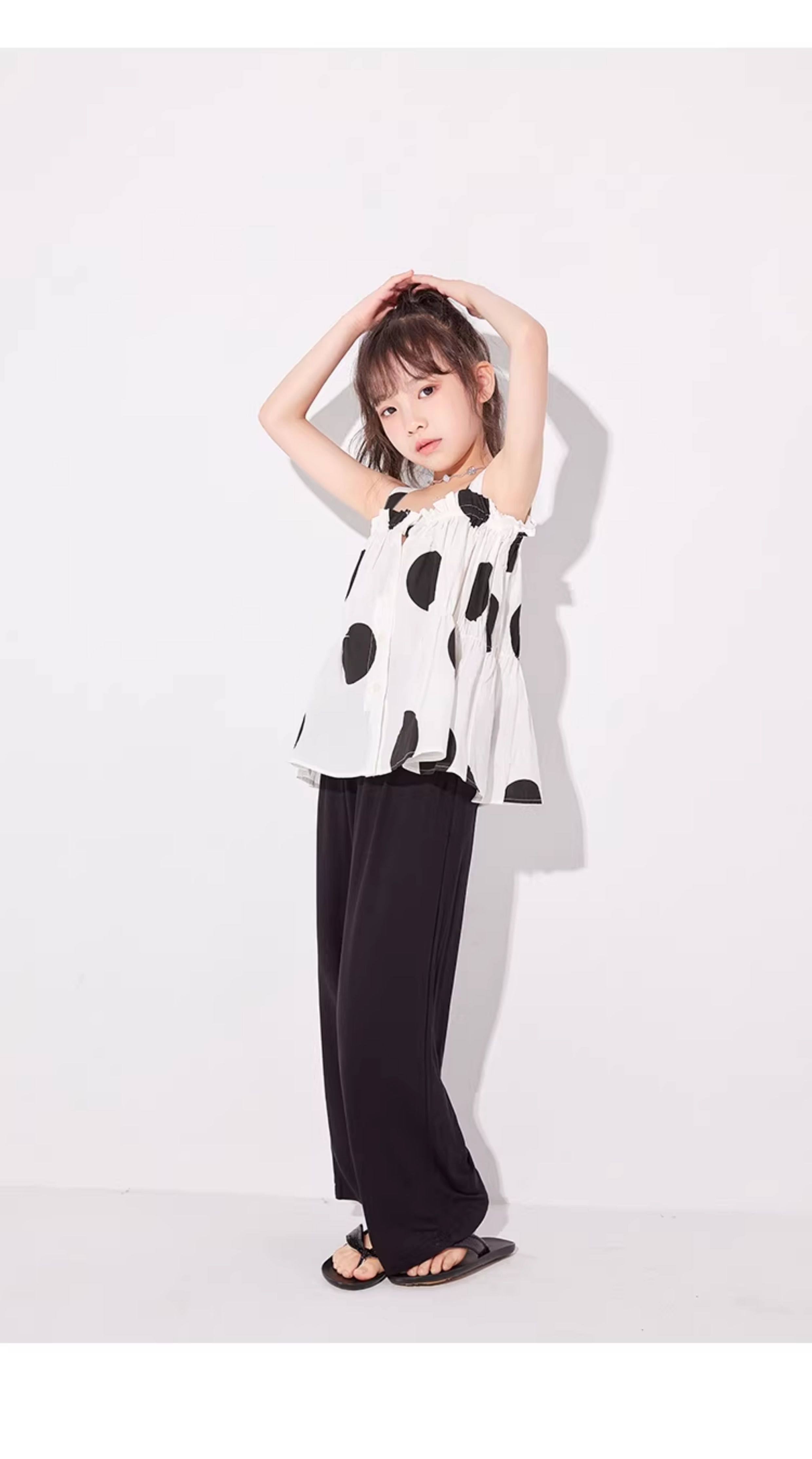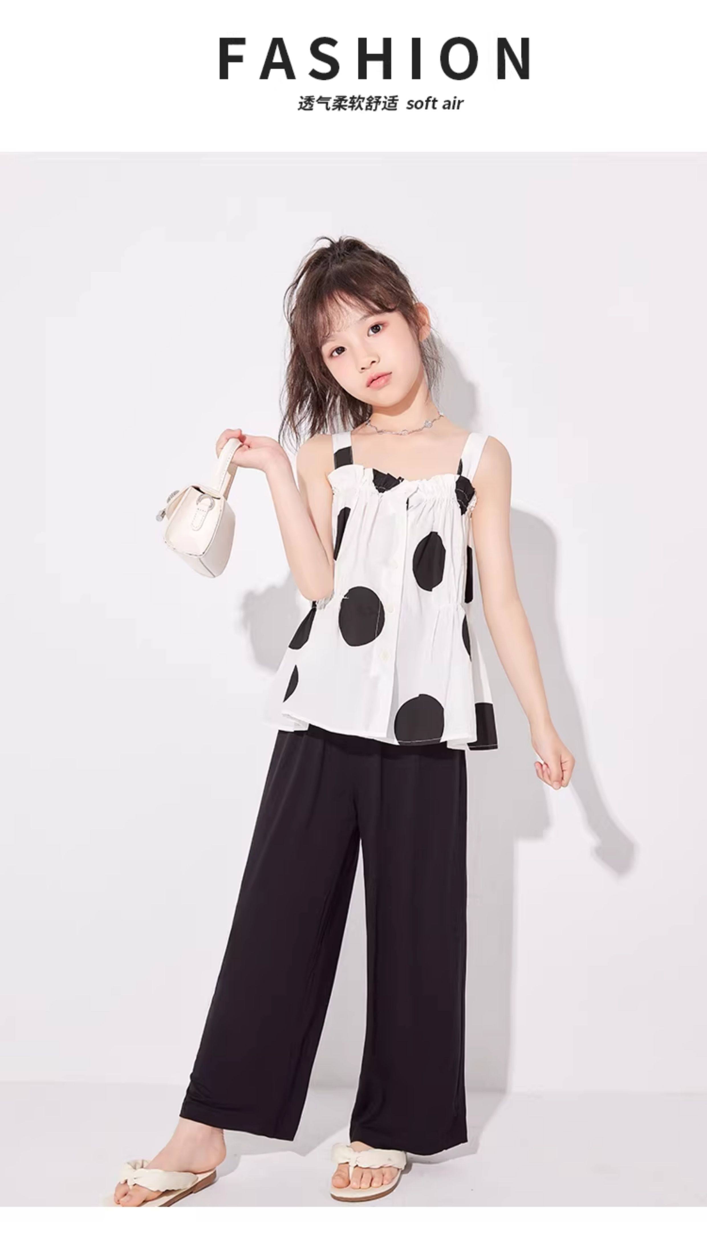 女童莫代爾濶腿褲夏季2026新款兒童冰絲褲子春秋薄款大童休閒褲灰